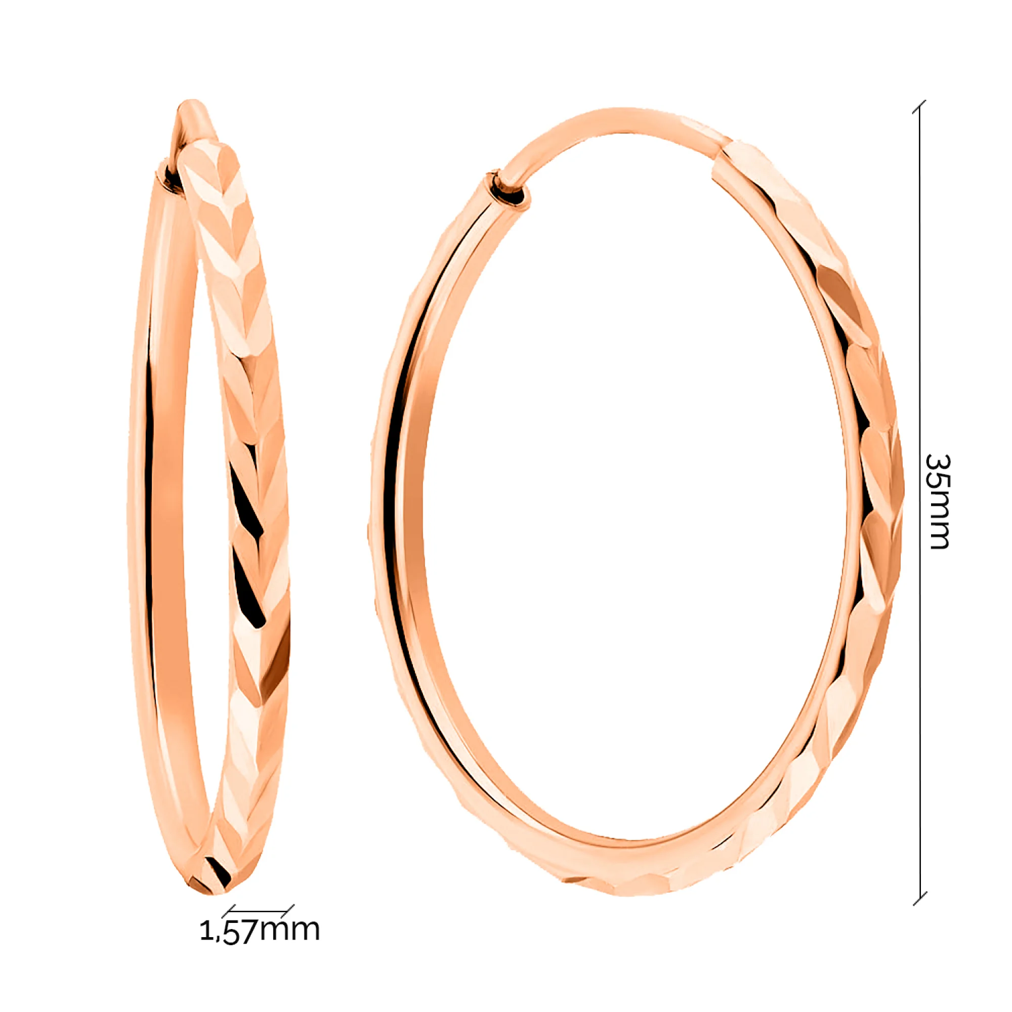 Сережки-кільця з червоного золота з алмазною гранню - 1272064