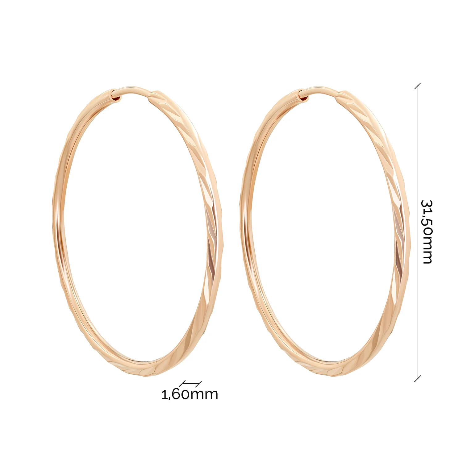 Сережки-кільця з червоного золота з алмазною гранню - 893246