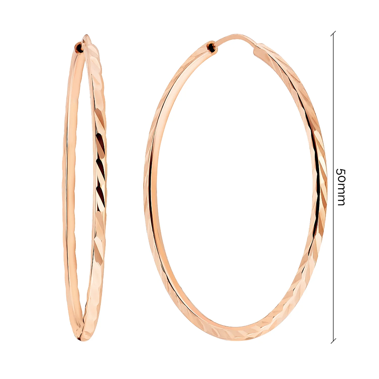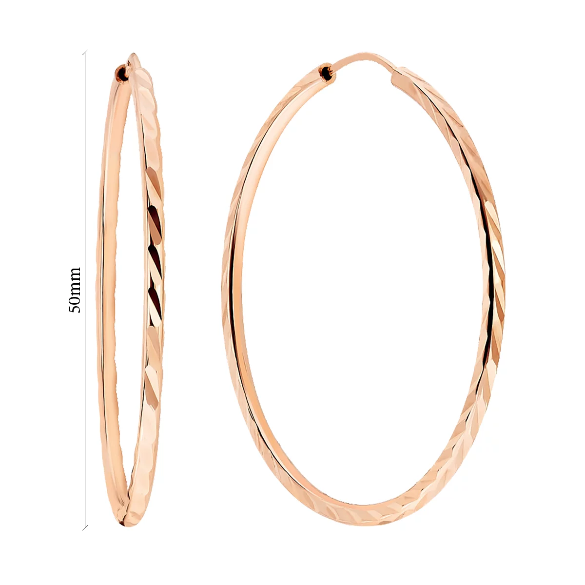 Сережки-кільця з червоного золота з алмазною гранню - 961454