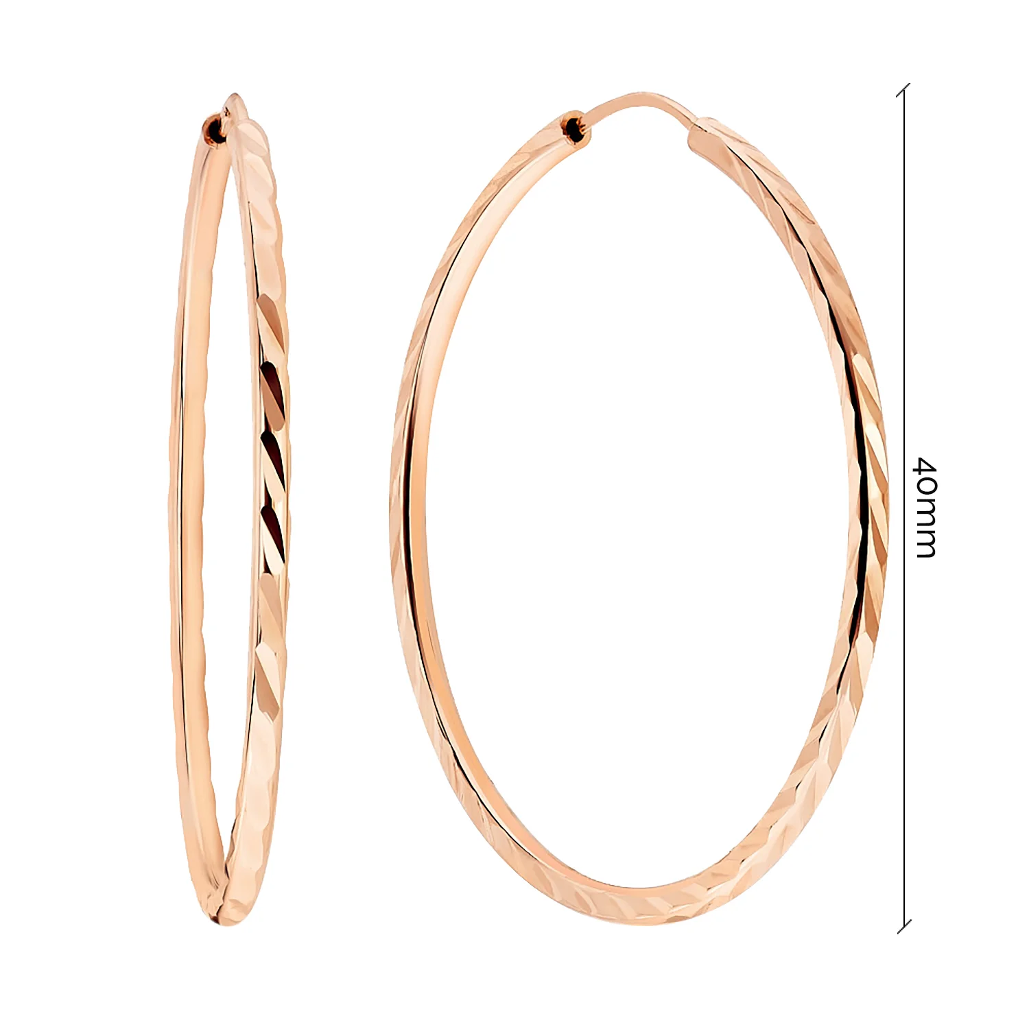 Сережки-кільця з червоного золота з алмазною гранню - 964470