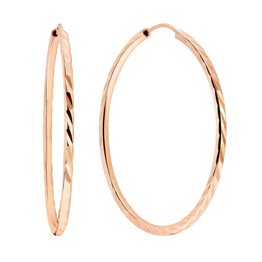 Сережки-кільця з червоного золота з алмазною гранню - 969428