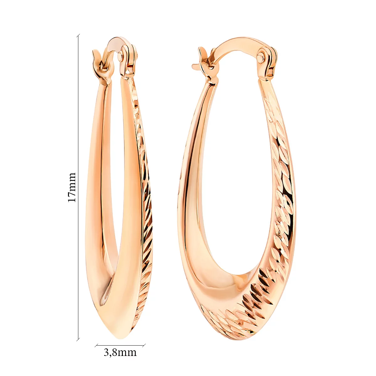 Сережки-кільця з підвісом із червоного золота з рельєфною текстурою - 1856422