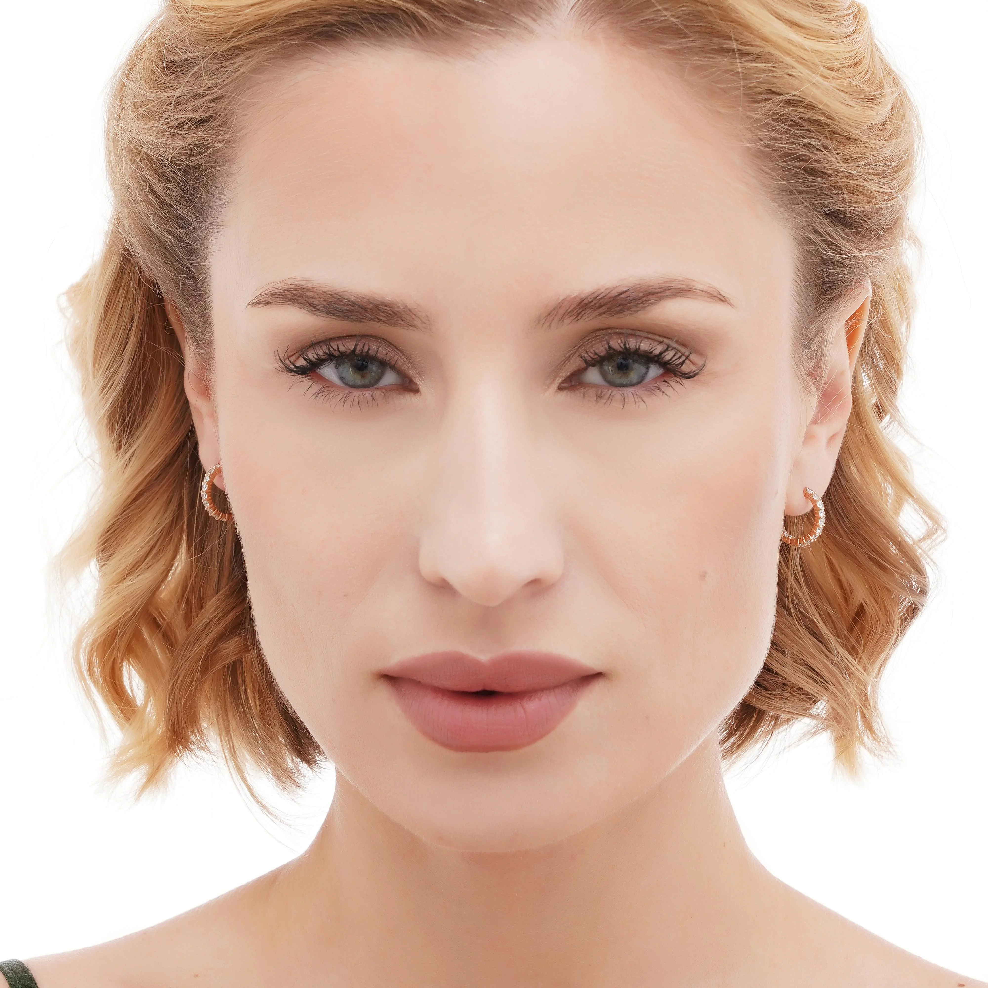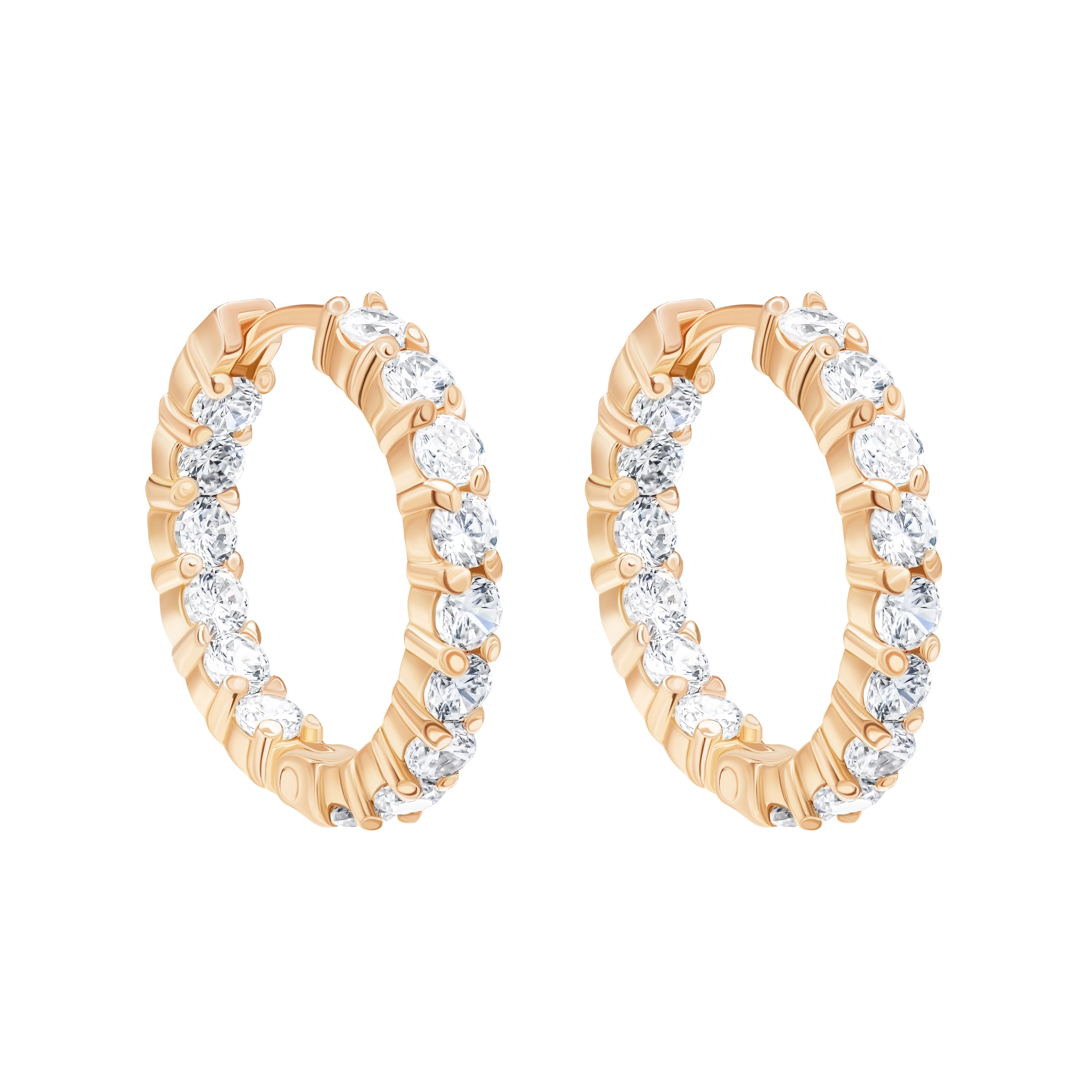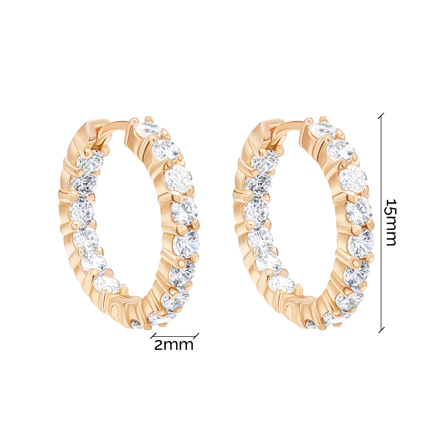 Сережки-кільця з червоного золота з доріжкою фіанітів - 1805078