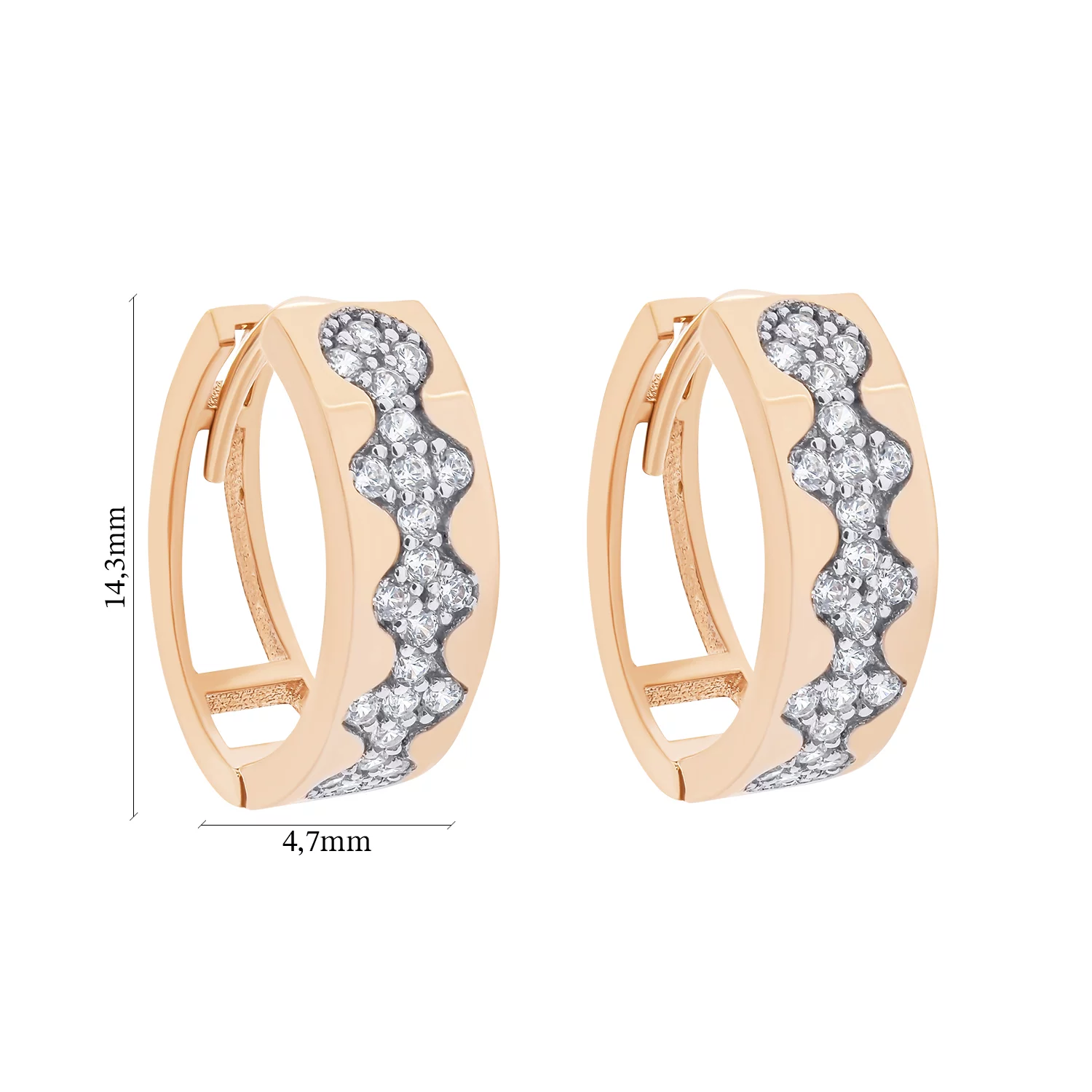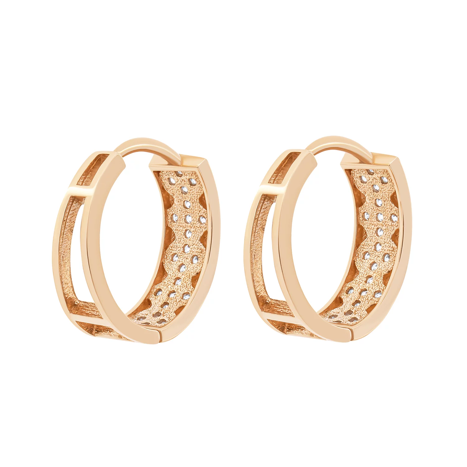 Сережки-кільця з червоного золота з фіанітами - 1500550