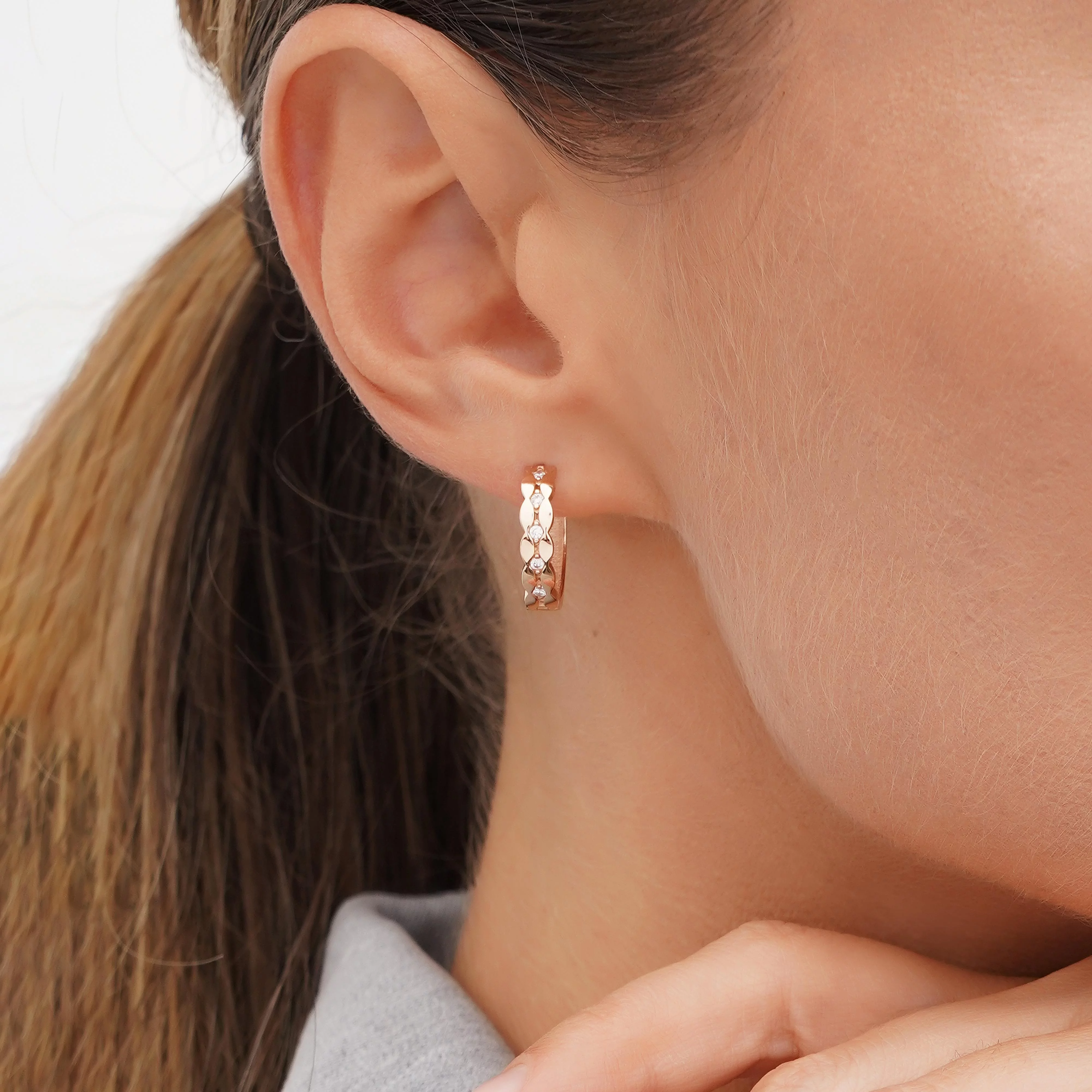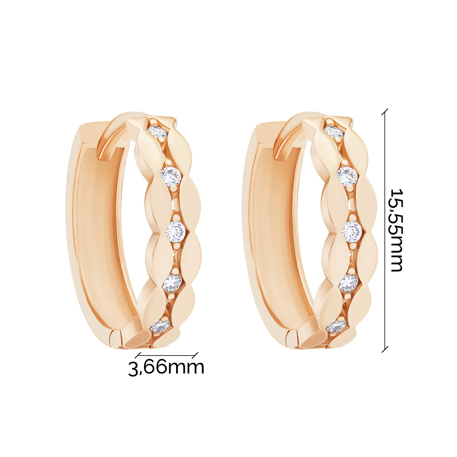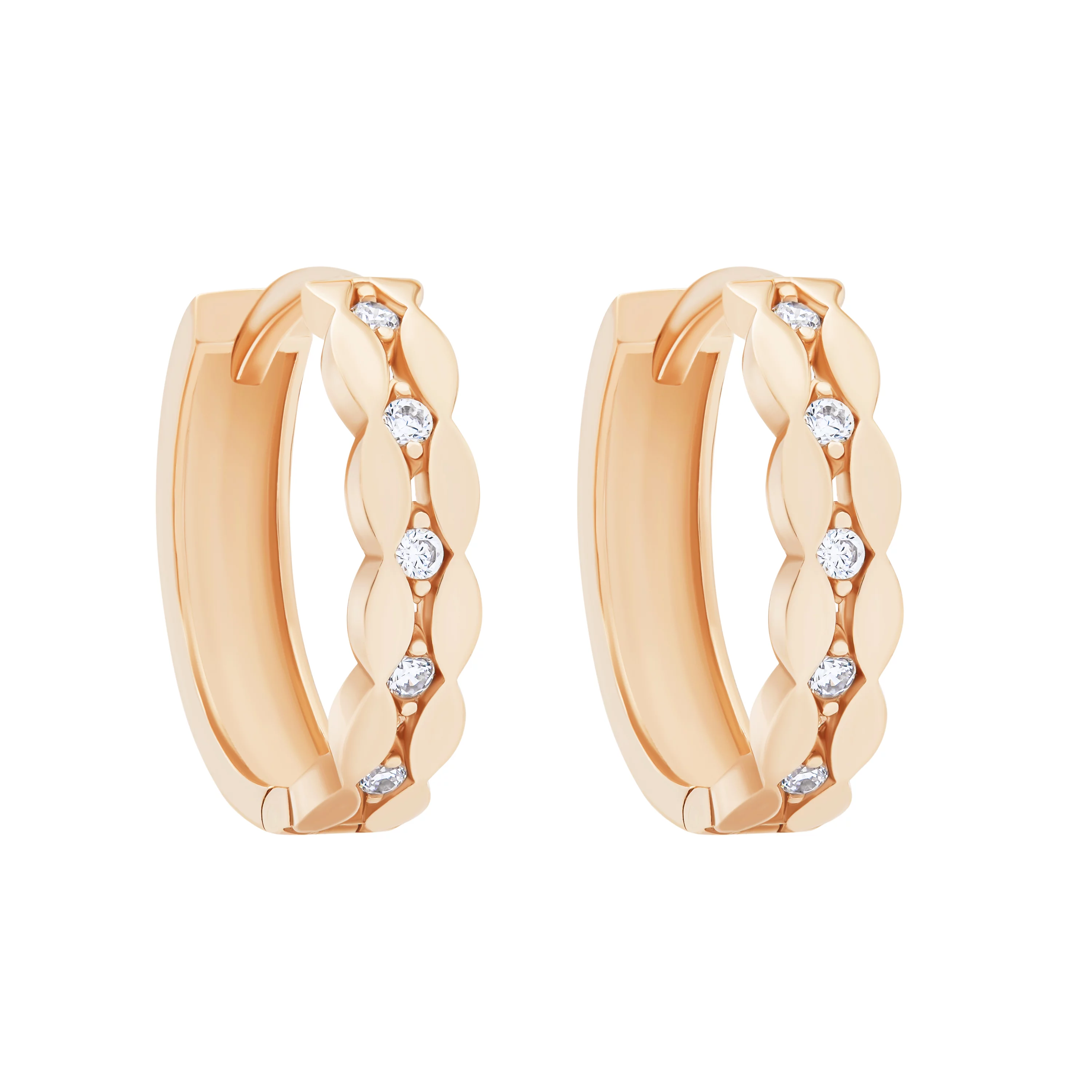 Сережки-кільця з підвісами з червоного золота з фіанітами і емаллю - 1748485