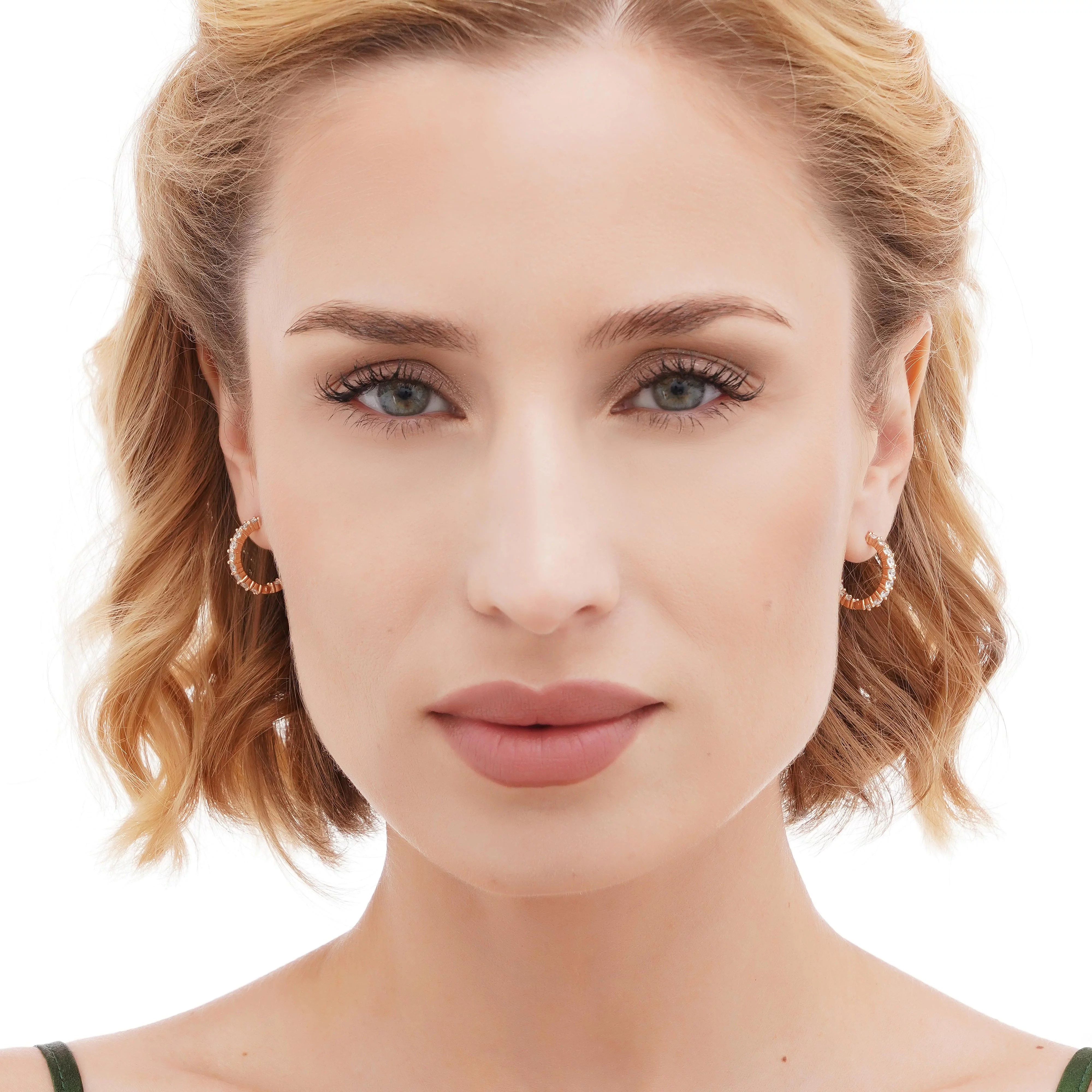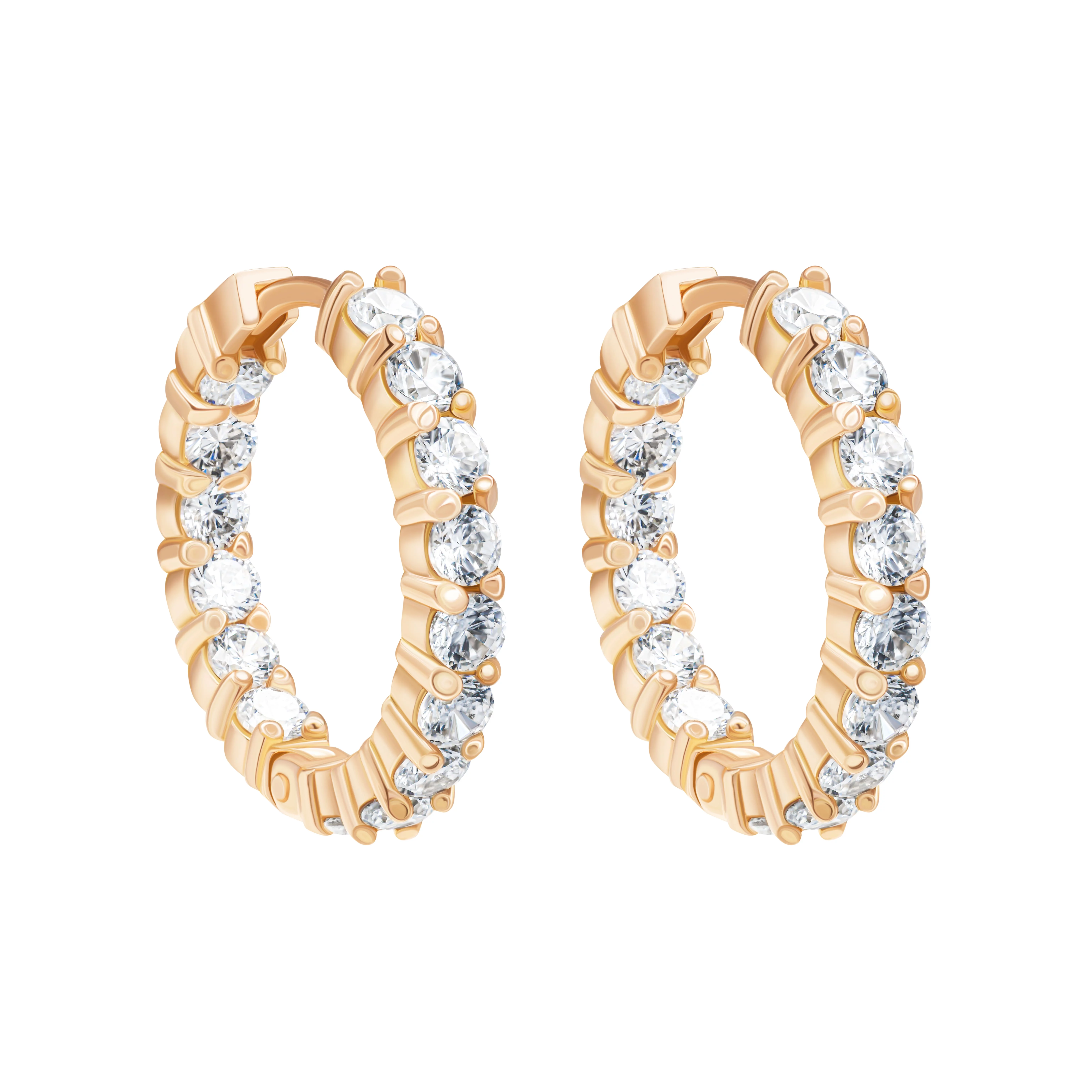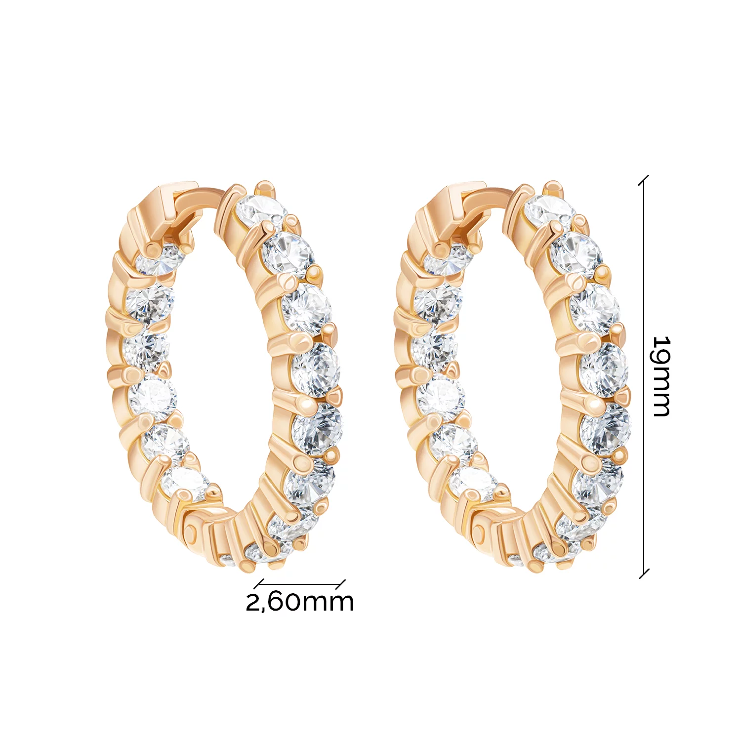 Сережки-кільця з червоного золота з фіанітами - 1805888