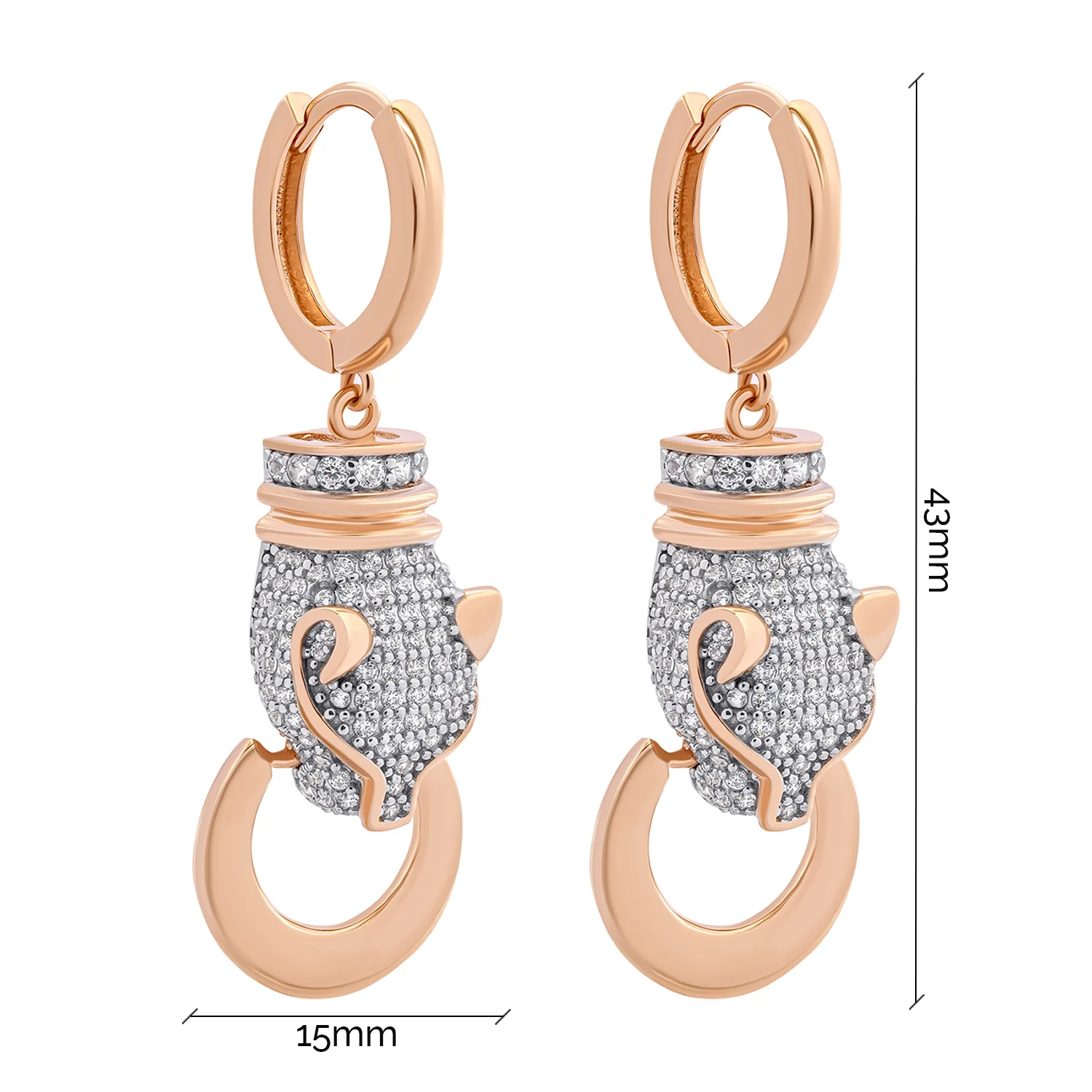 Сережки-кільця з червоного золота з підвісами "Пантера" з фіанітом - 1476753