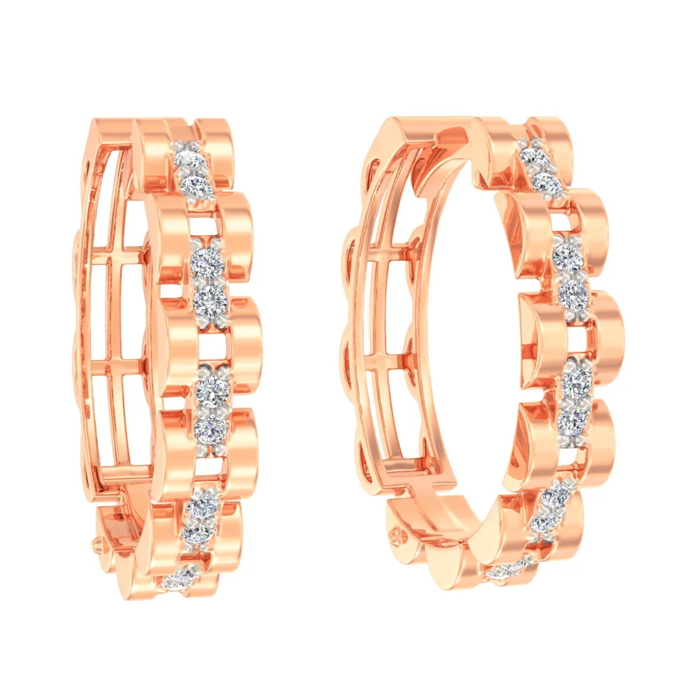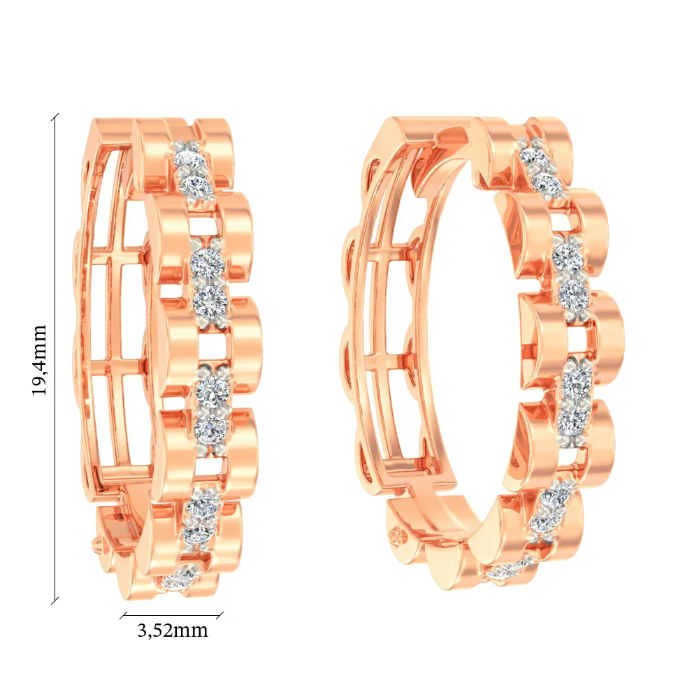 Сережки-кільця з фіанітами і підвісним серцем з червоного золота - 1562140
