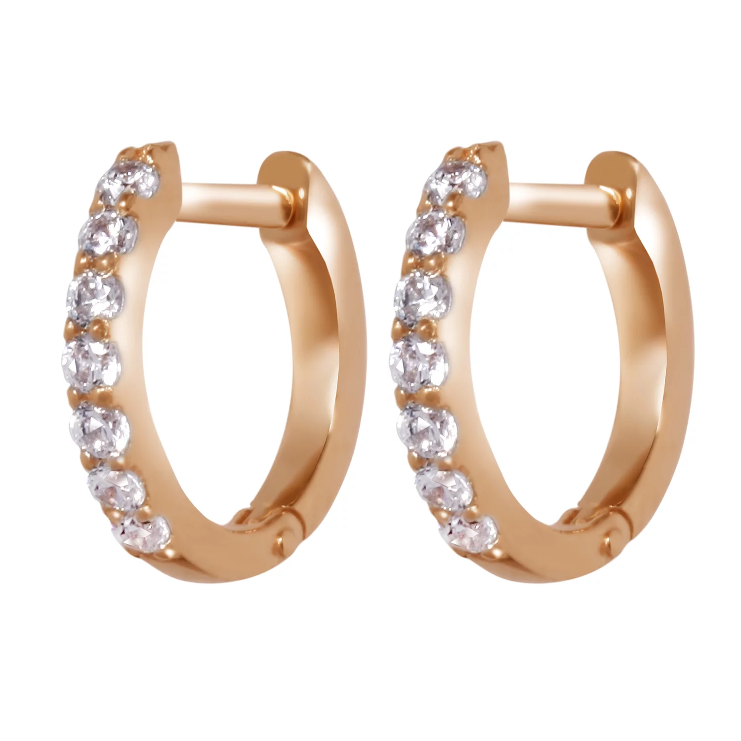Класичні сережки-кільця з червоного золота з алмазною гранню - 1918858
