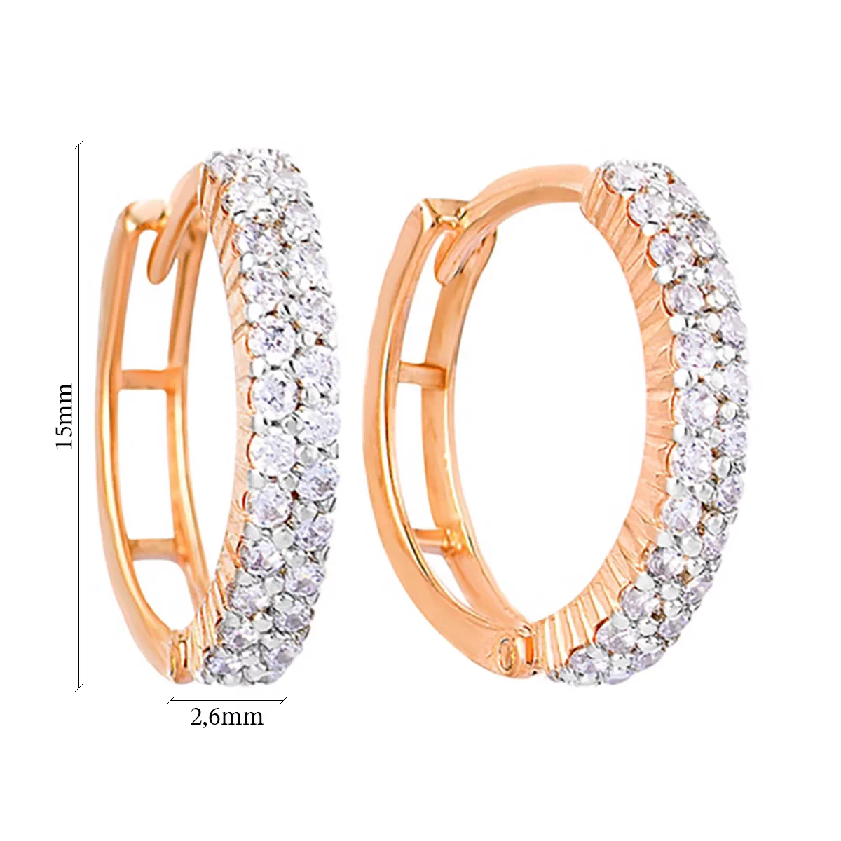 Сережки-кільця з червоного золота з підвісами з білими і зеленими фіанітами "Пантера" - 1485621