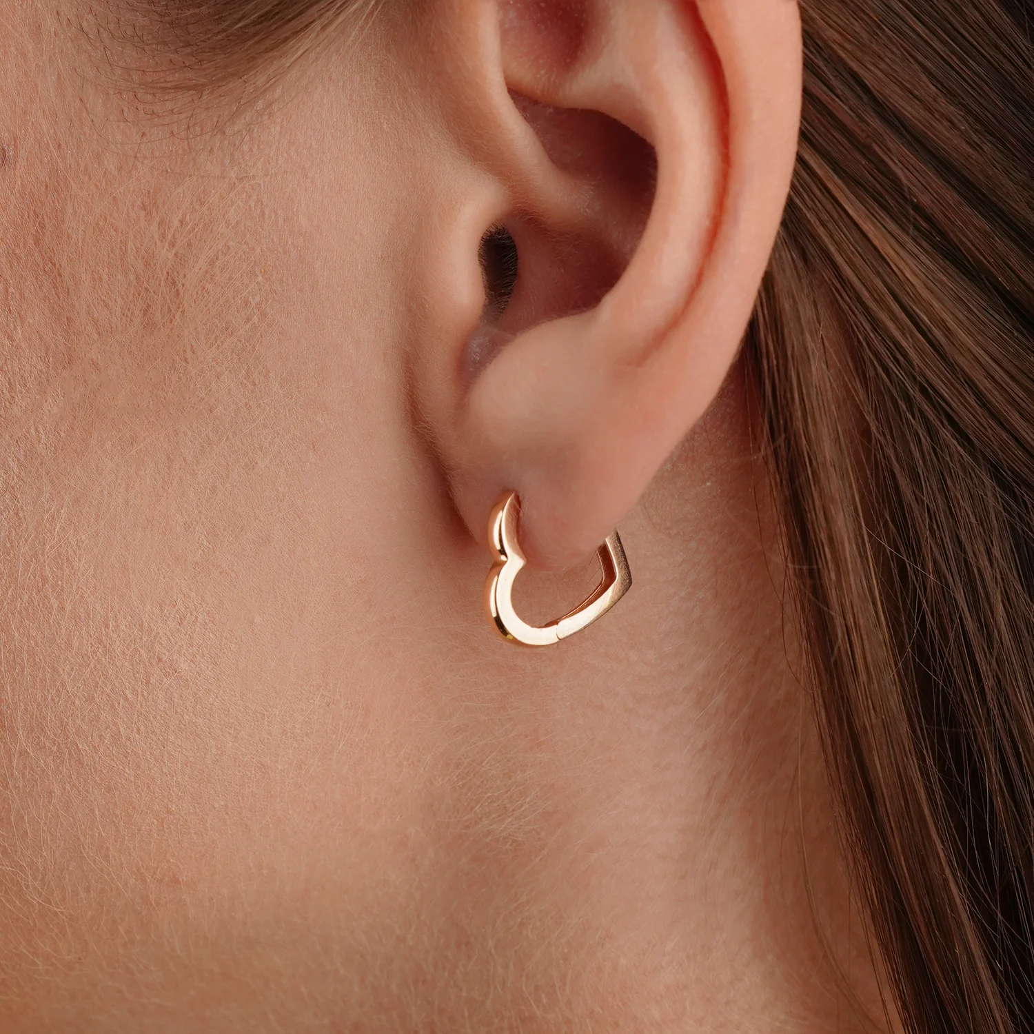 Сережки-кільця в жовтому та білому золоті з алмазною гранню у формі серця - 1563281