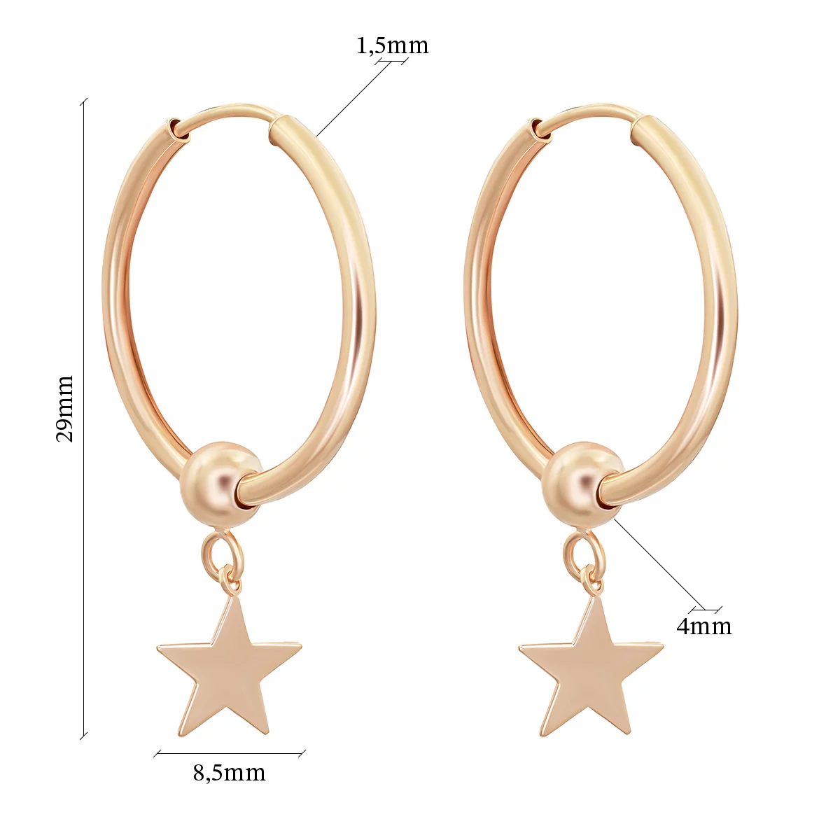 Сережки-кільця з підвісом із червоного золота з рельєфною текстурою - 1856422