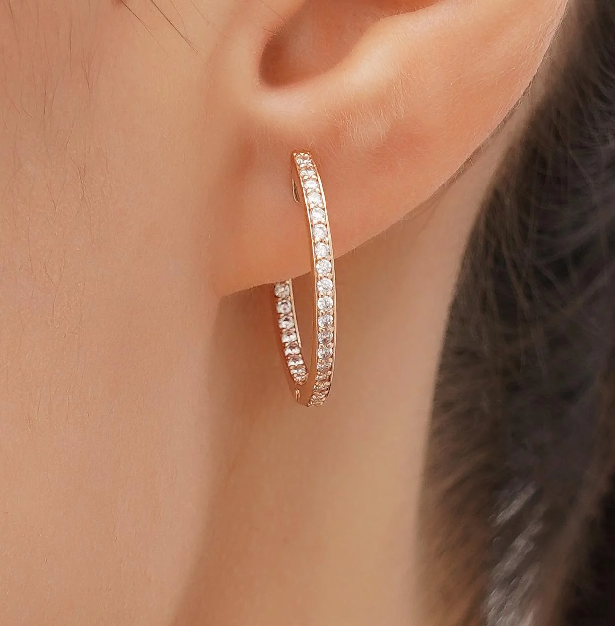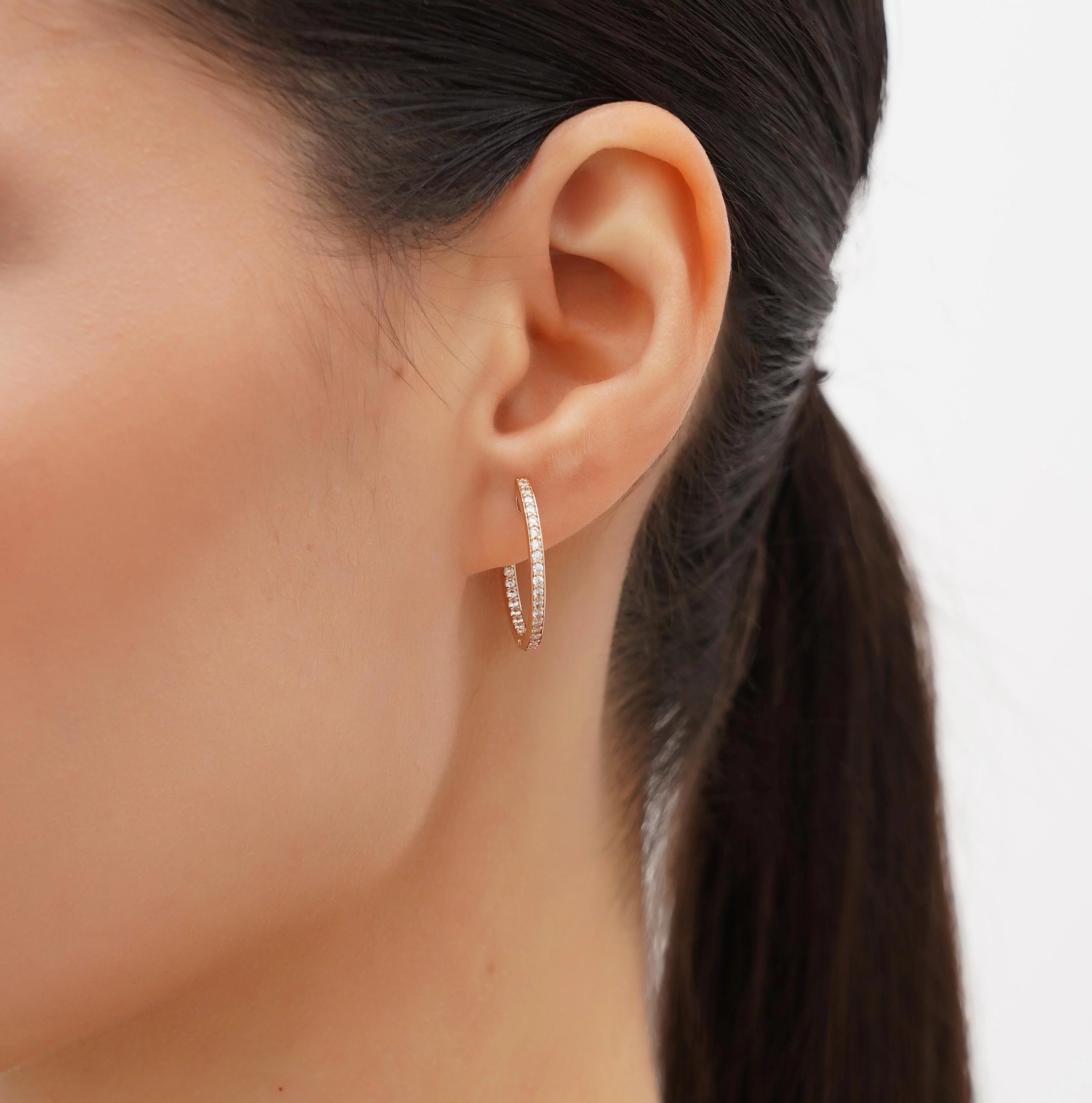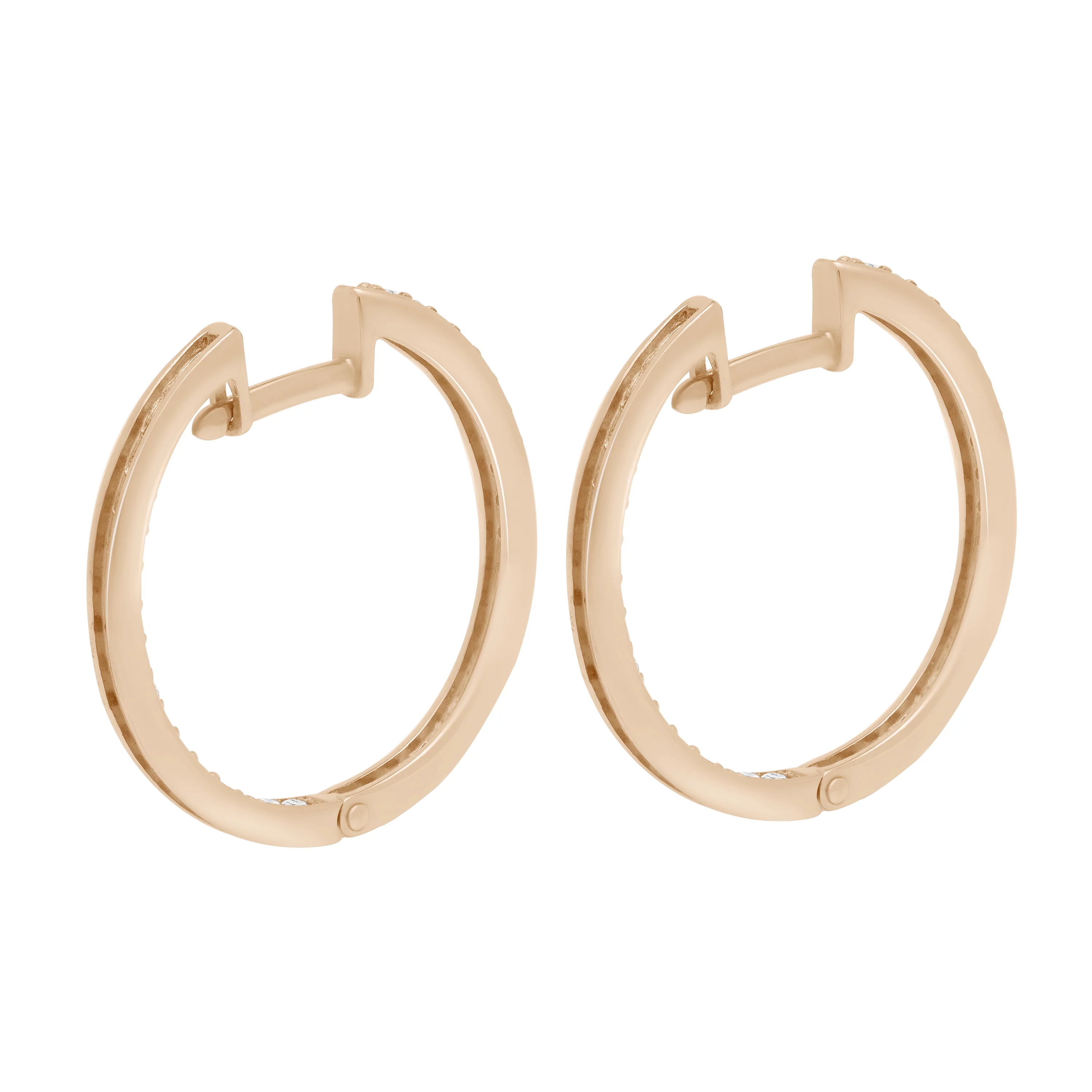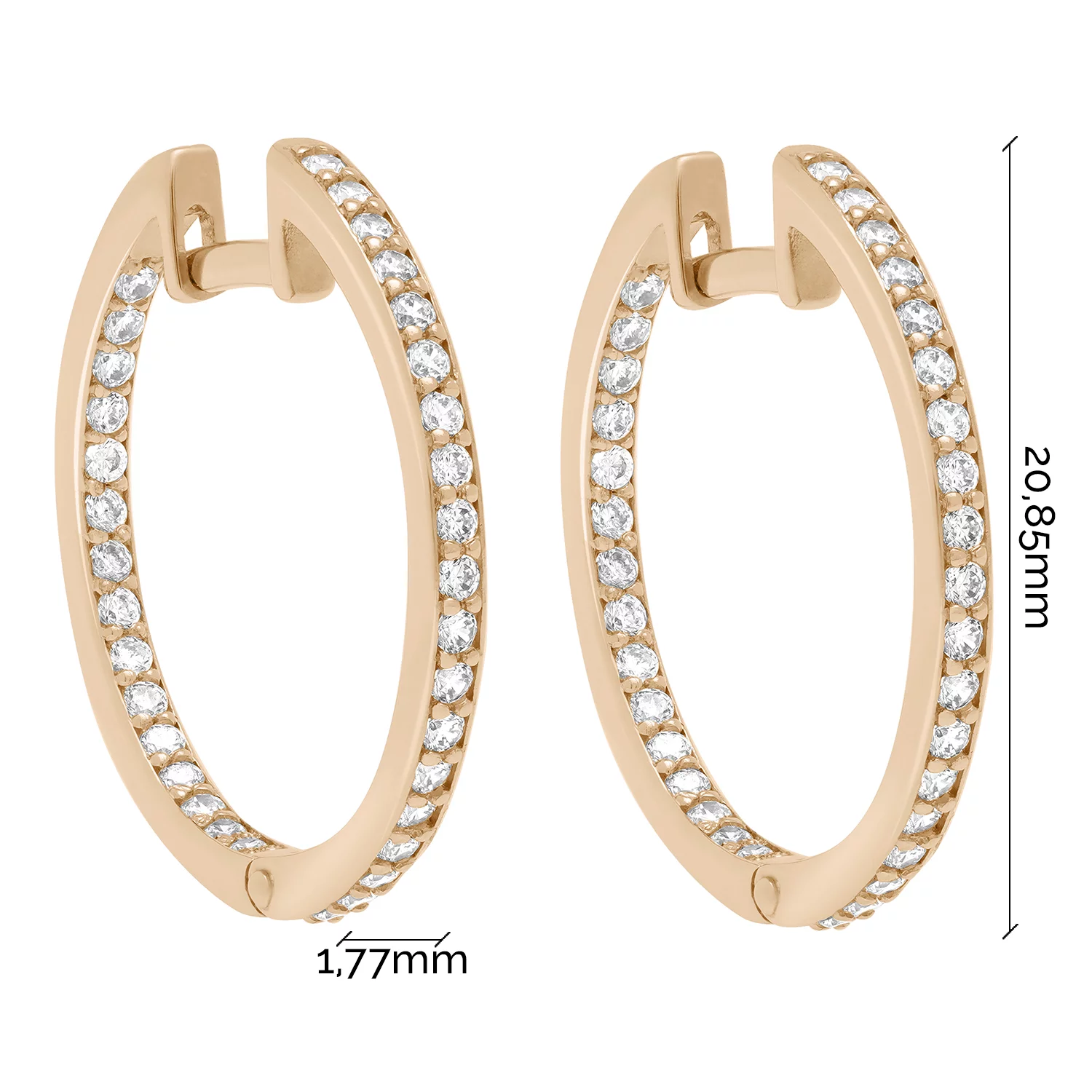 Сережки-кільця з доріжкою фіанітів з червоного золота - 1661515
