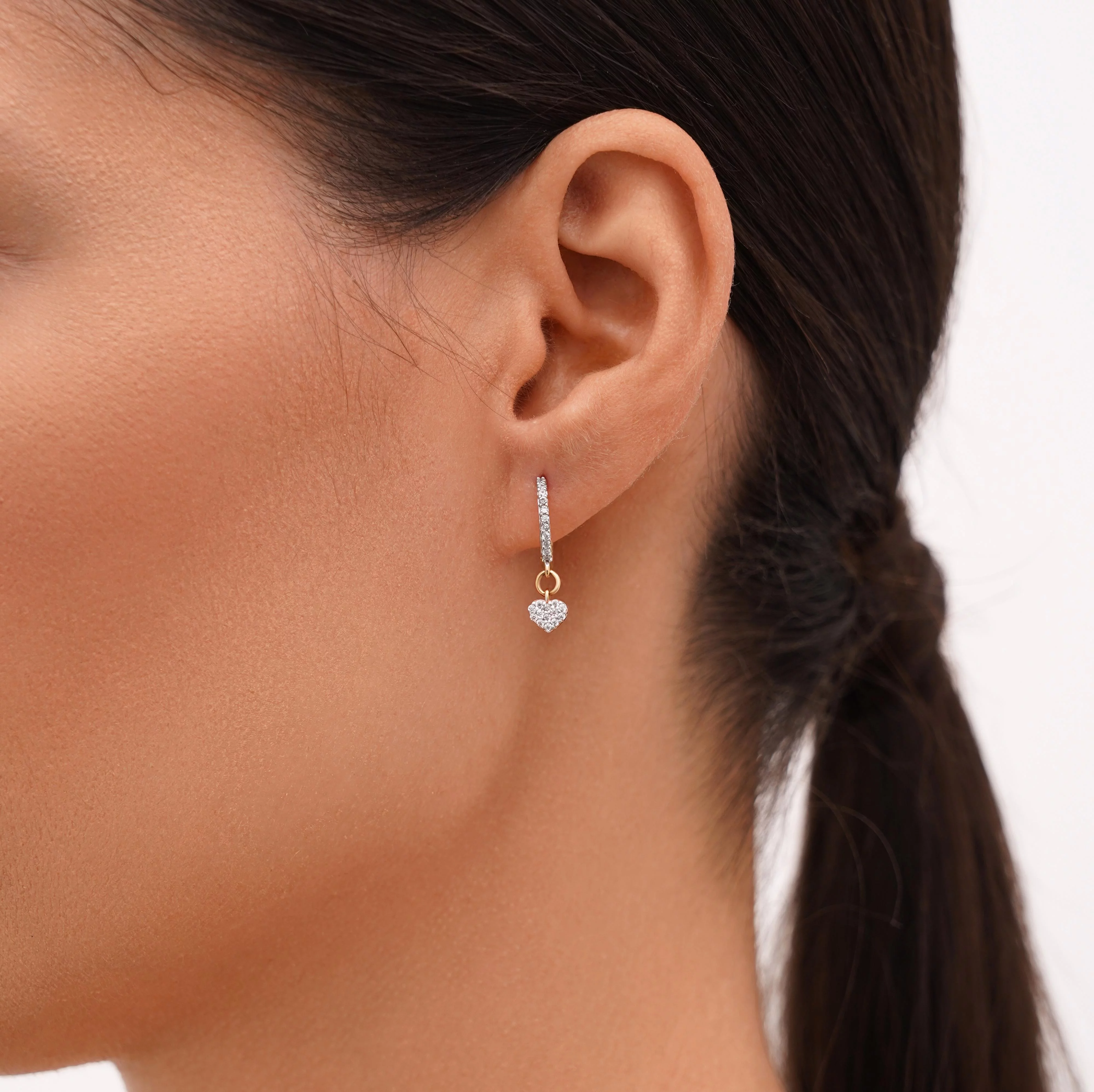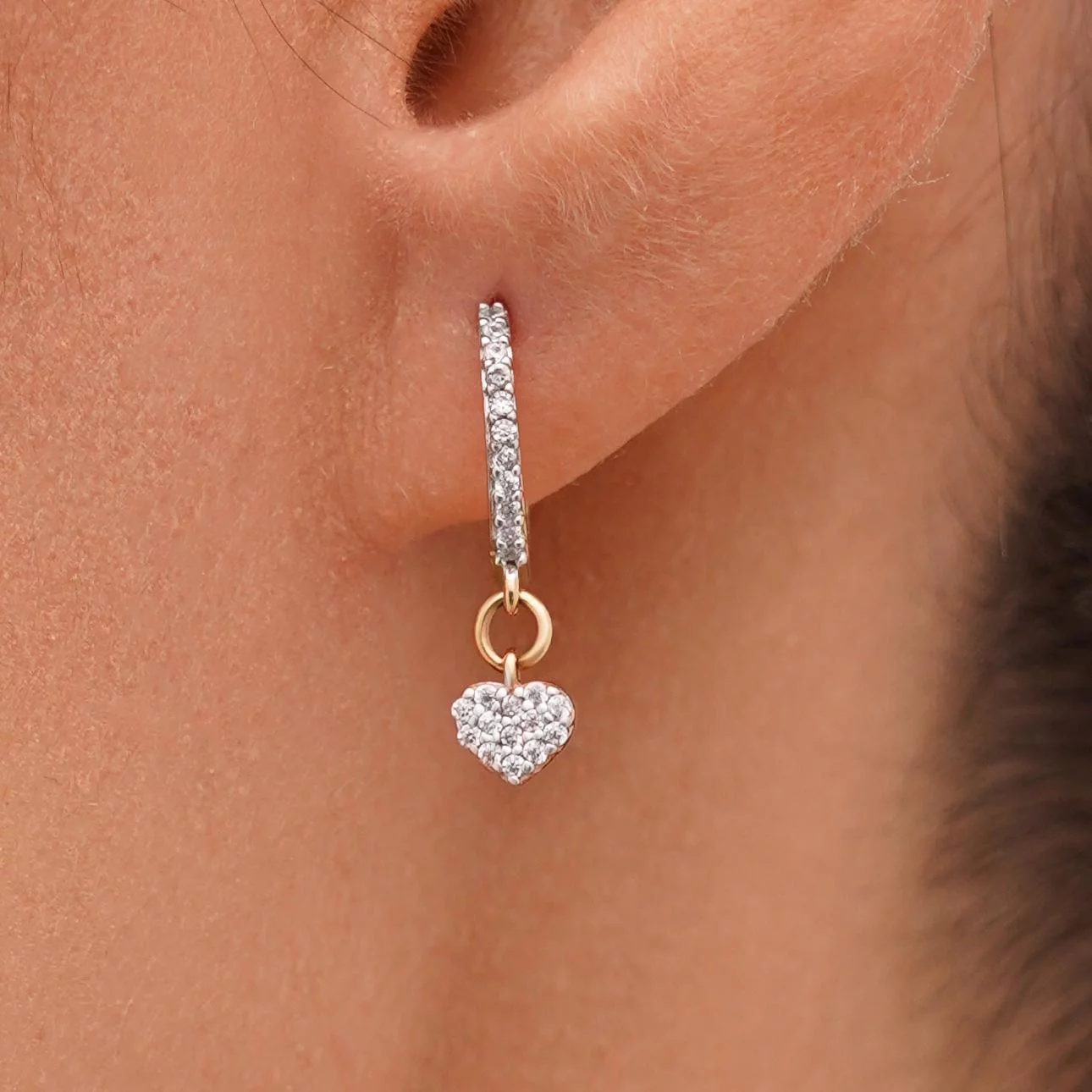 Сережки-кільця з підвіскою "Серце" з білого золота з фіанітами - 1584827