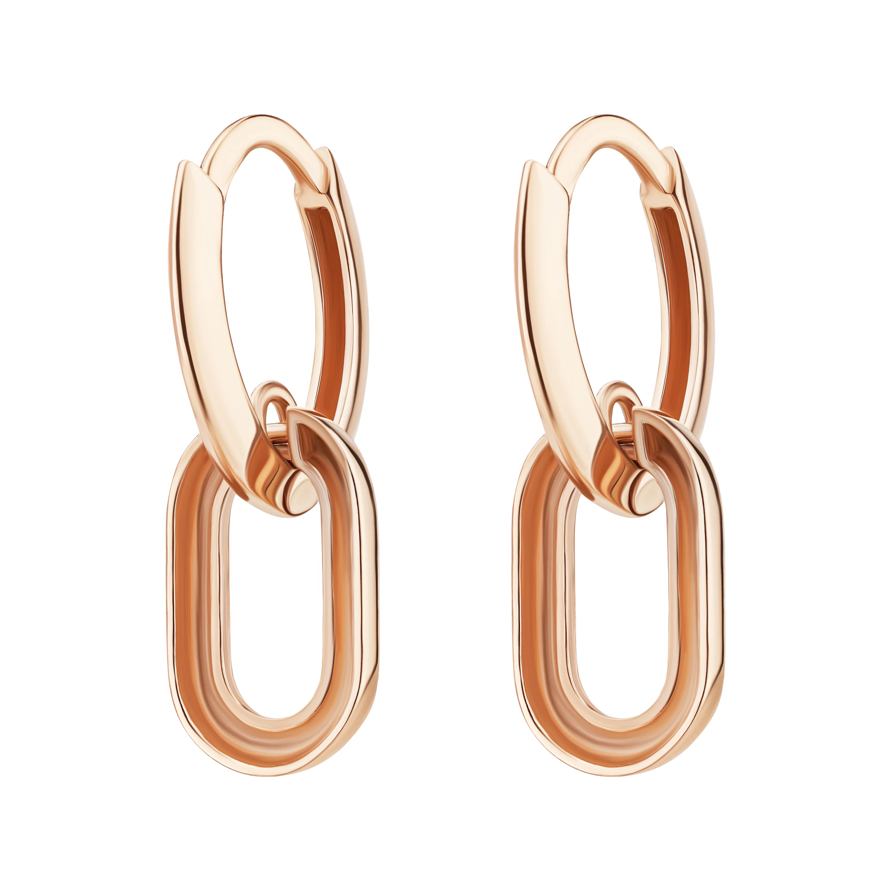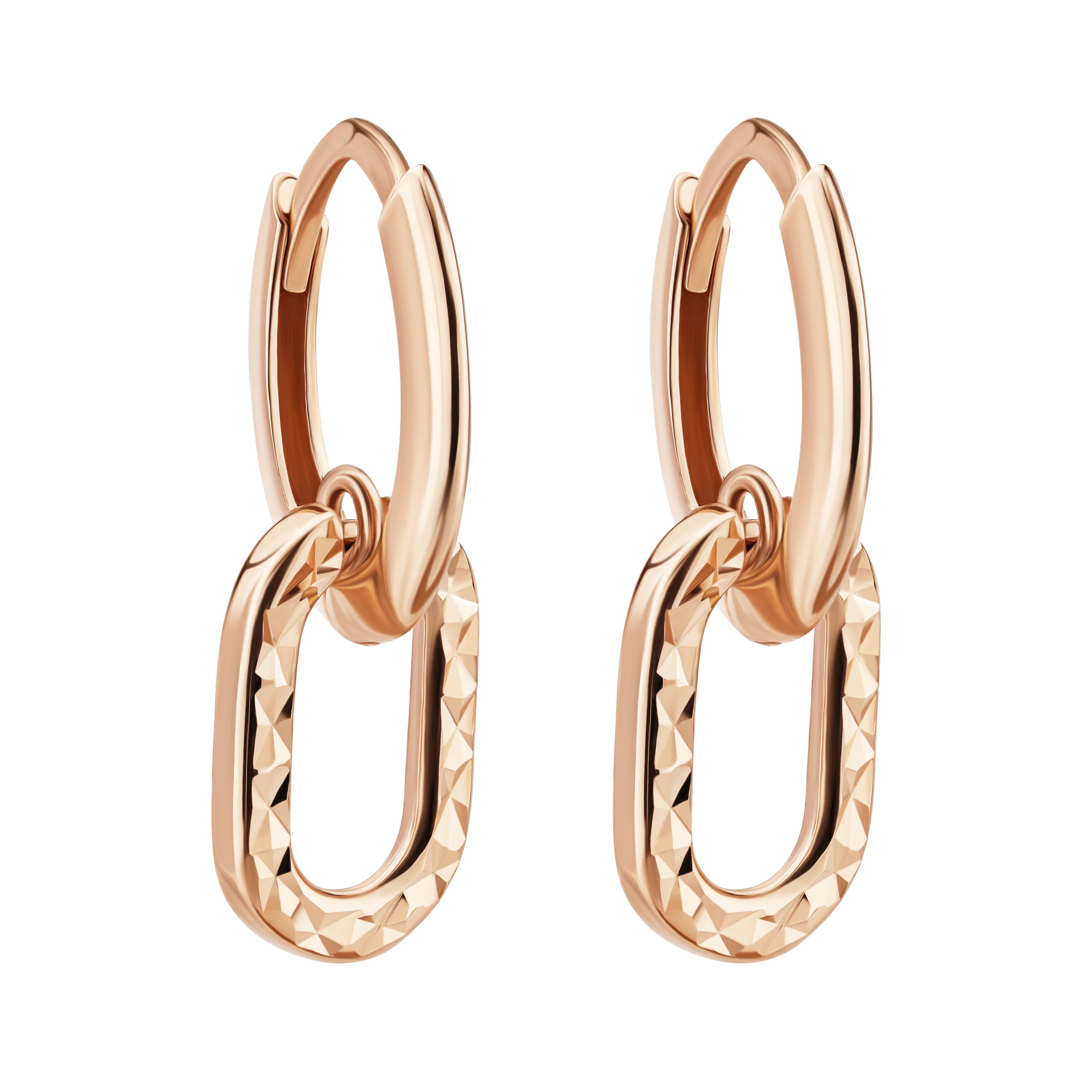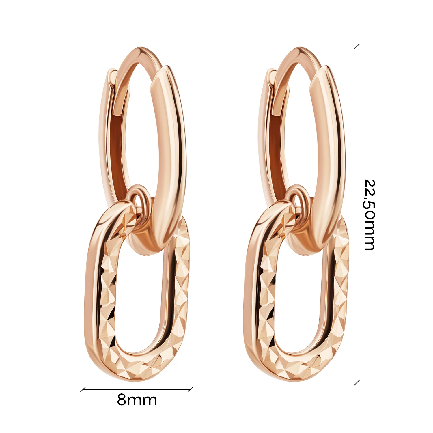 Сережки-гвоздики з підвісом із комбінованого золота з алмазною гранню - 1870255