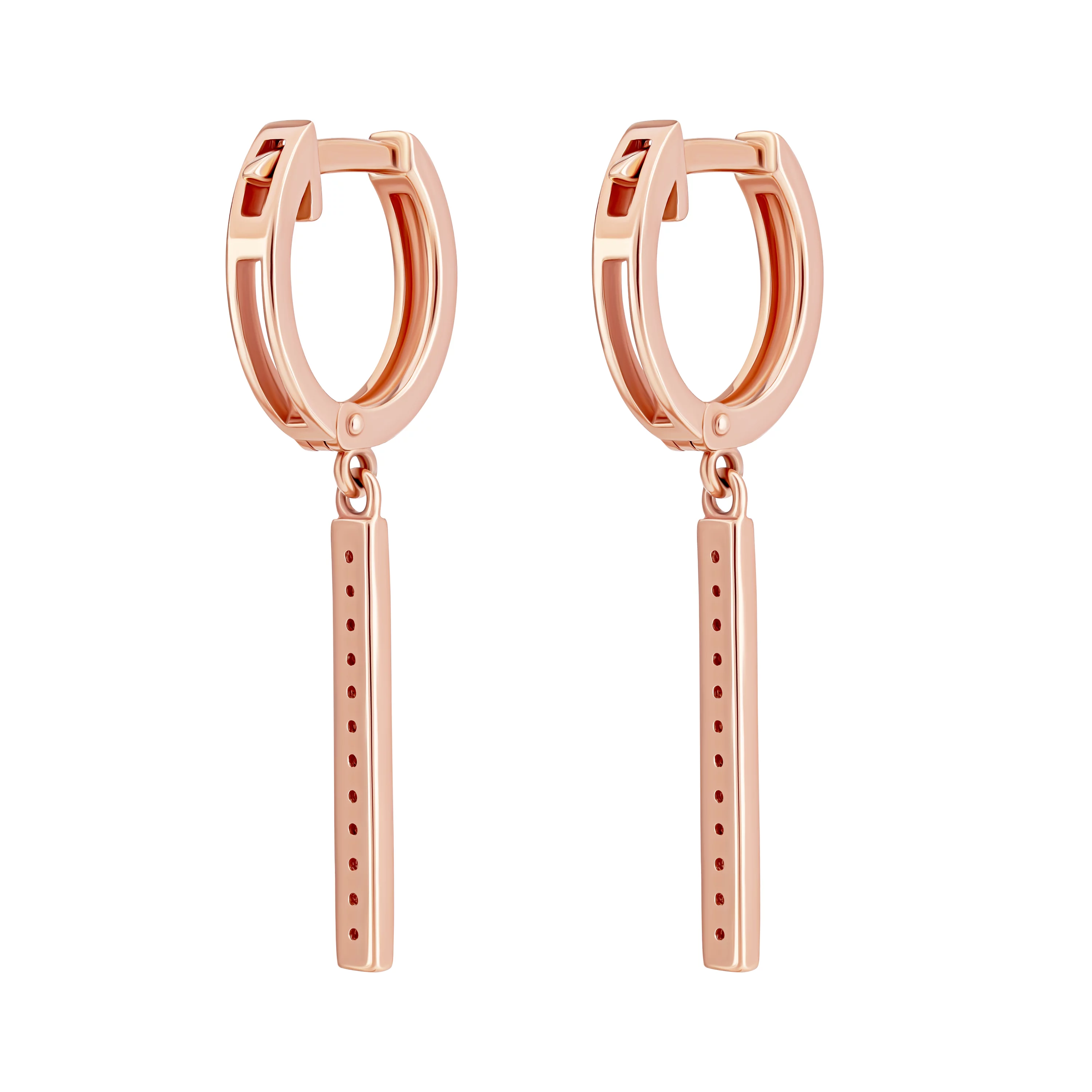 Сережки-кільця з підвісами з червоного золота з фіанітами і емаллю - 1748485