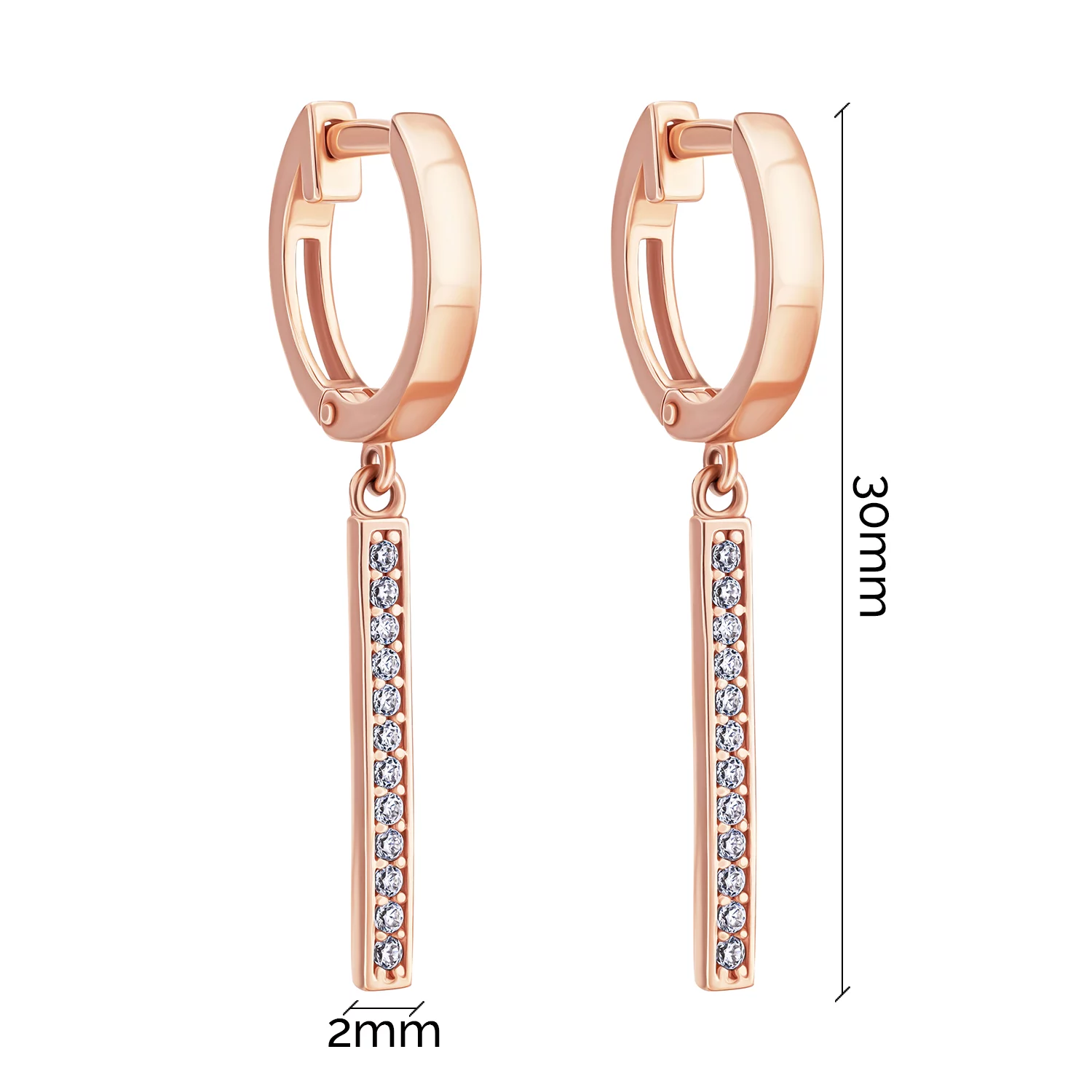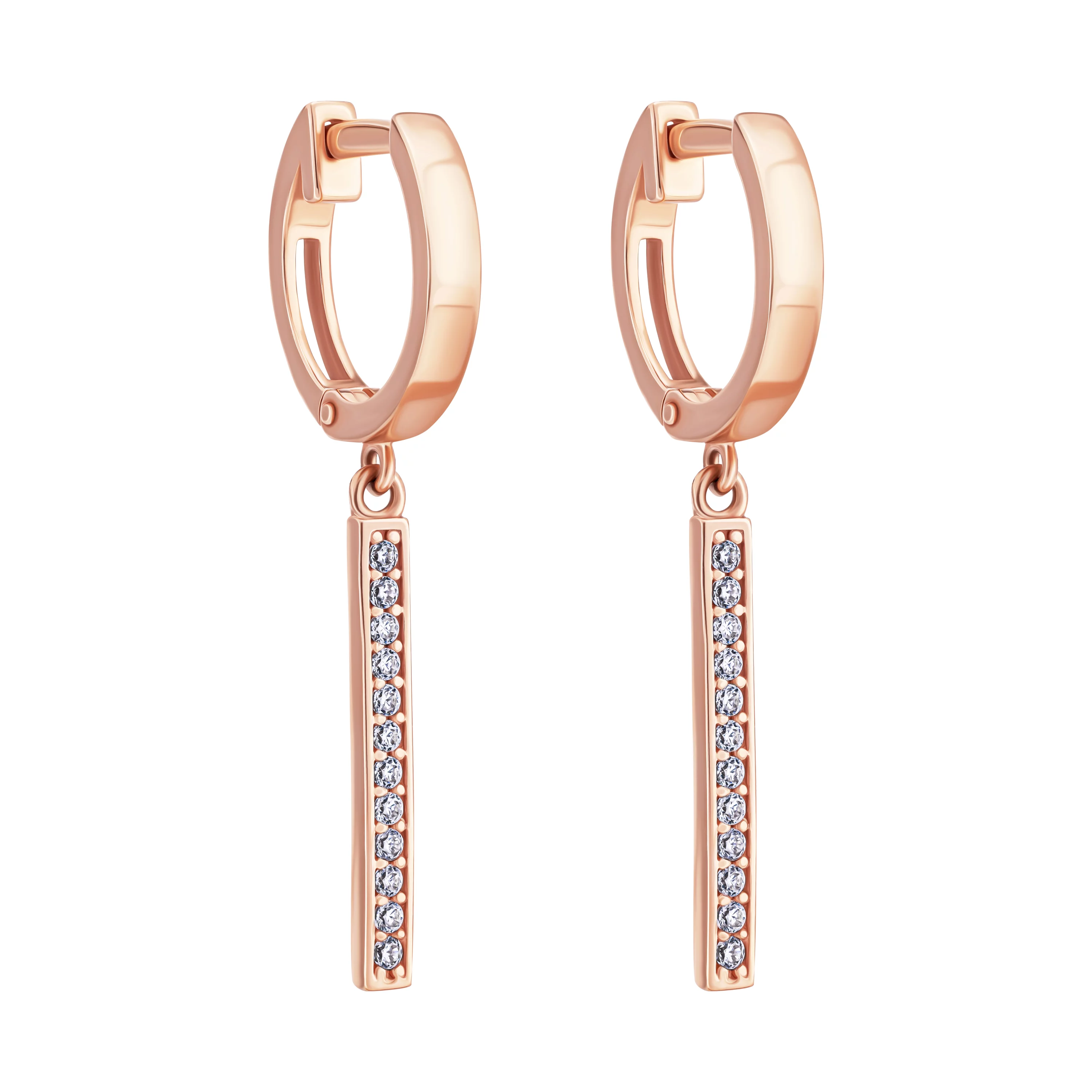 Сережки з підвісом "Конюшина" з червоного золота з фіанітами - 1851889