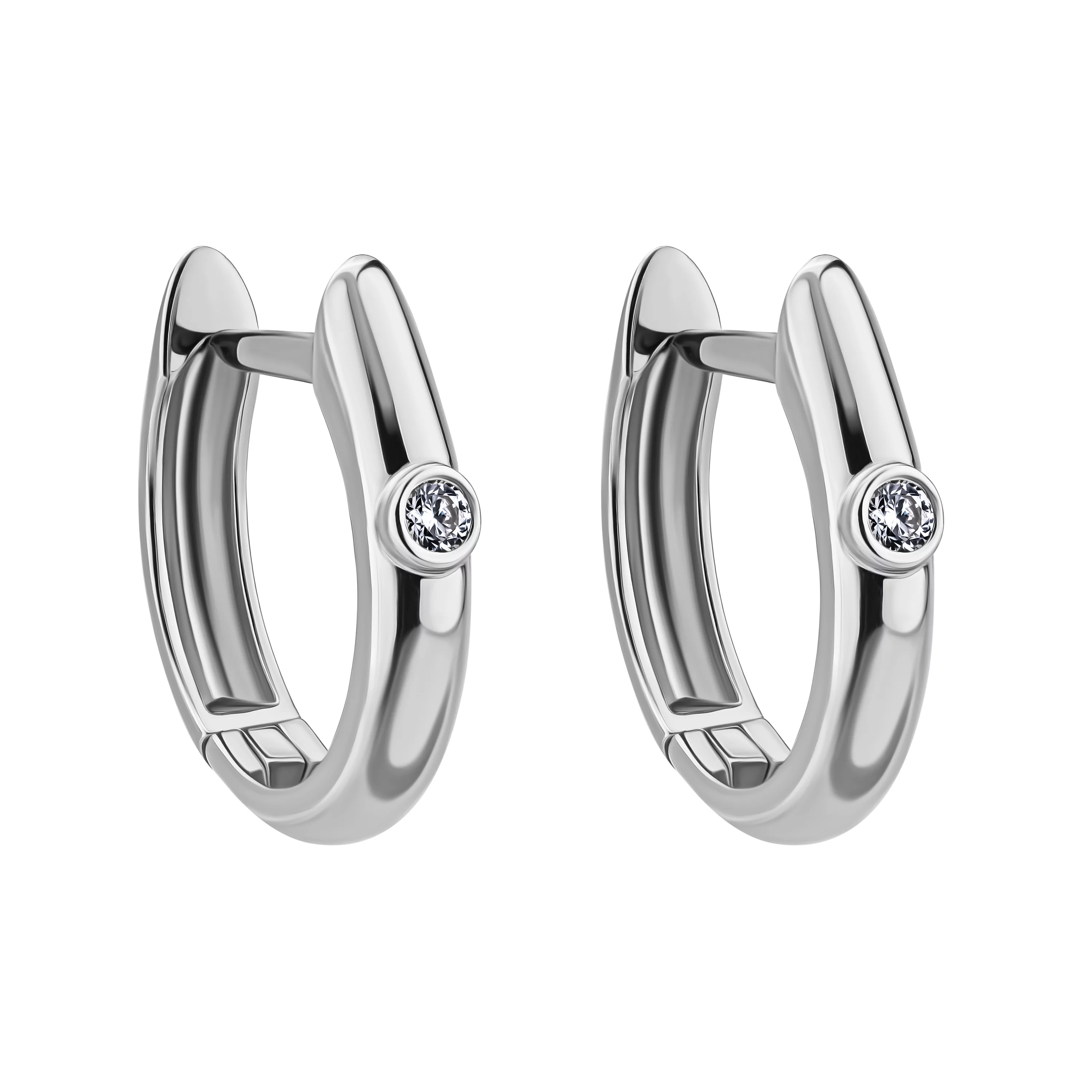 Сережки-гвоздики з білого золота з діамантом у мінімалістичному стилі - 1819023