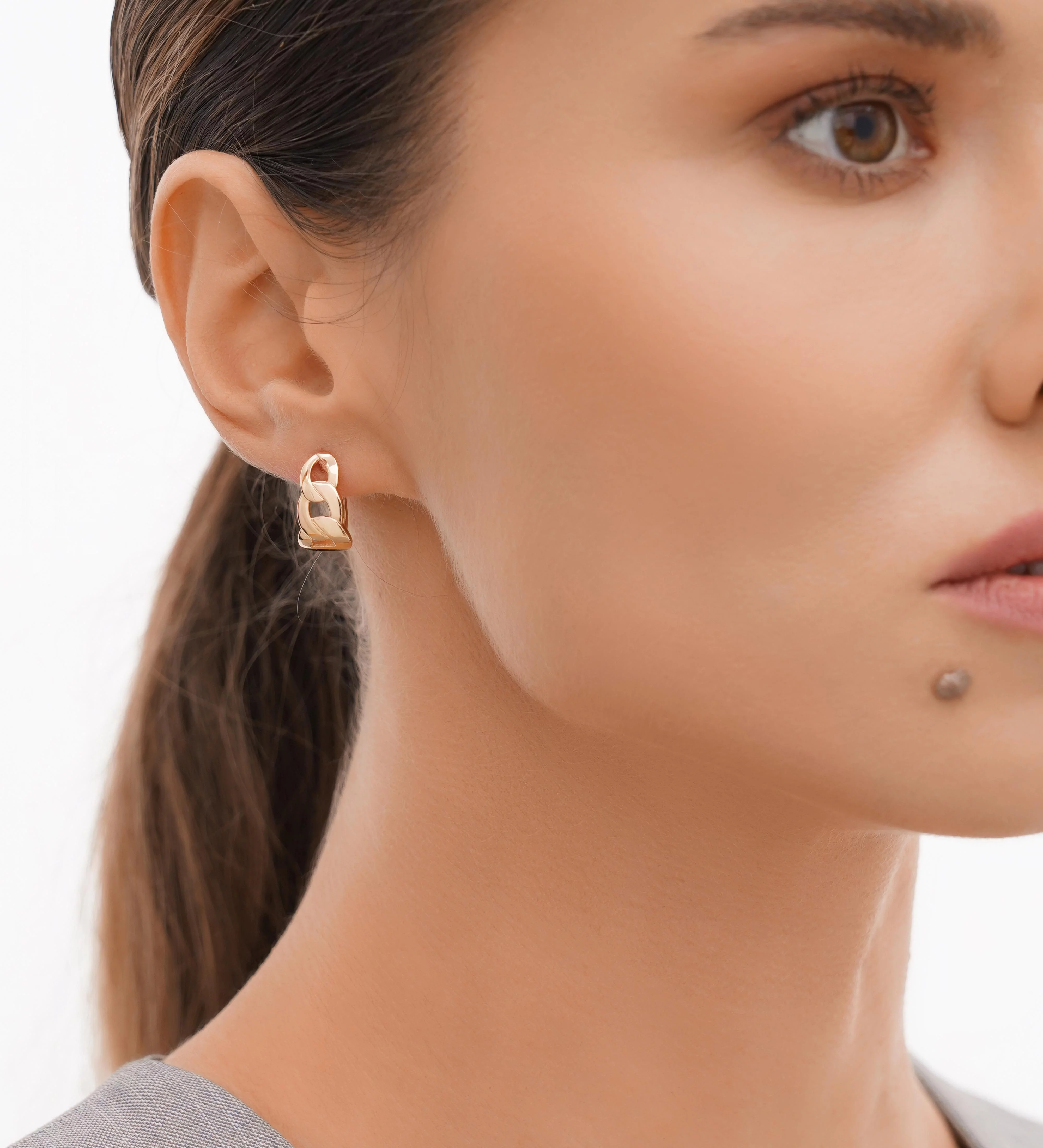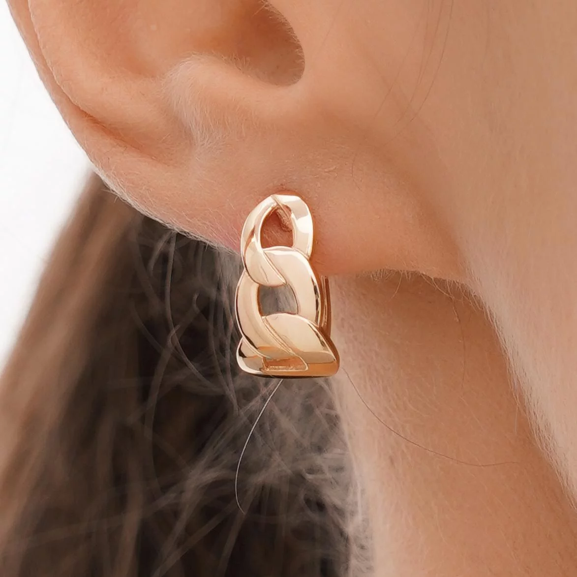 Сережки-кільця з підвісами з червоного золота в мінімалістичному стилі - 1690471