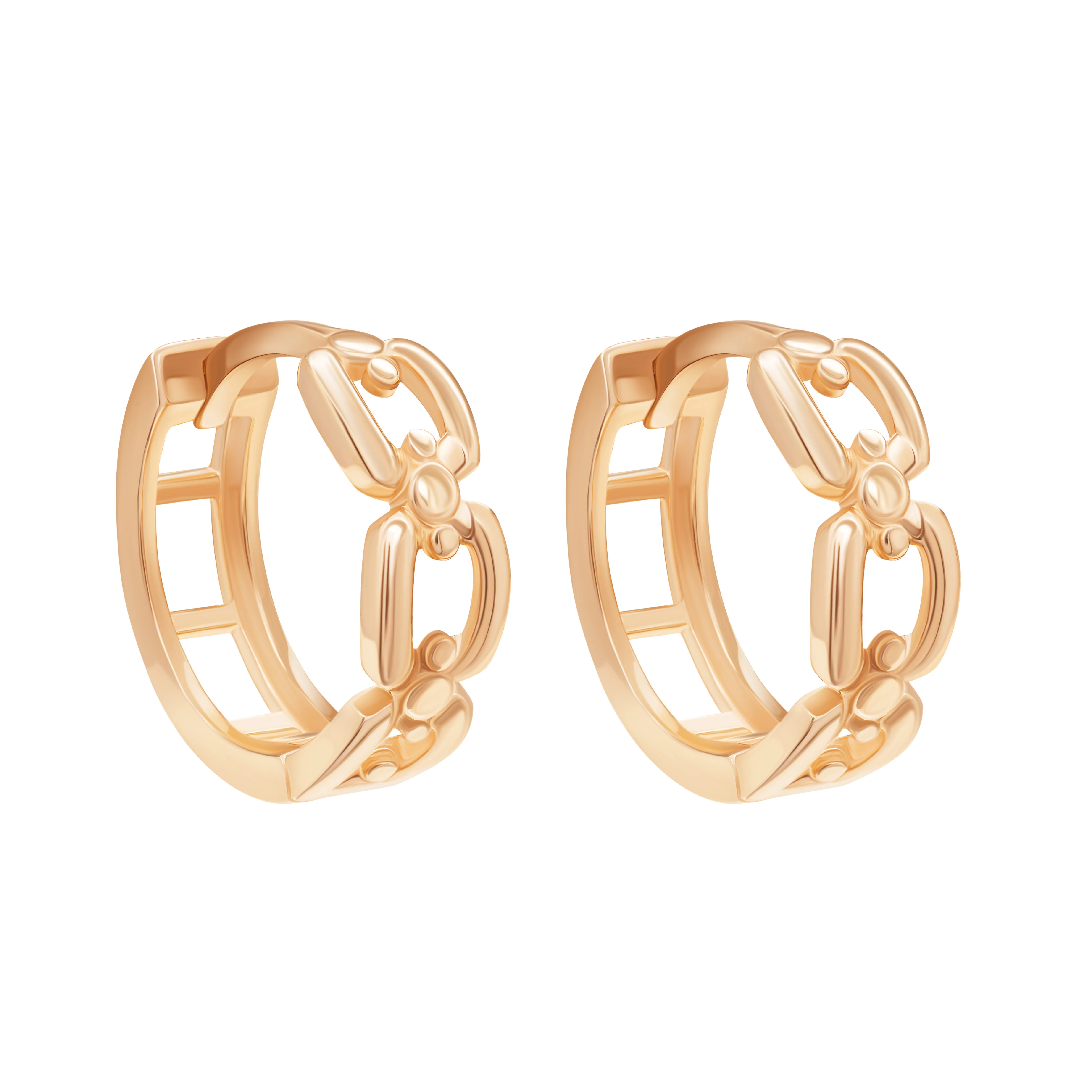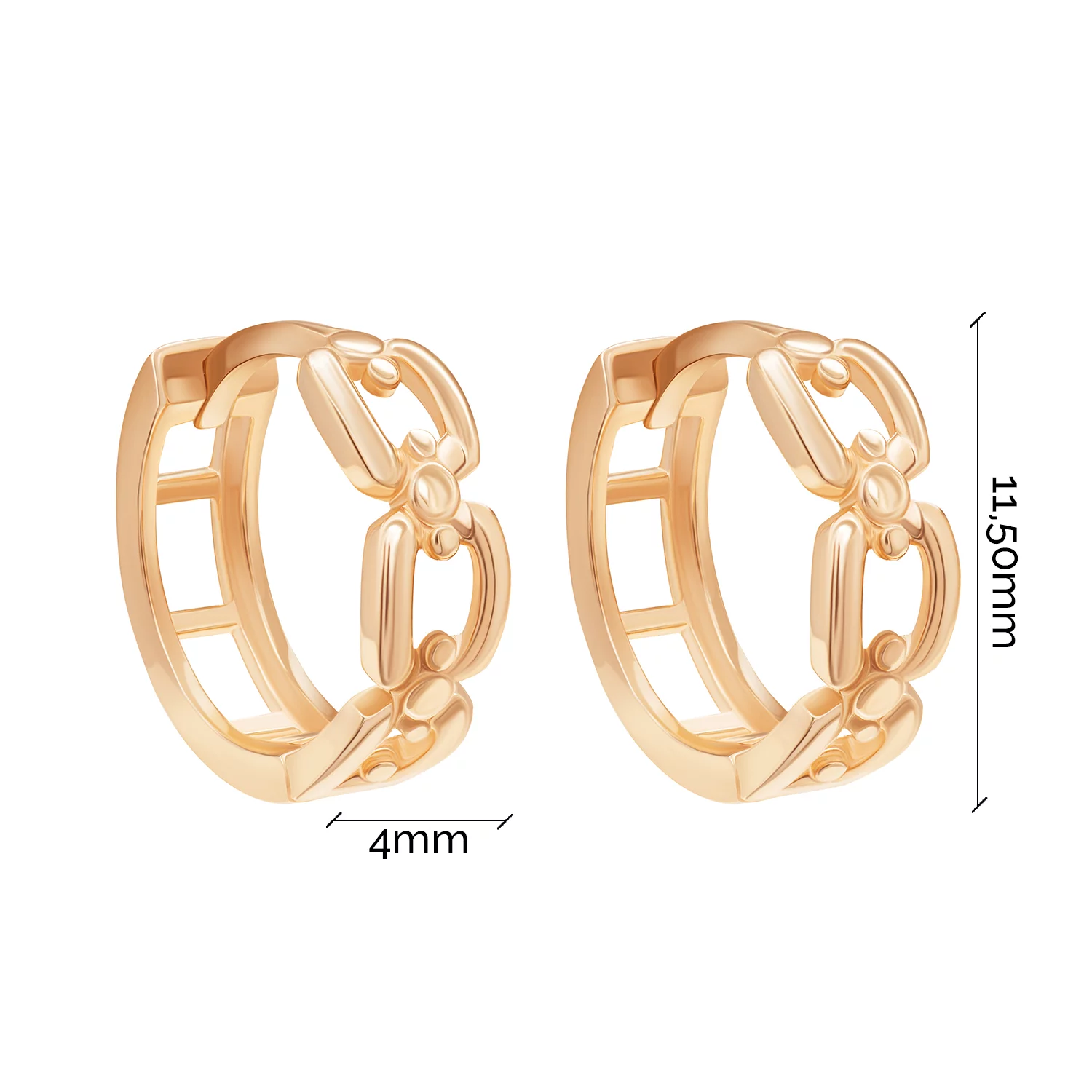 Сережки-кільця з підвісом із червоного золота з рельєфною текстурою - 1856422