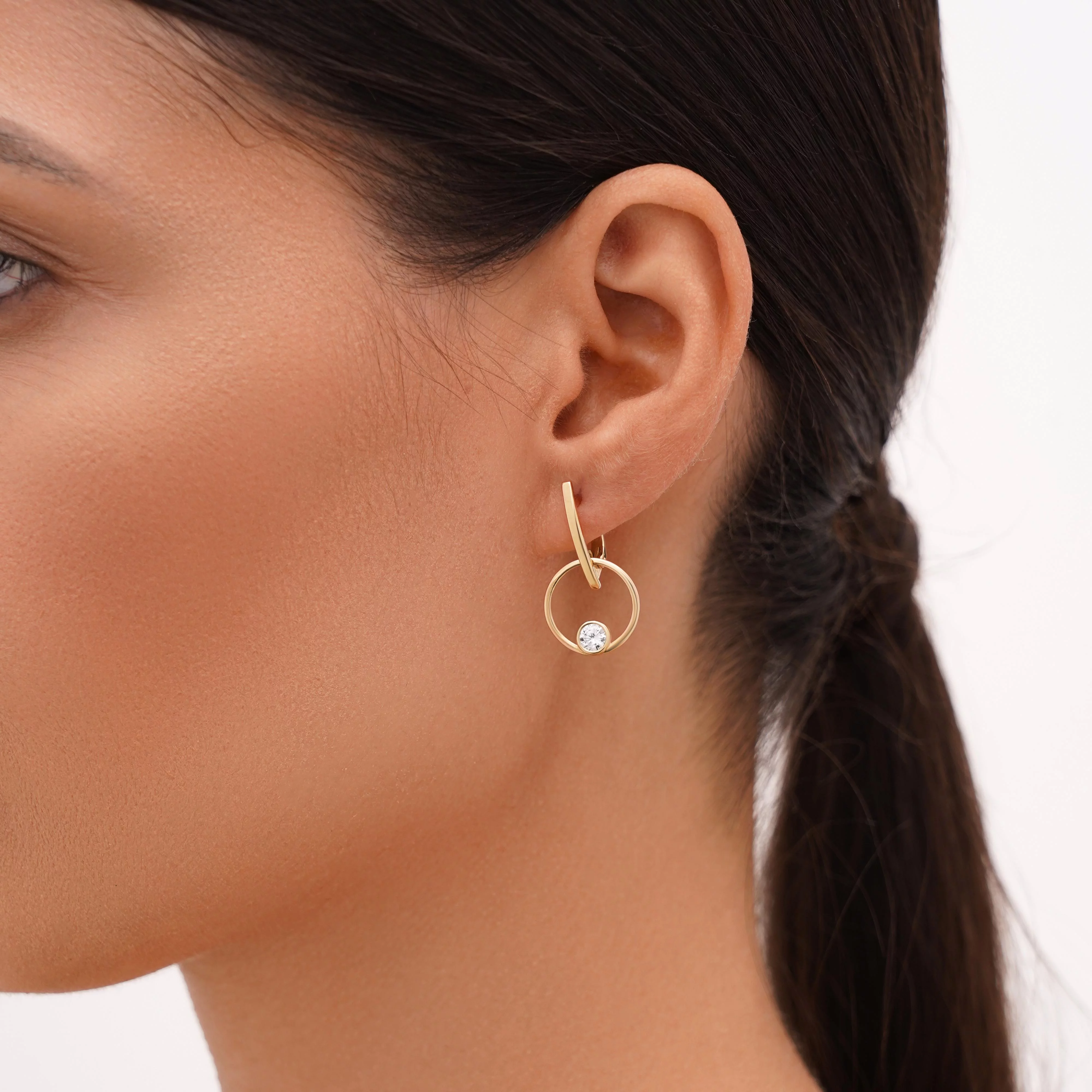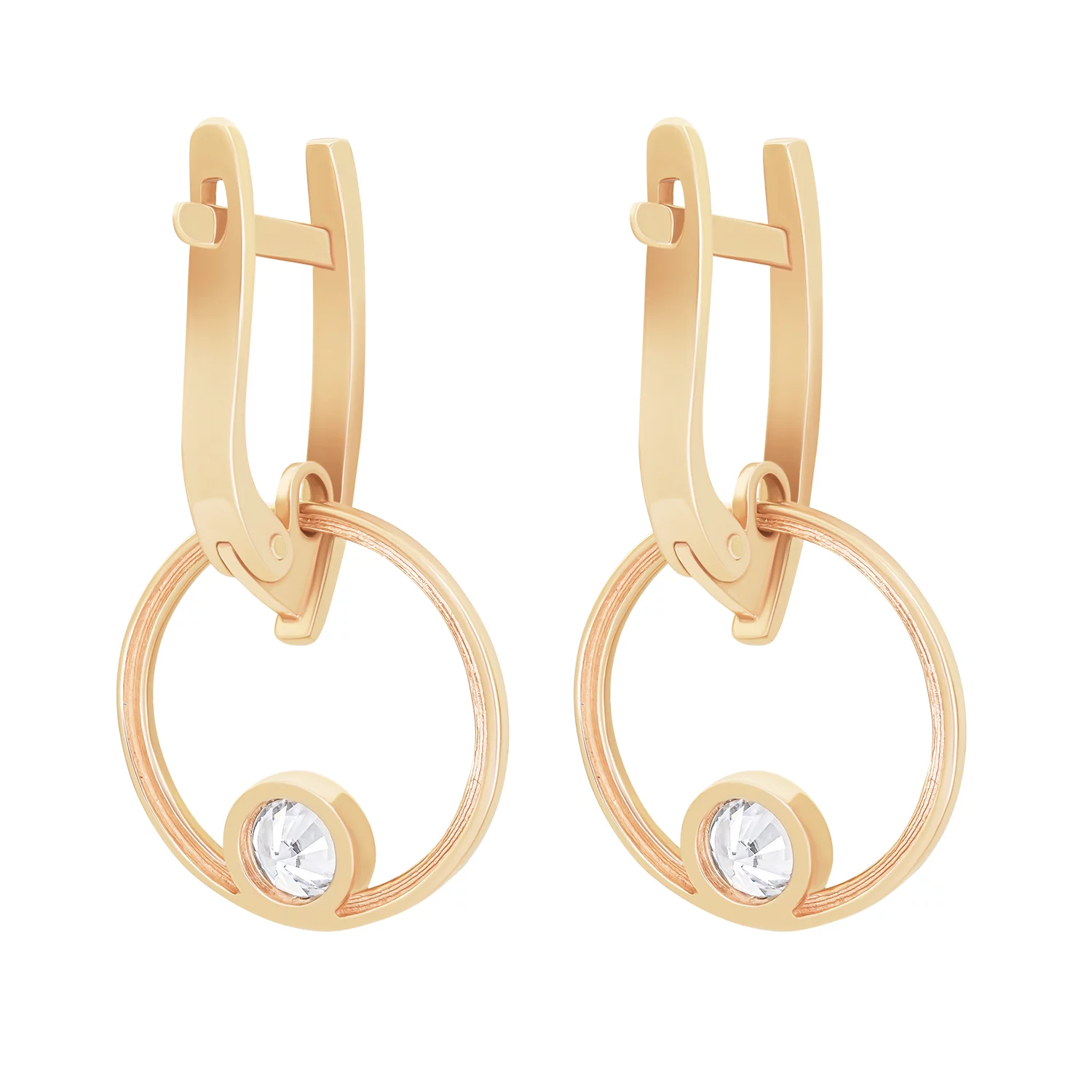 Сережки-протяжки з червоного золота з підвісами "Ромб" та фіанітами - 1738074