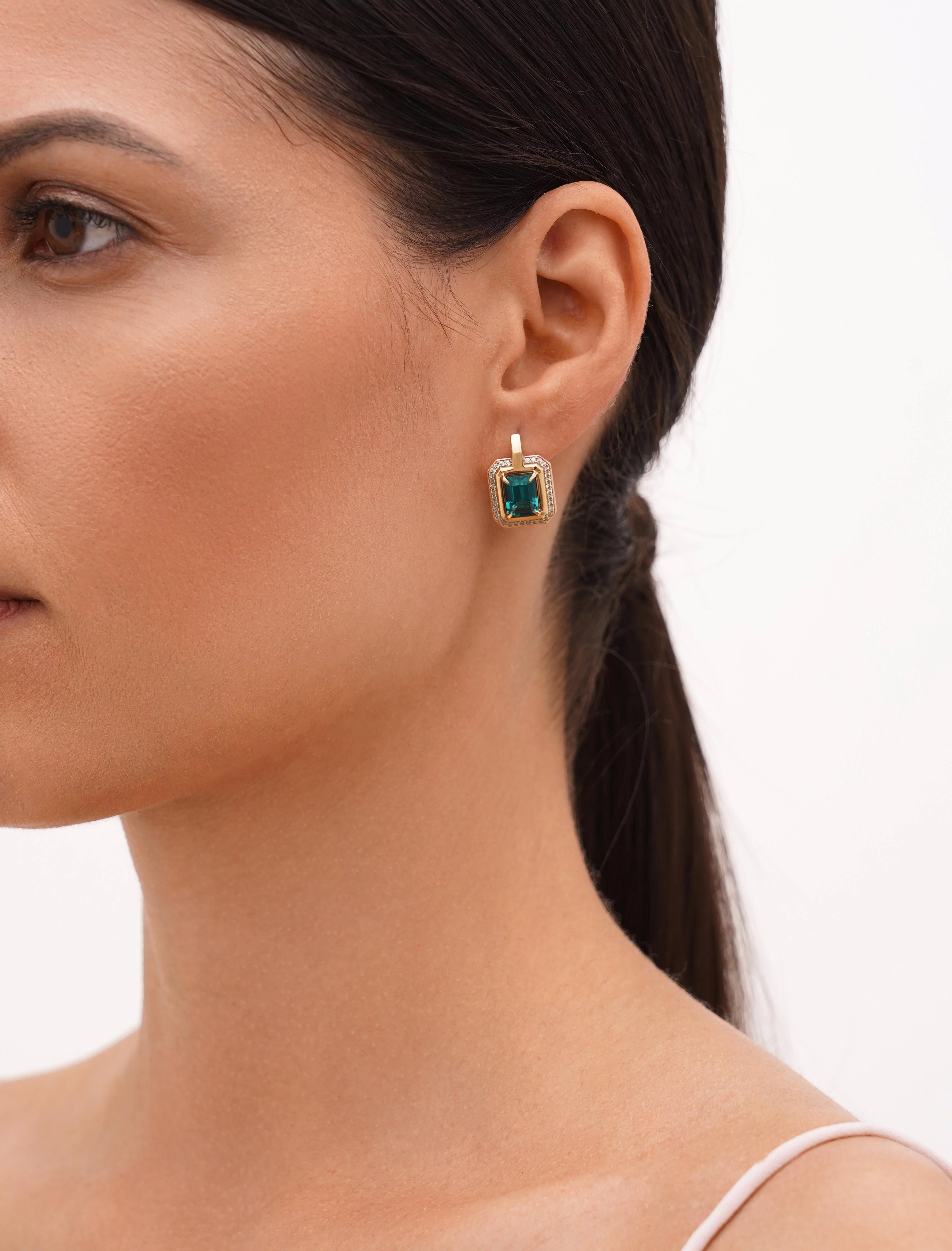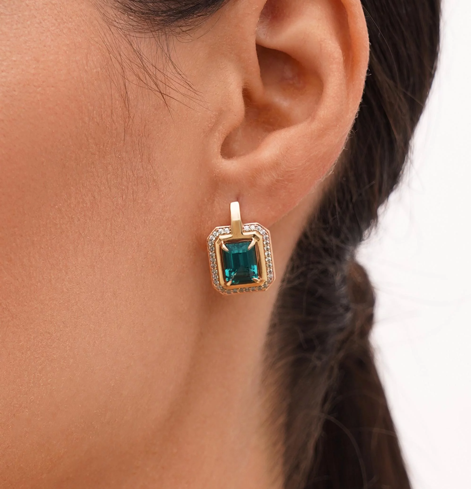 Сережки у геометричному стилі з червоного золота з турмаліном - 1958346