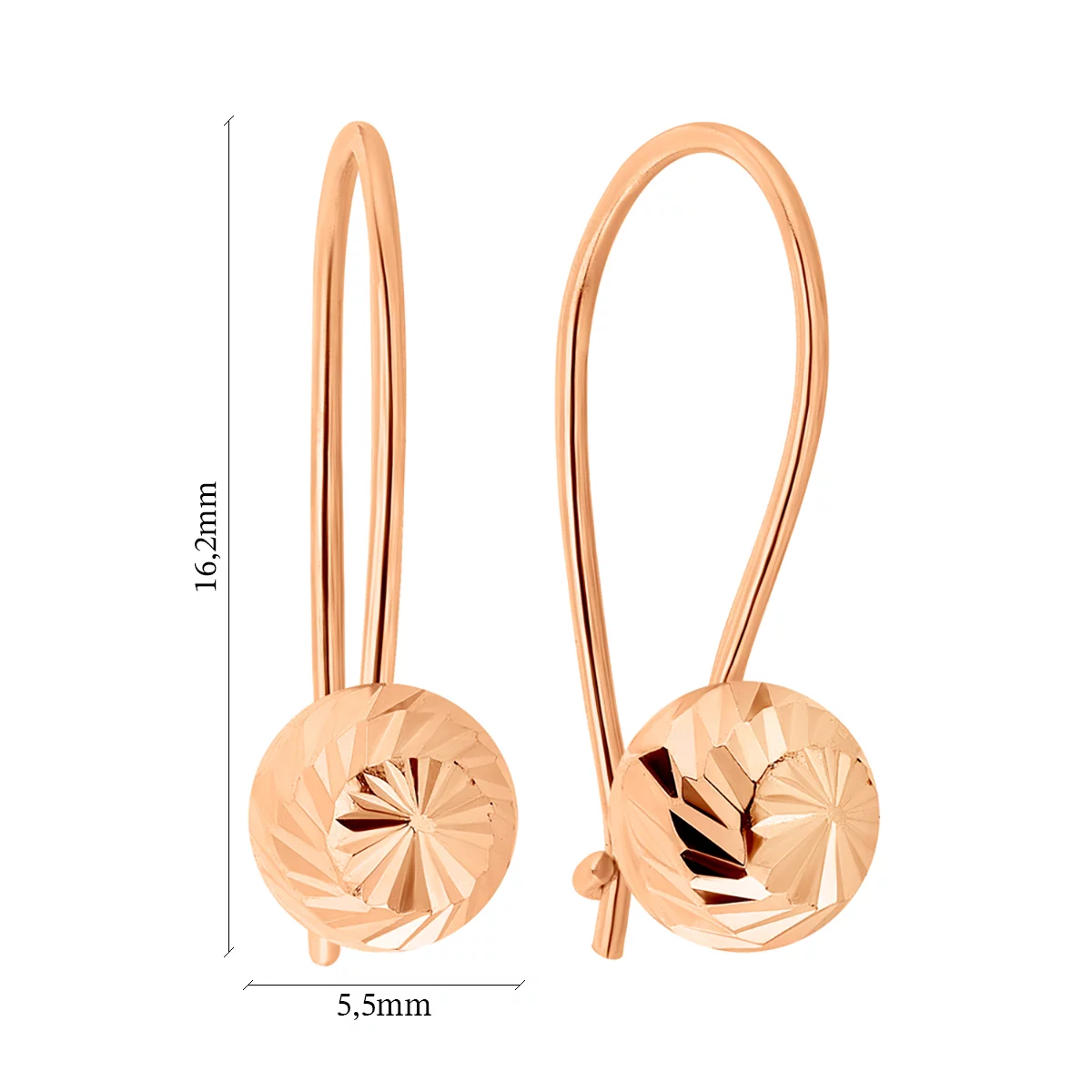 Сережки-петлі з червоного золота з алмазною гранню "Кулі" - 970925