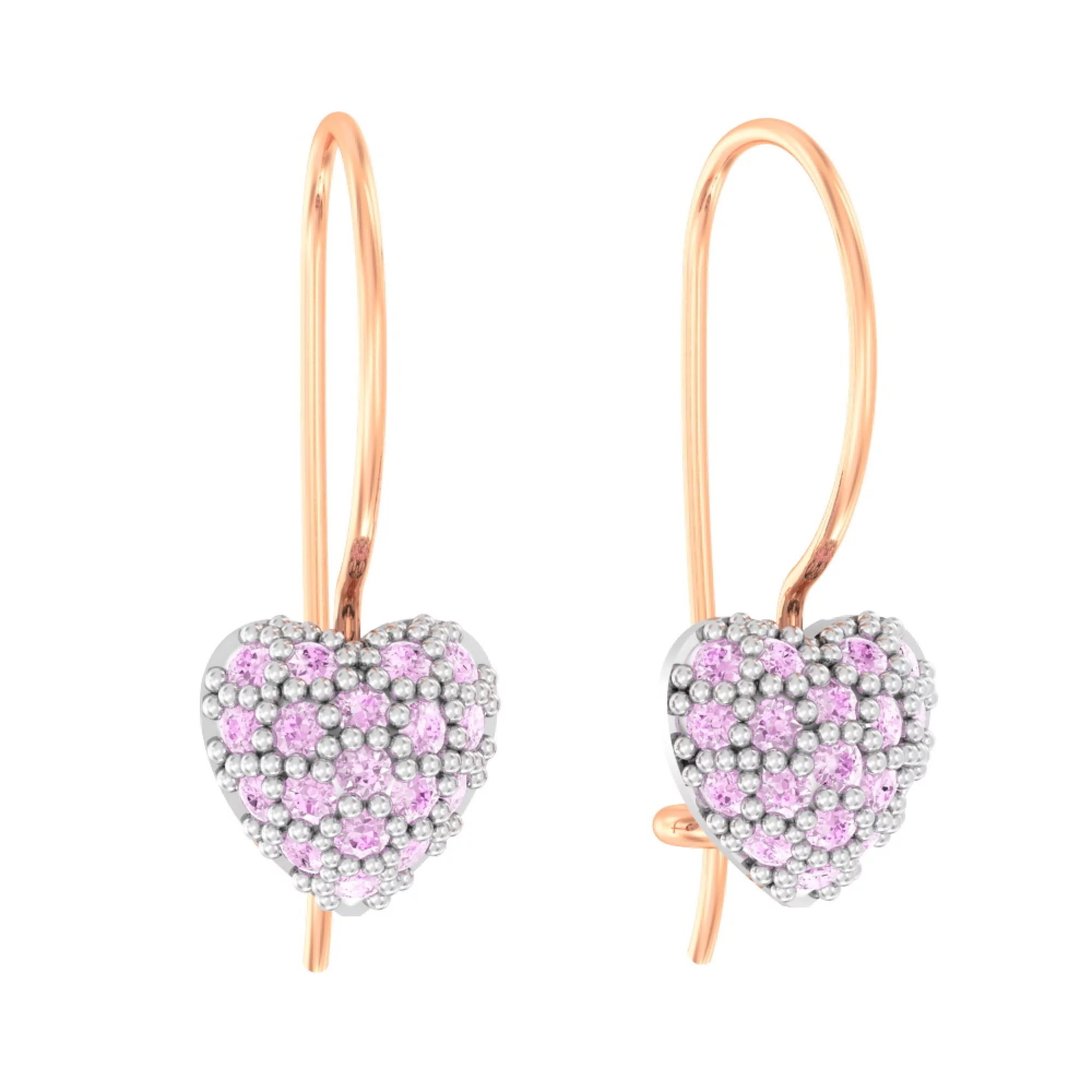 Сережки-петлі з червоного золота з фіанітом Сердечки - 970532