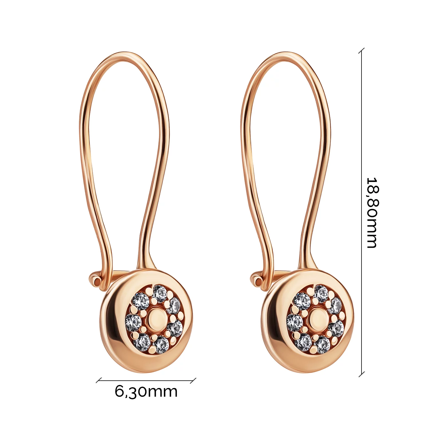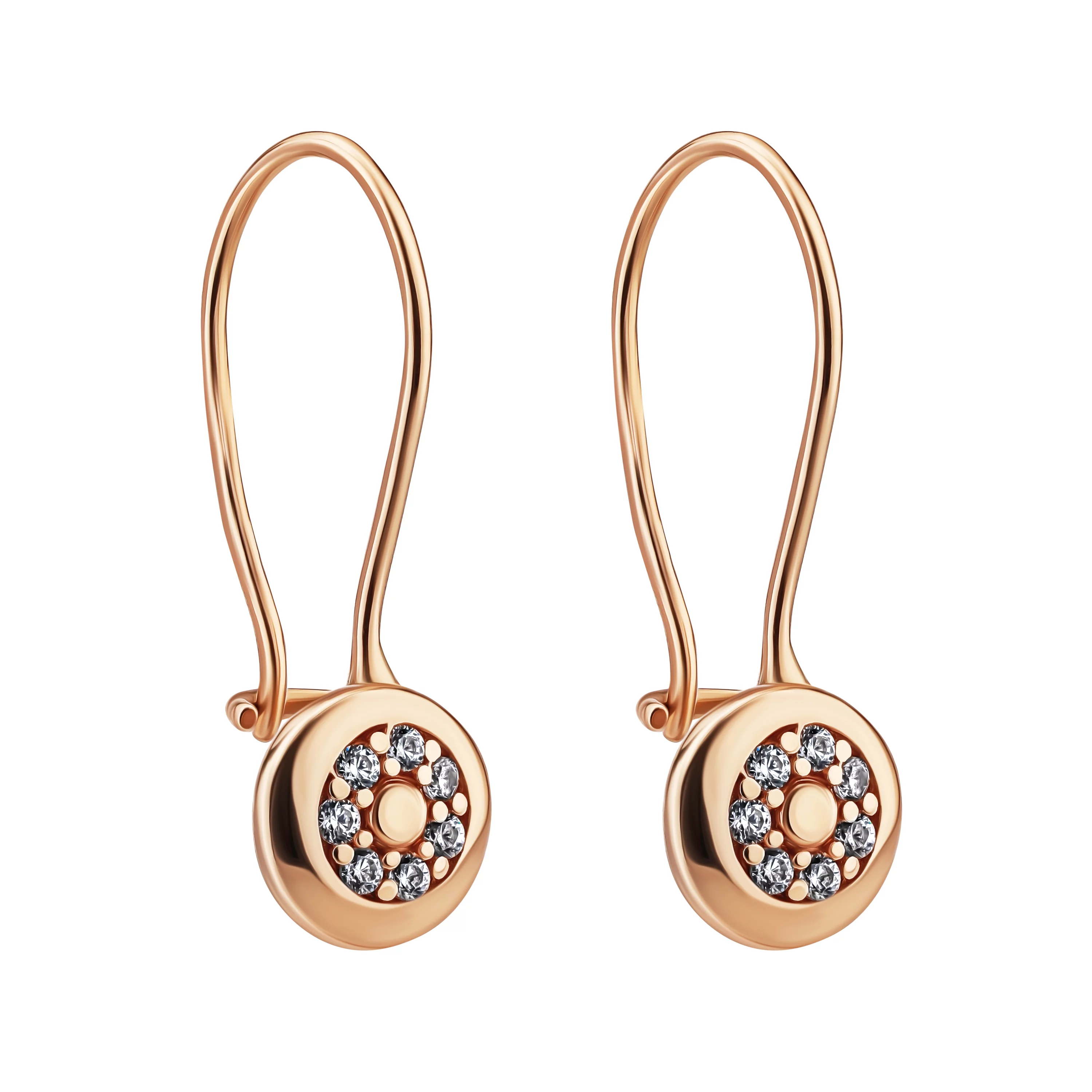Сережки з червоного золота в геометричному стилі з фіанітами - 1877892