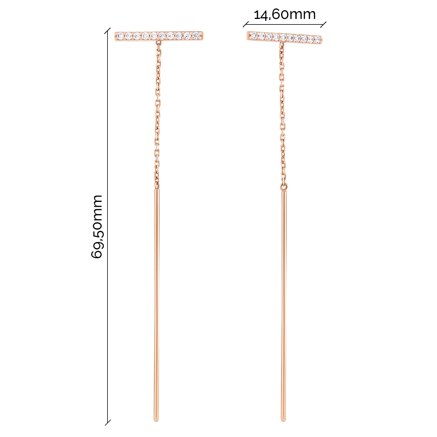 Сережки-протяжки "Зірочка" з червоного золота з фіанітами та якірним плетінням - 1802032