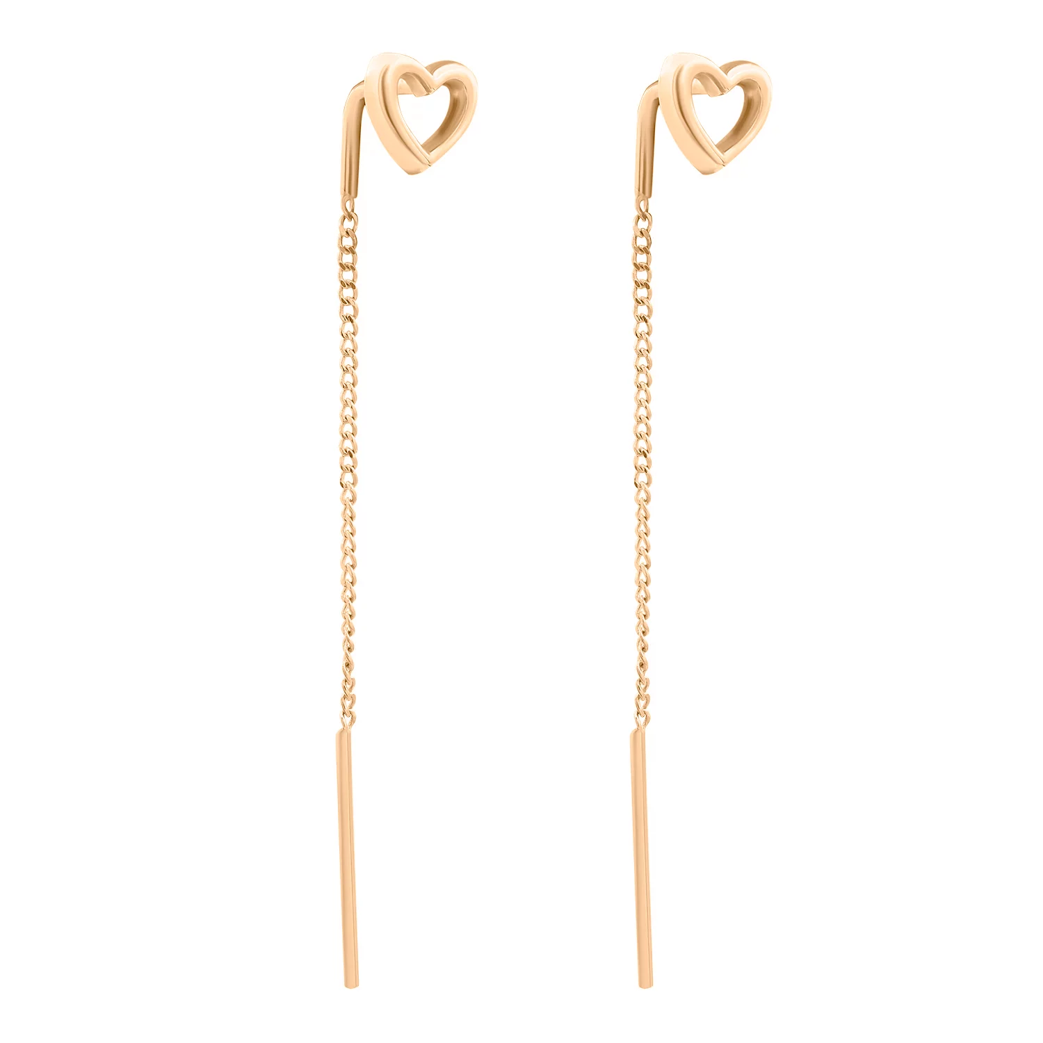 Сережки-протяжки з червоного золота "Сердечка" - 855421