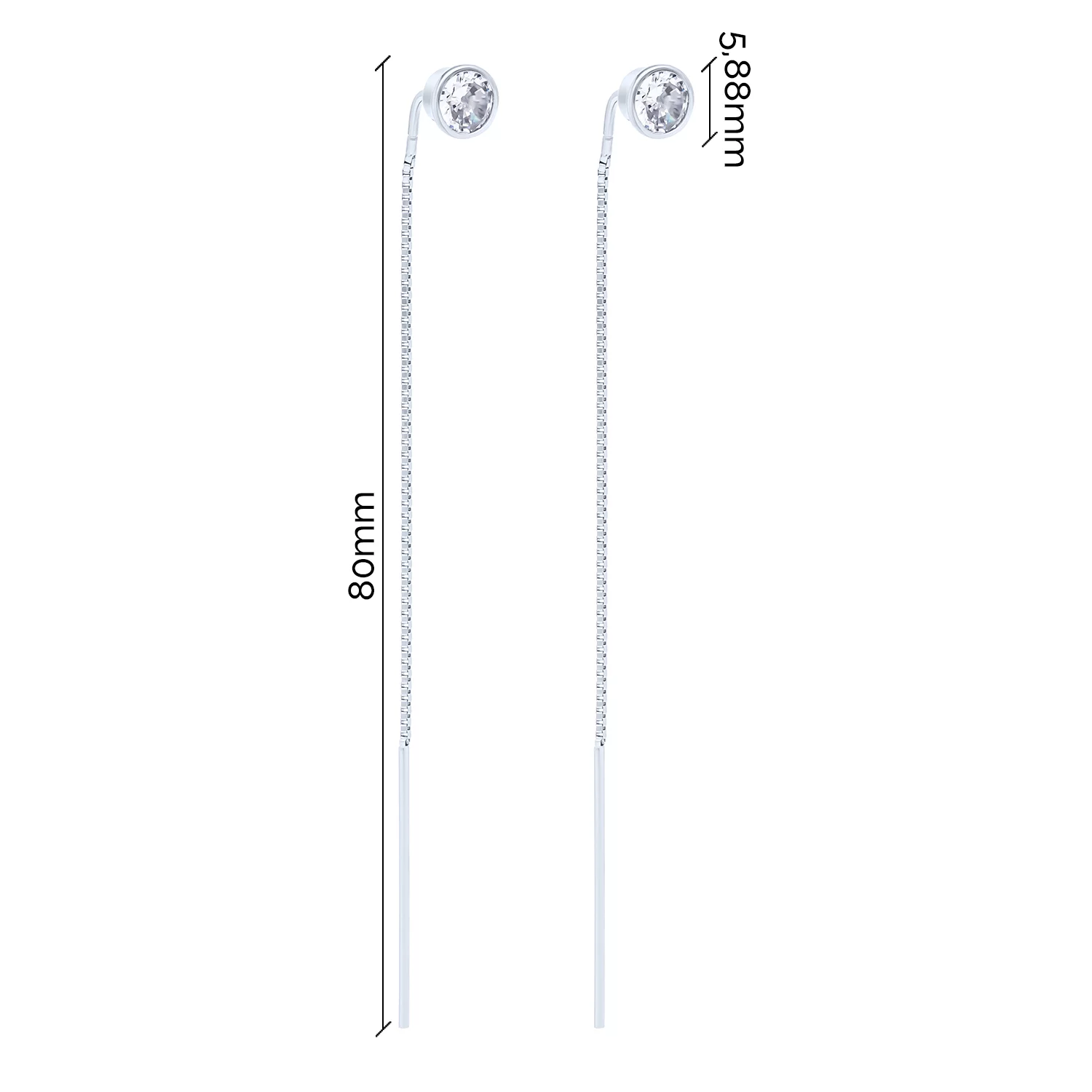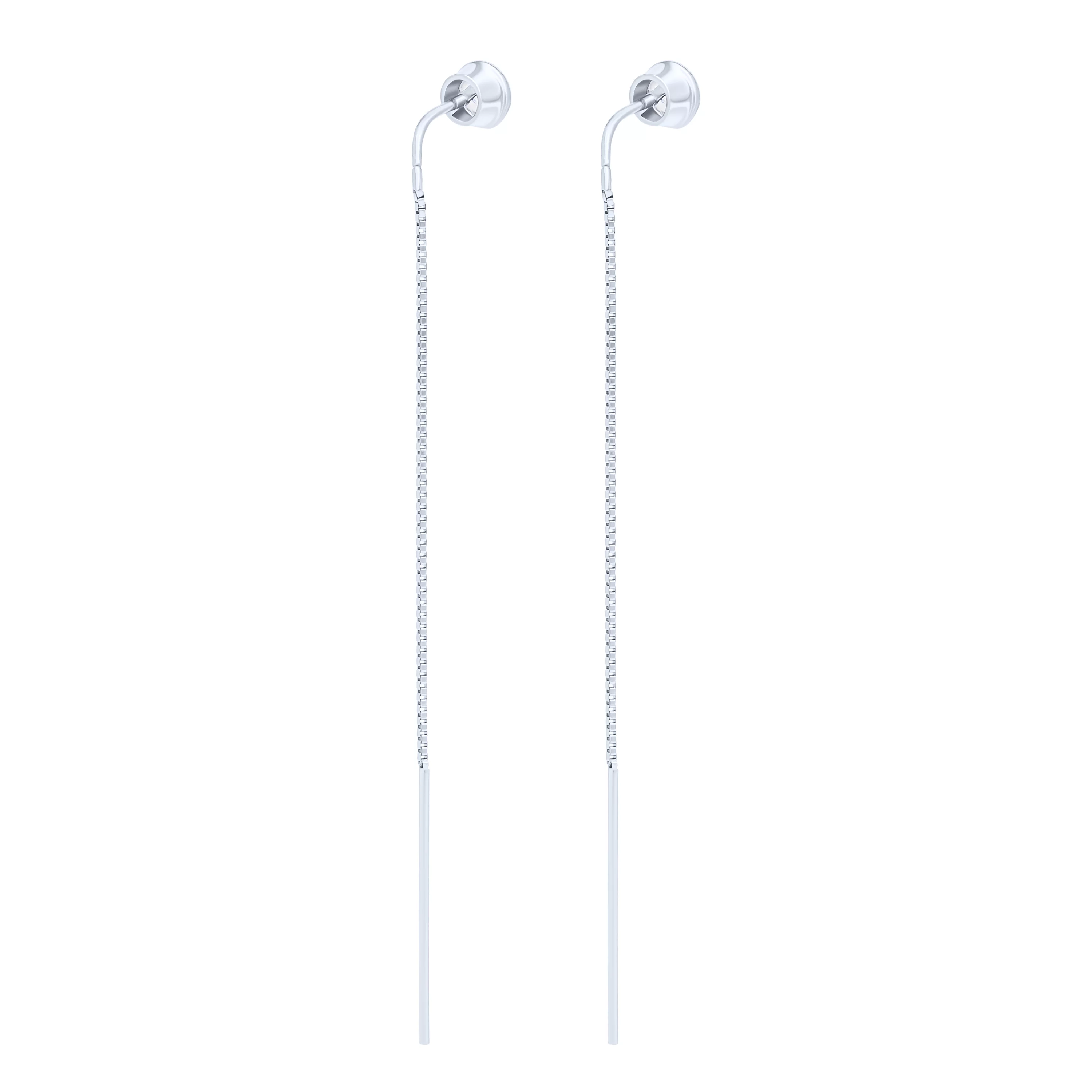 Елегантні сережки-протяжки в мінімалістичному дизайні з білого золота та фіанітами - 1870345