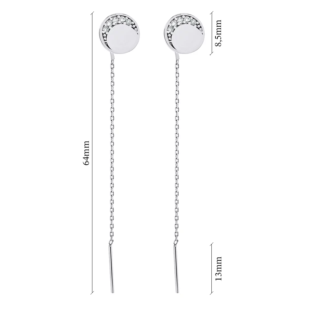 Сережки-протяжки "Місяць" з білого золота з фіанітами - 1500277