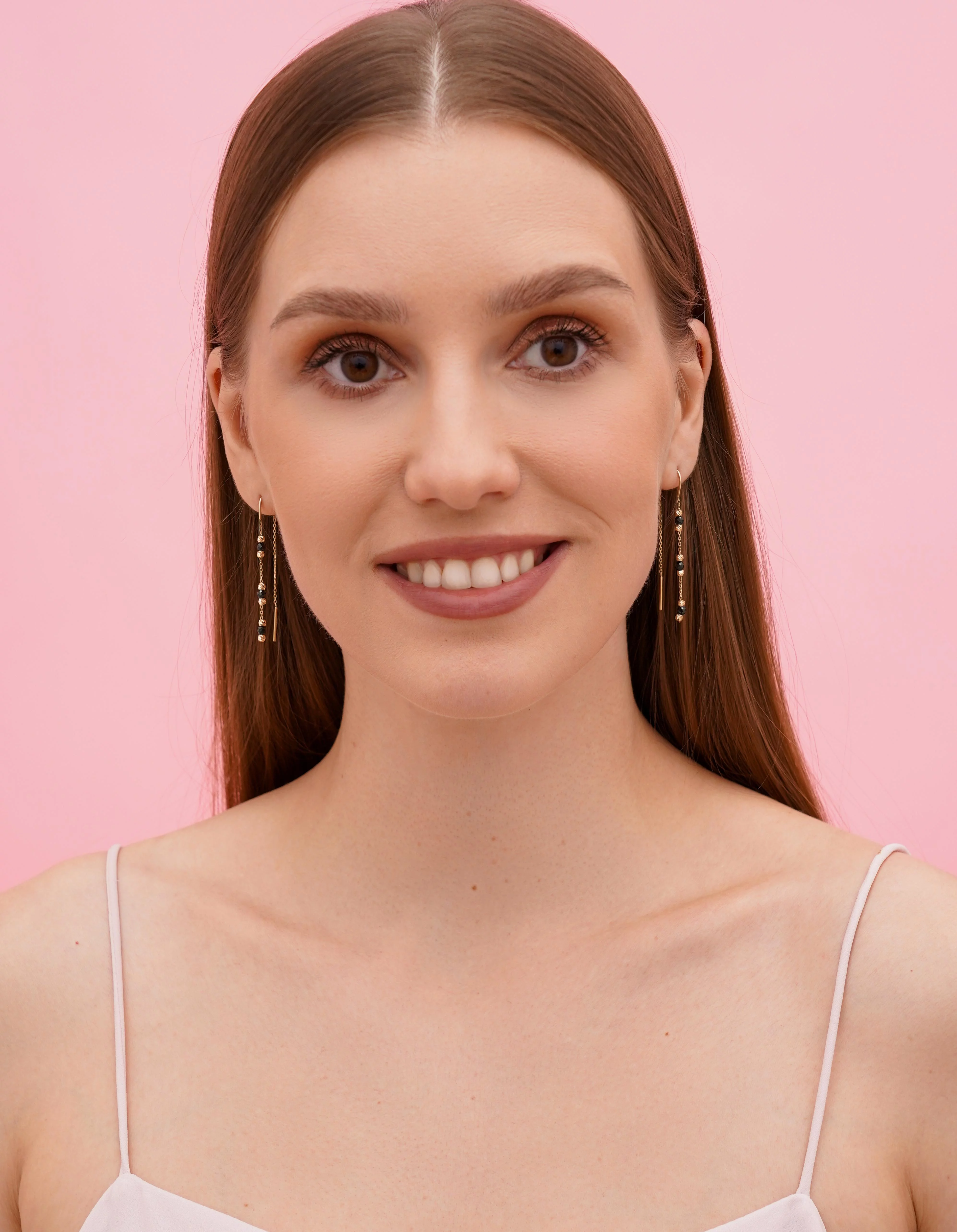 Стильні сережки-протяжки "Кулі" з срібла з шпінелью та алмазною гранню - 1960951