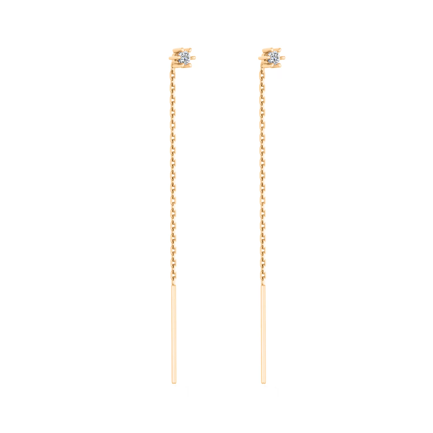 Сережки-гвоздики з діамантом у стилі мінімалізм у червоному золоті - 1801732