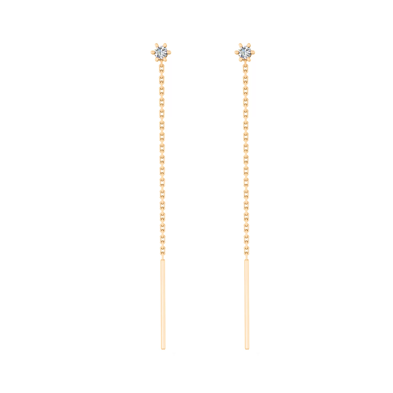 Елегантні сережки-протяжки в мінімалістичному дизайні з білого золота та фіанітами - 1870345