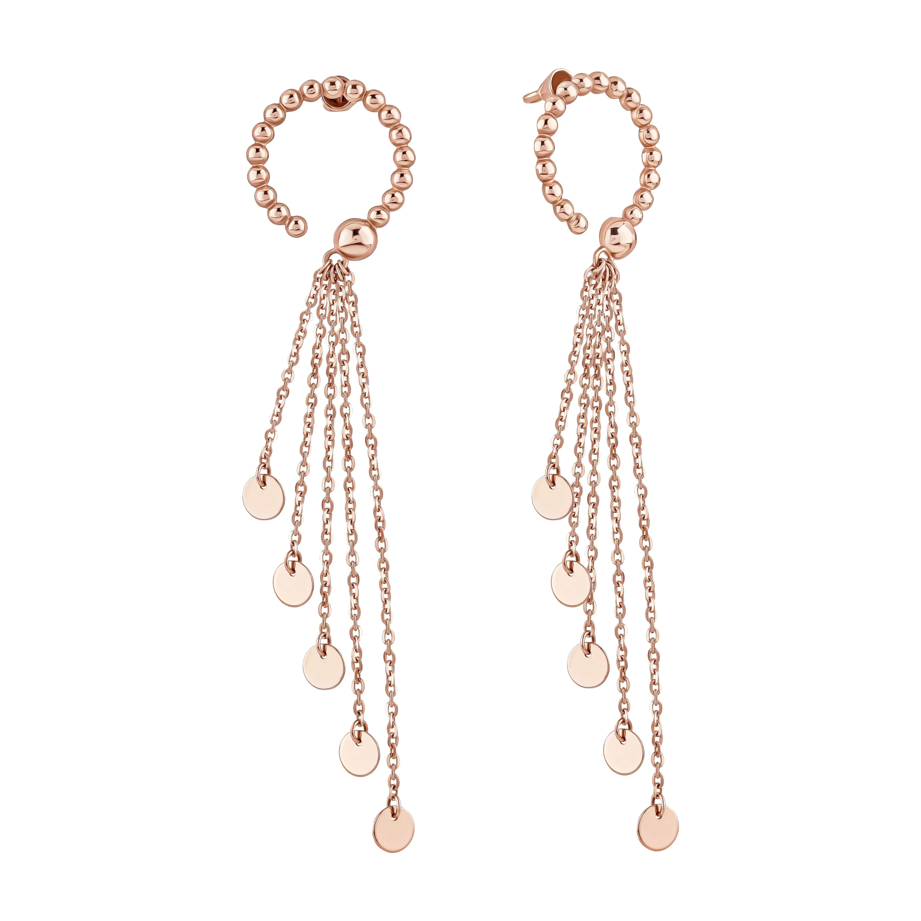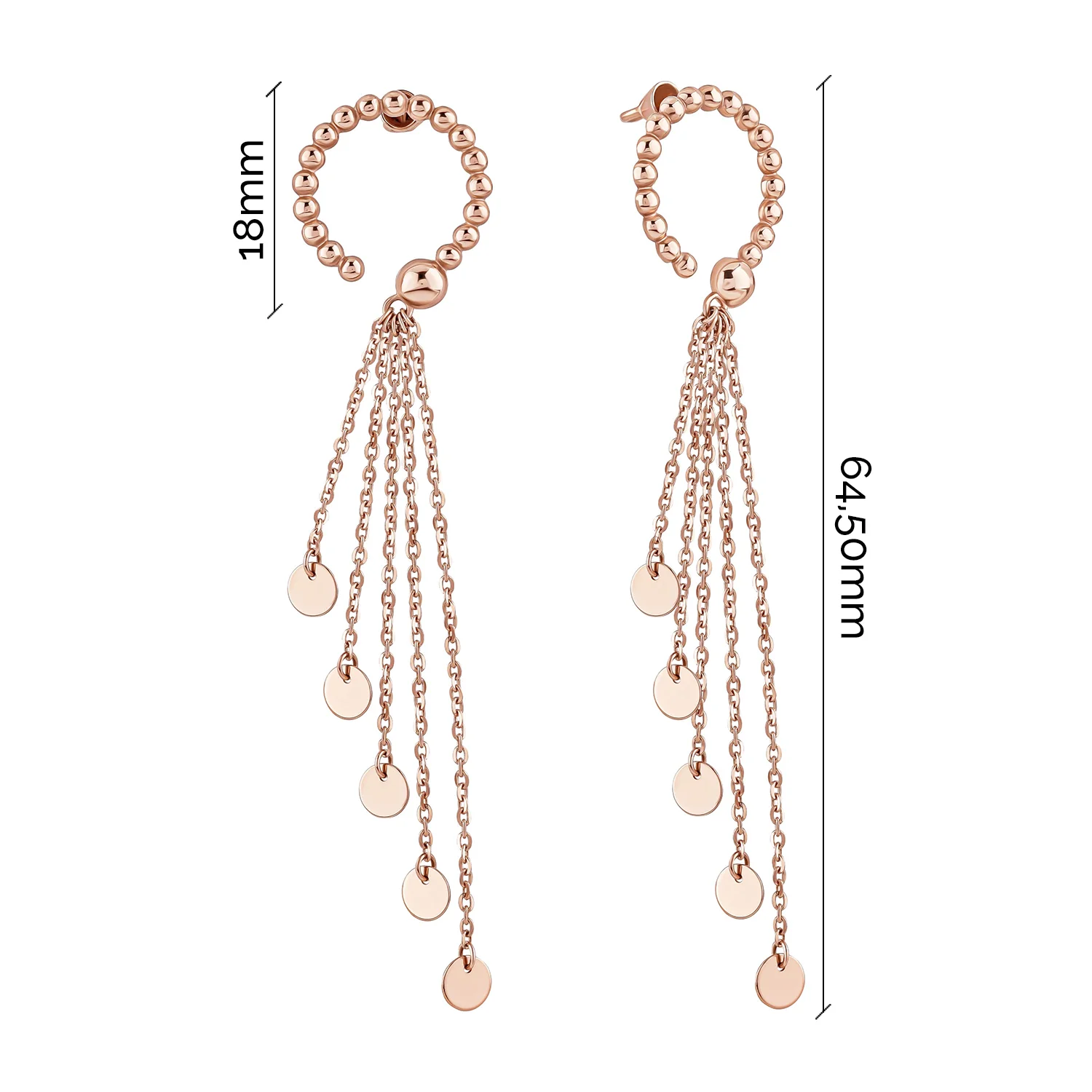 Сережки-пусети "Кулі" з підвісами в червоному золоті - 1982624