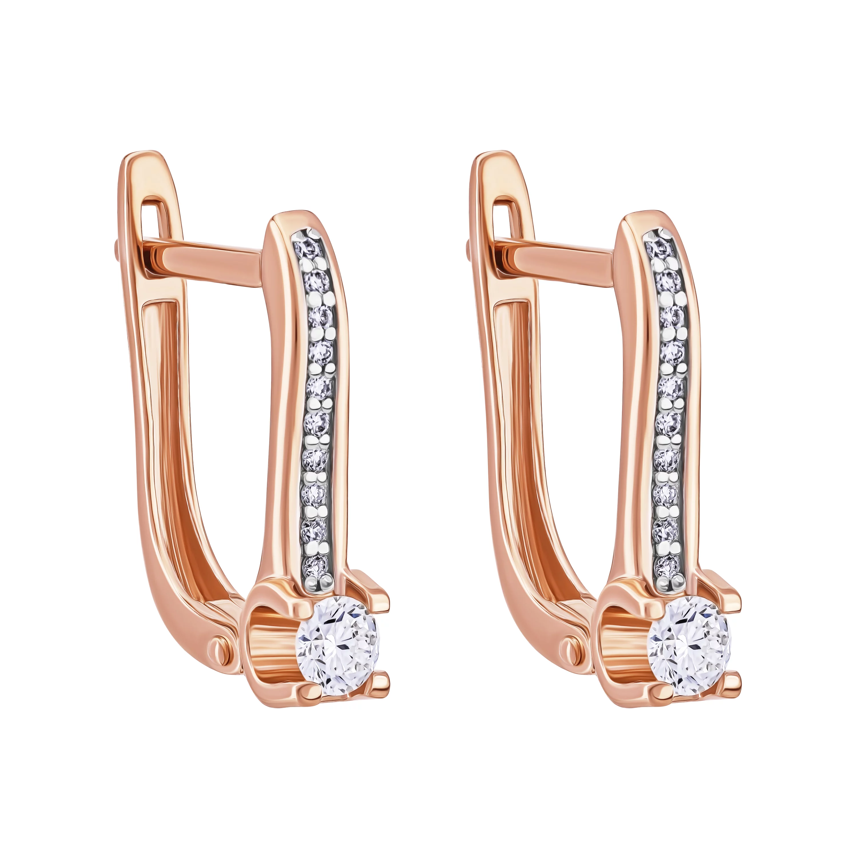 Сережки з доріжкою з діамантів у червоному золоті - 1872162