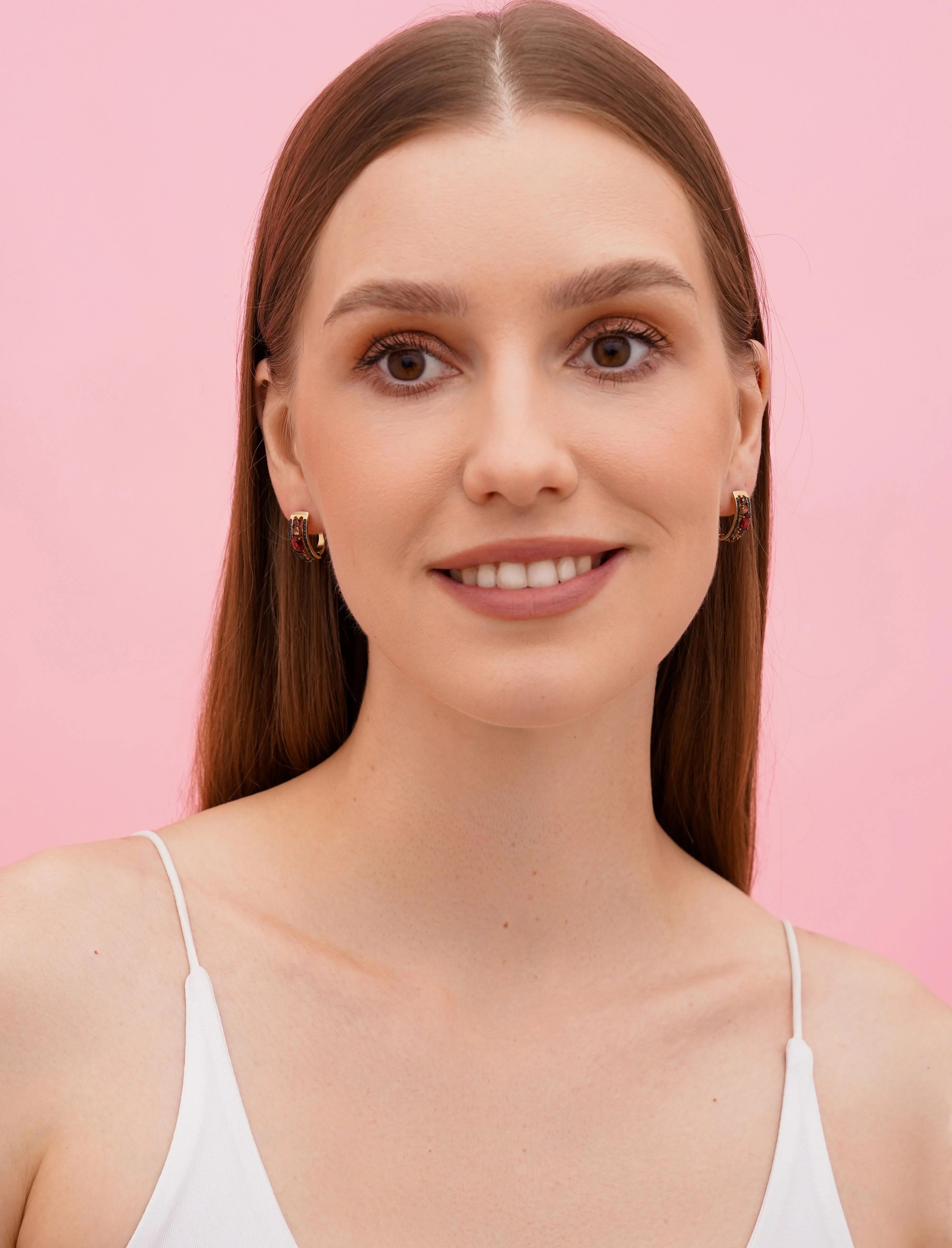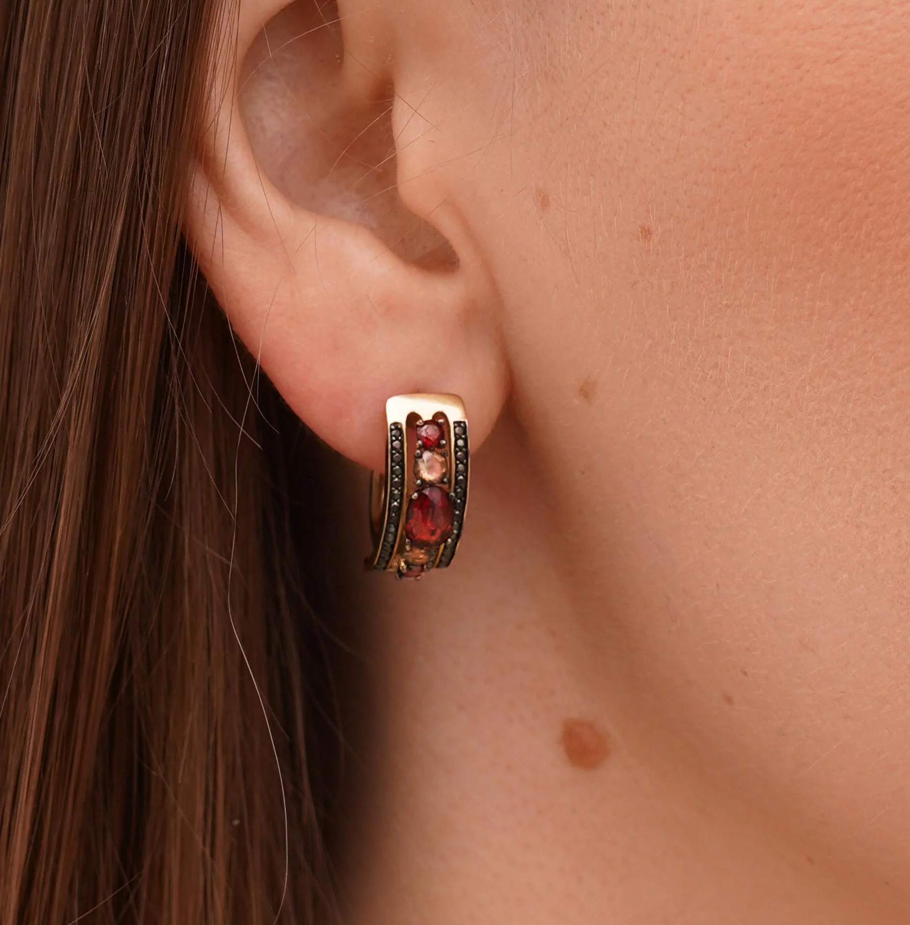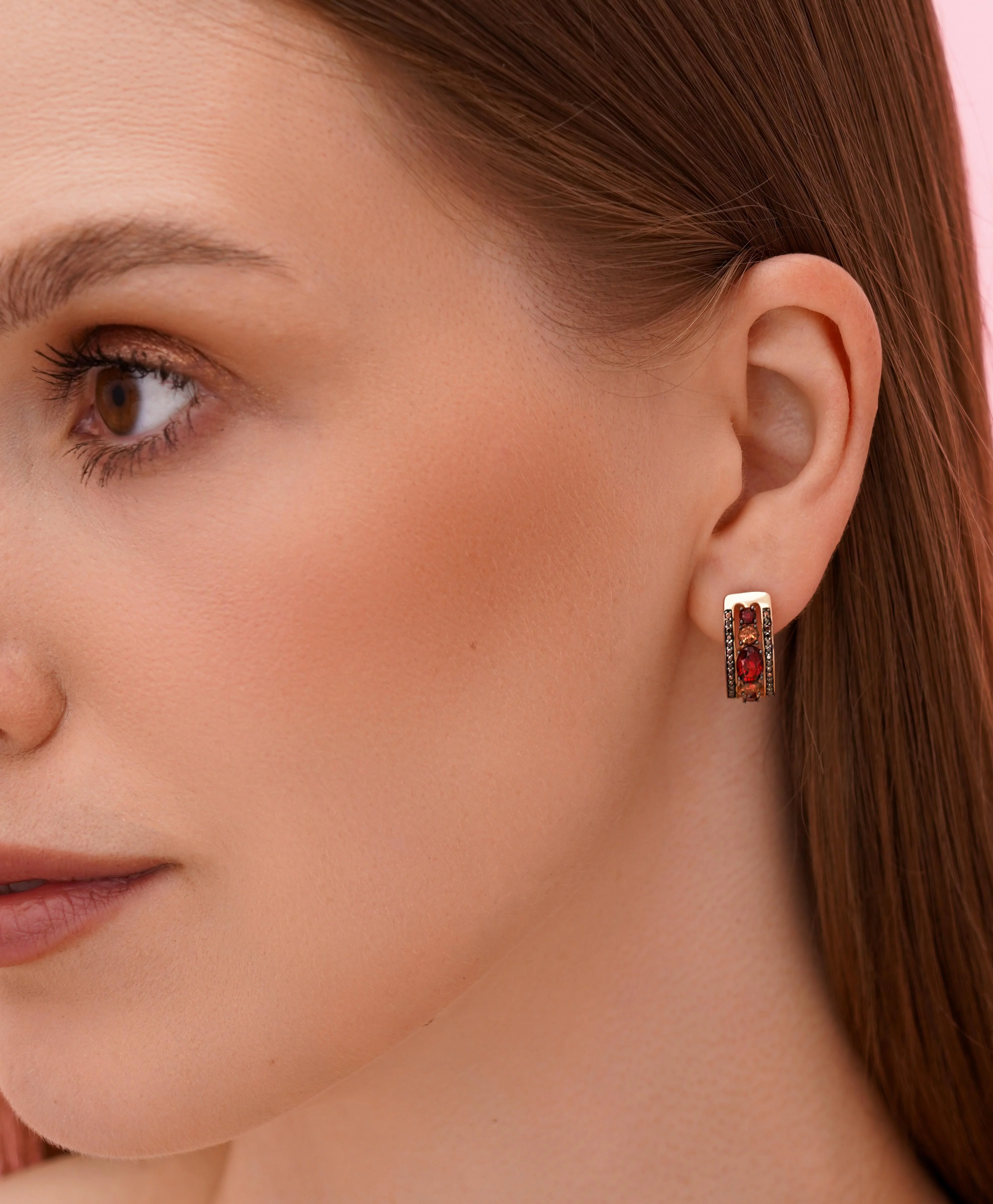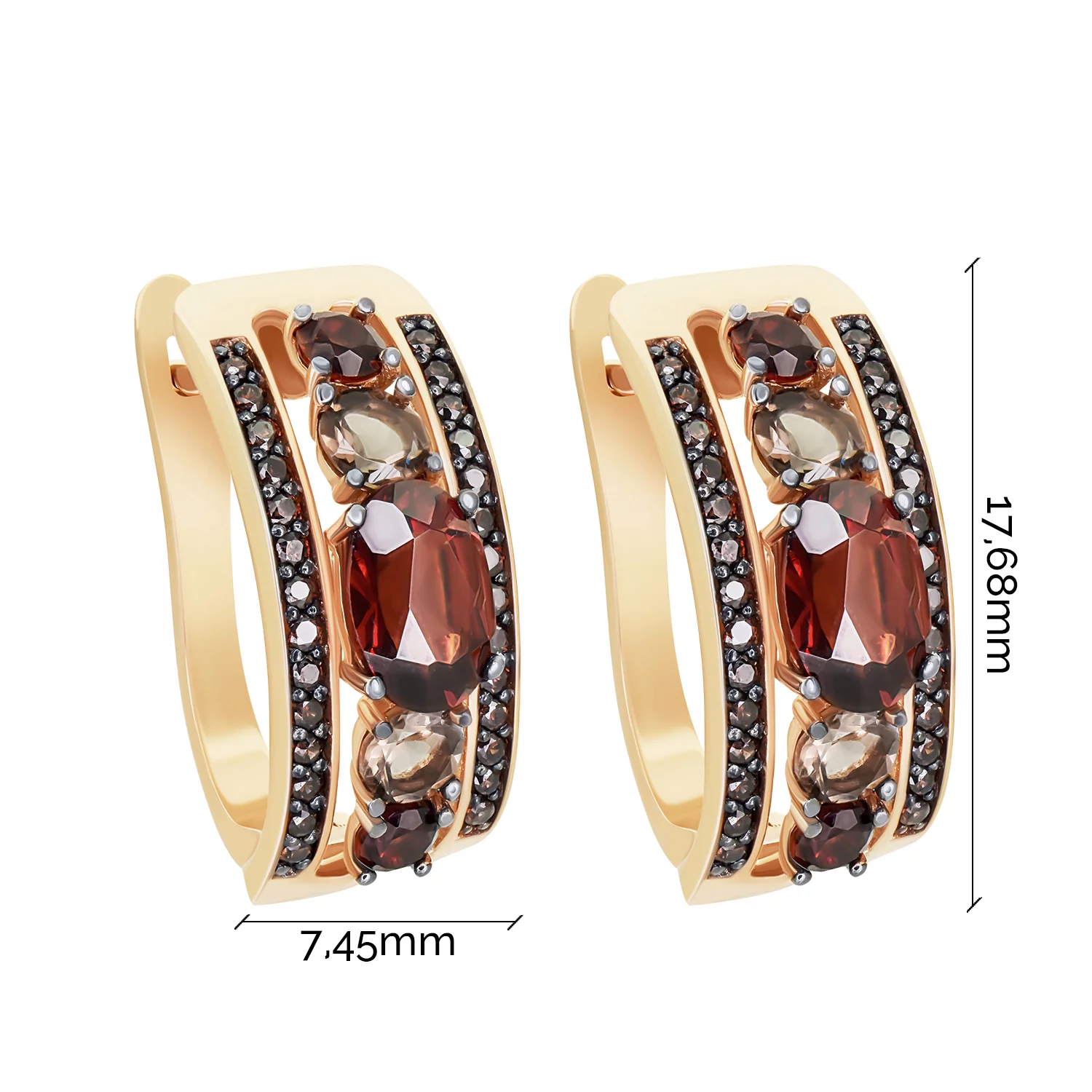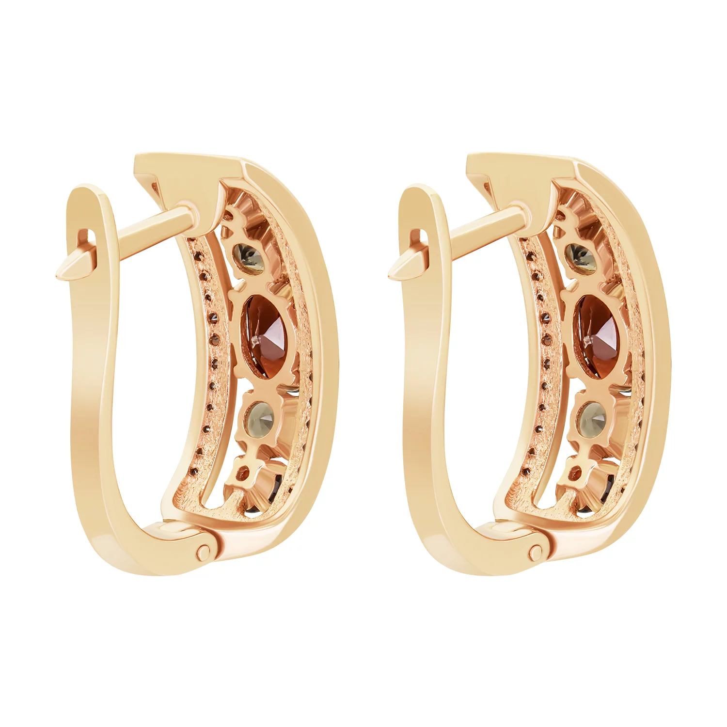 Сережки "Квадрат" у червоному золоті з гранатом та фіанітами - 1925554