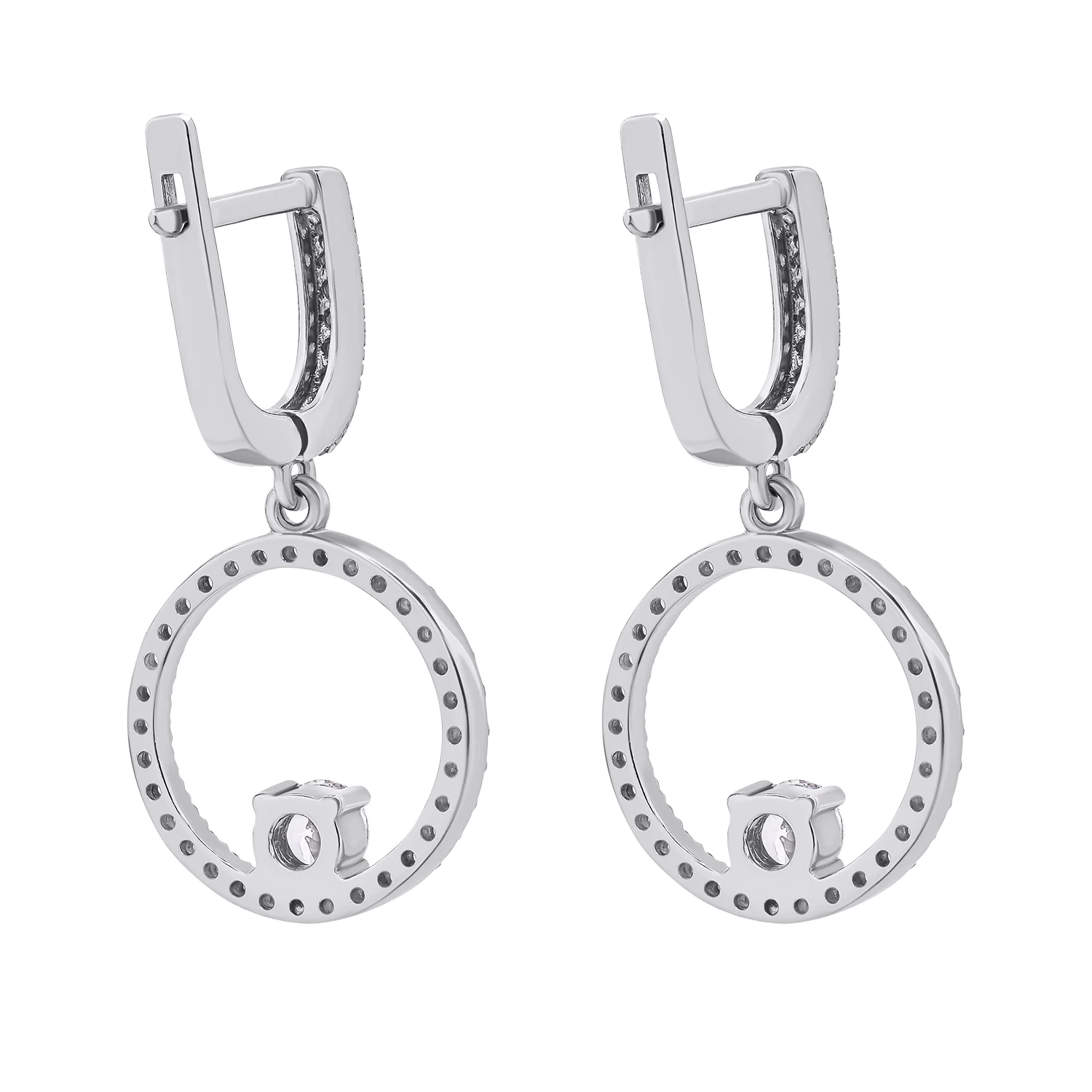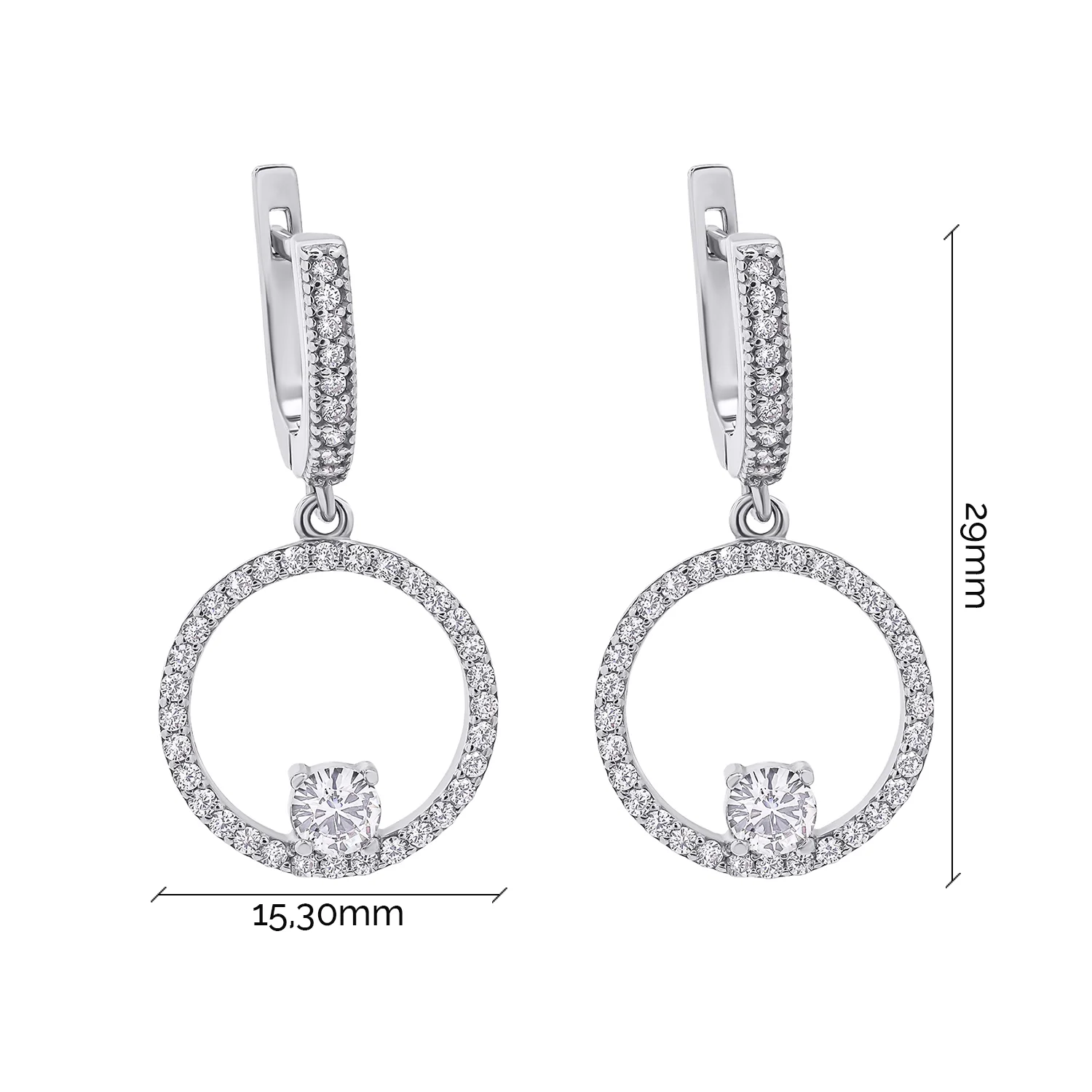 Сережки зі срібла з підвісами "Переплетення Кілець" з фіанітами - 968613