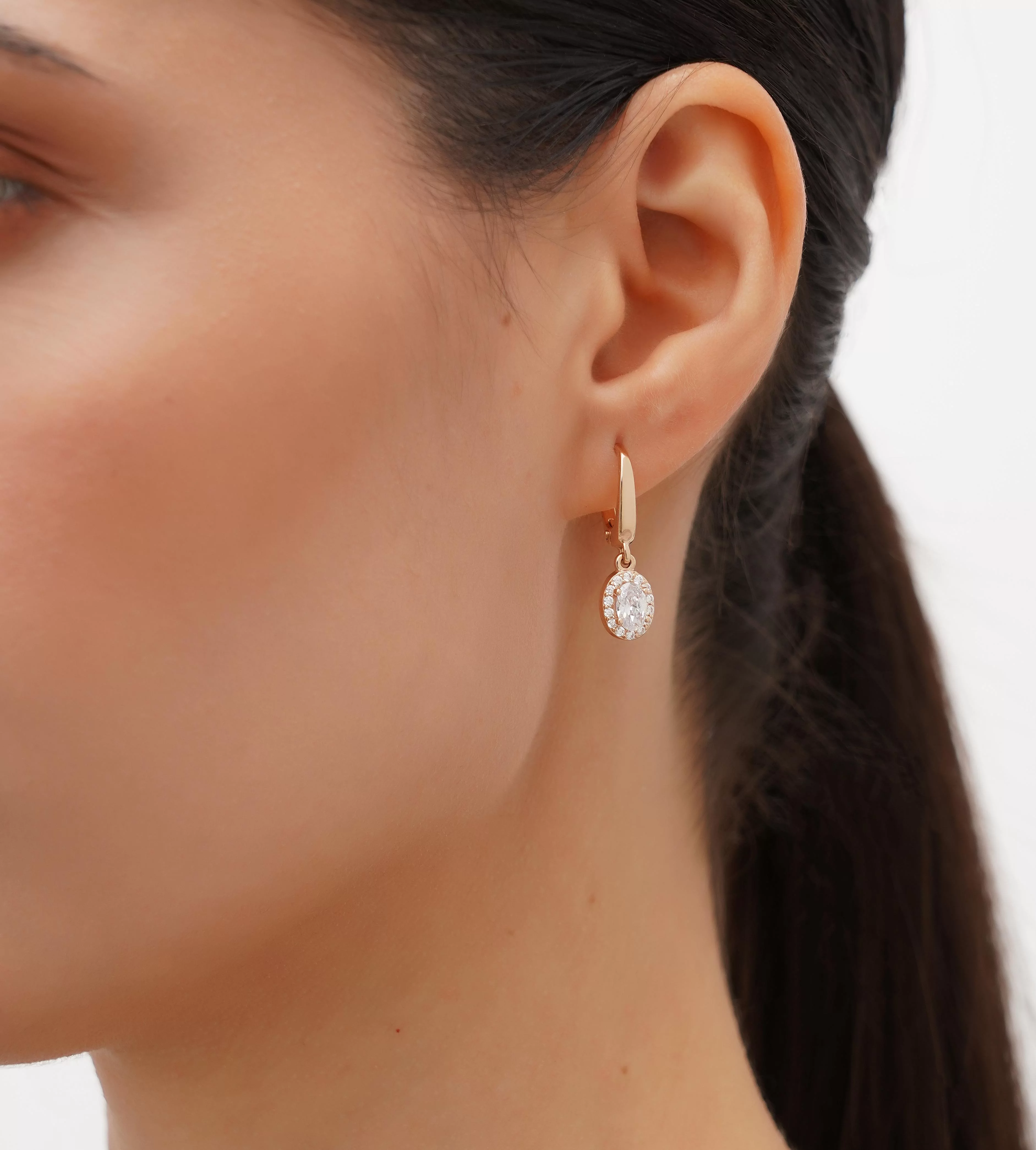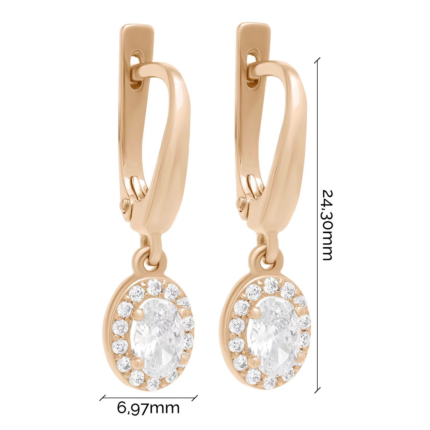 Сережки з червоного золота з підвісним турмаліном і фіанітами - 1687879