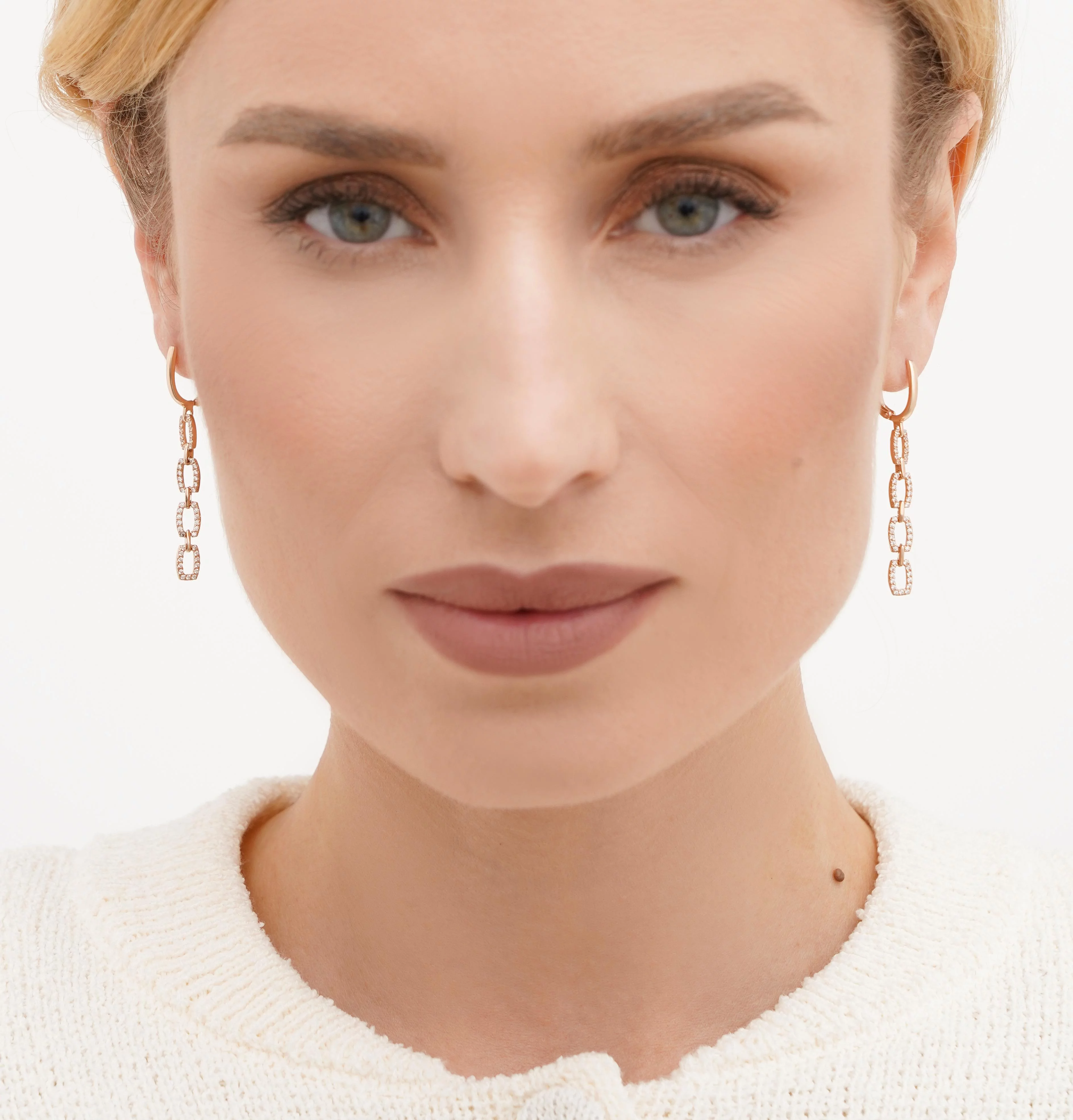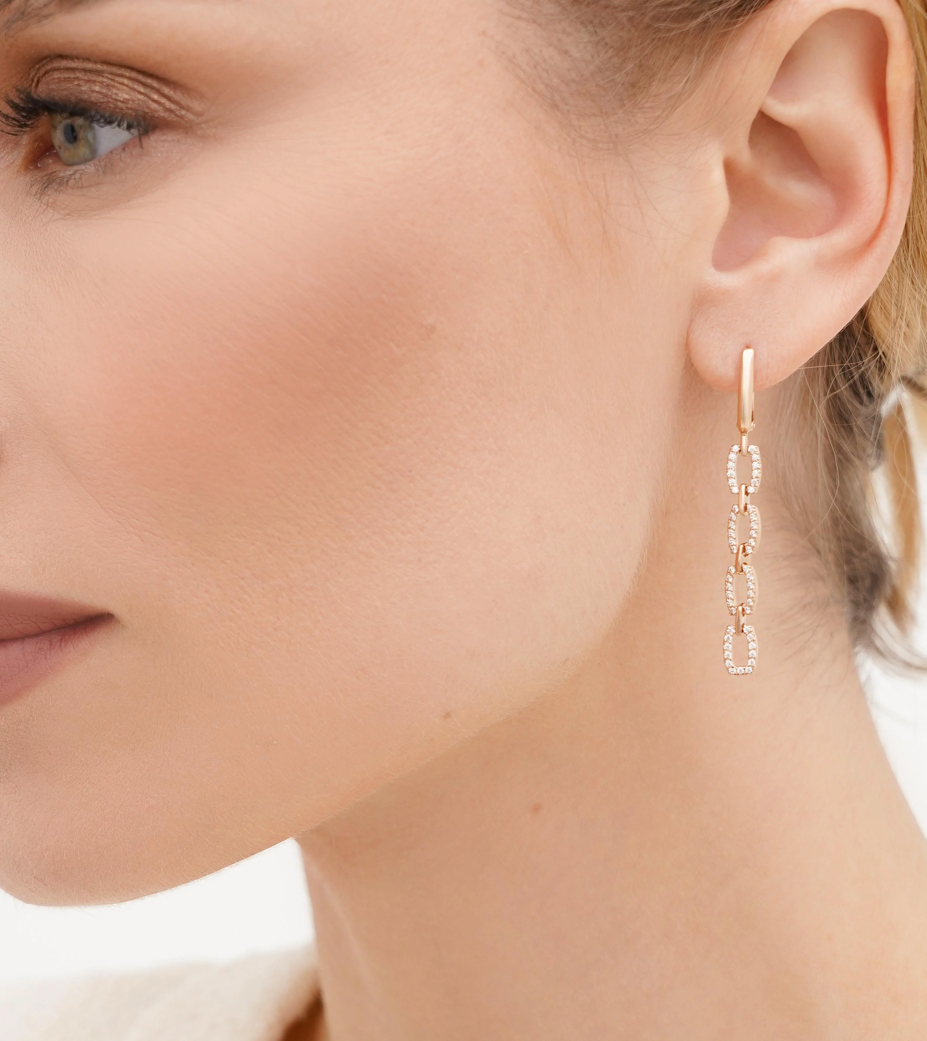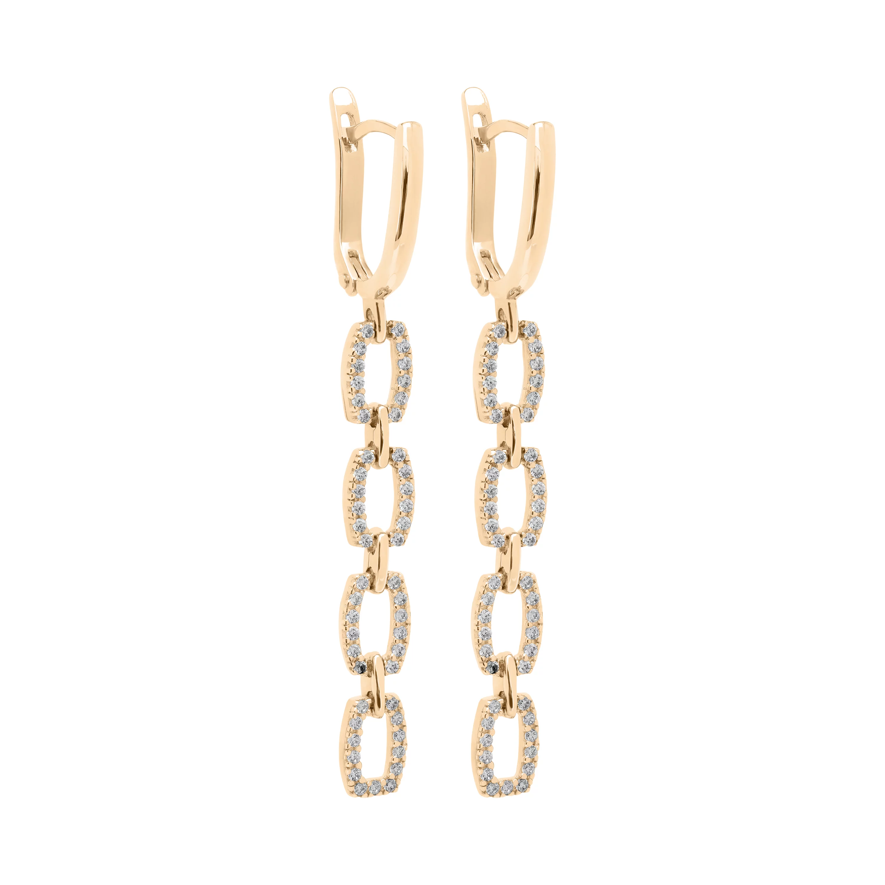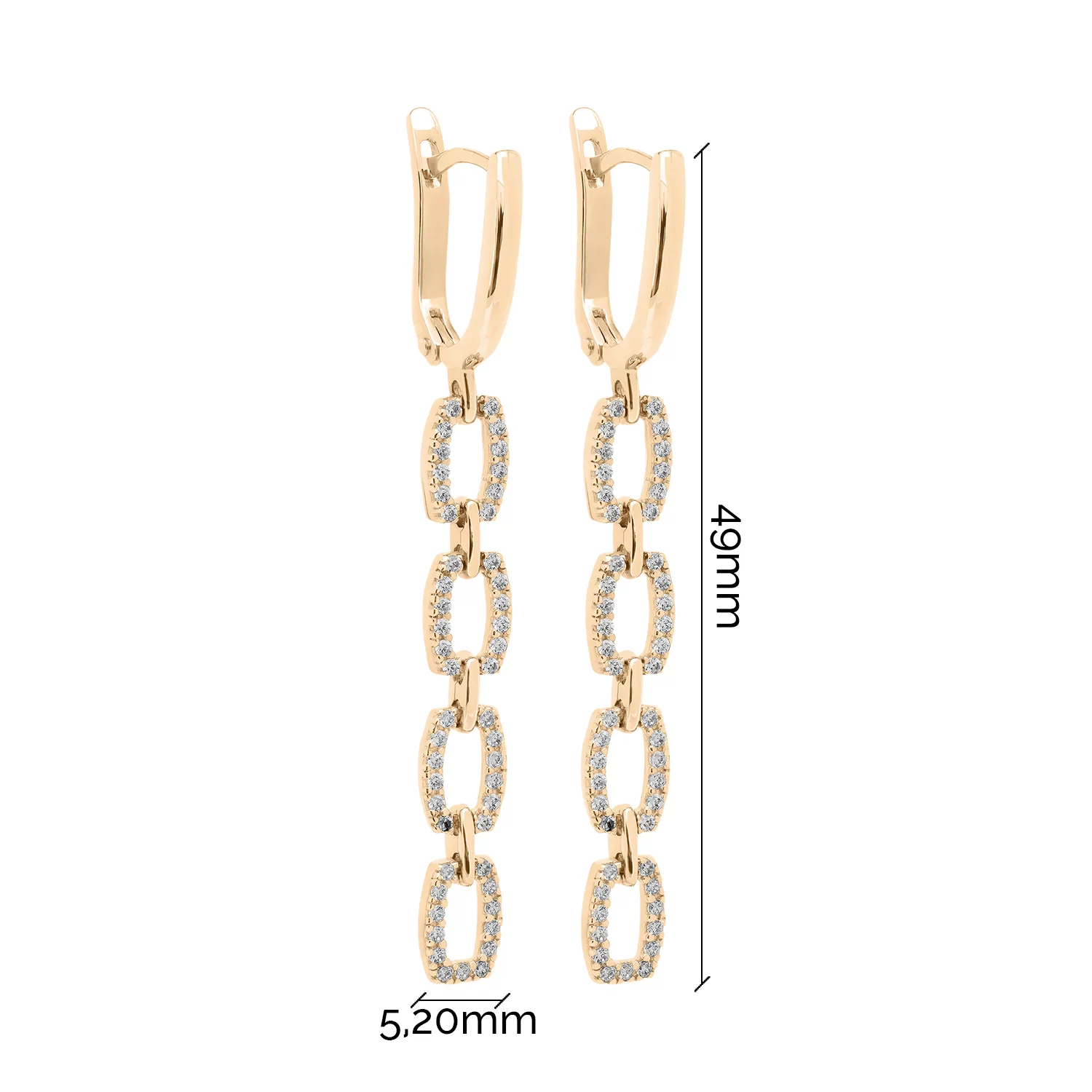Сережки з червоного золота з підвісами та доріжками фіанітів - 1920515