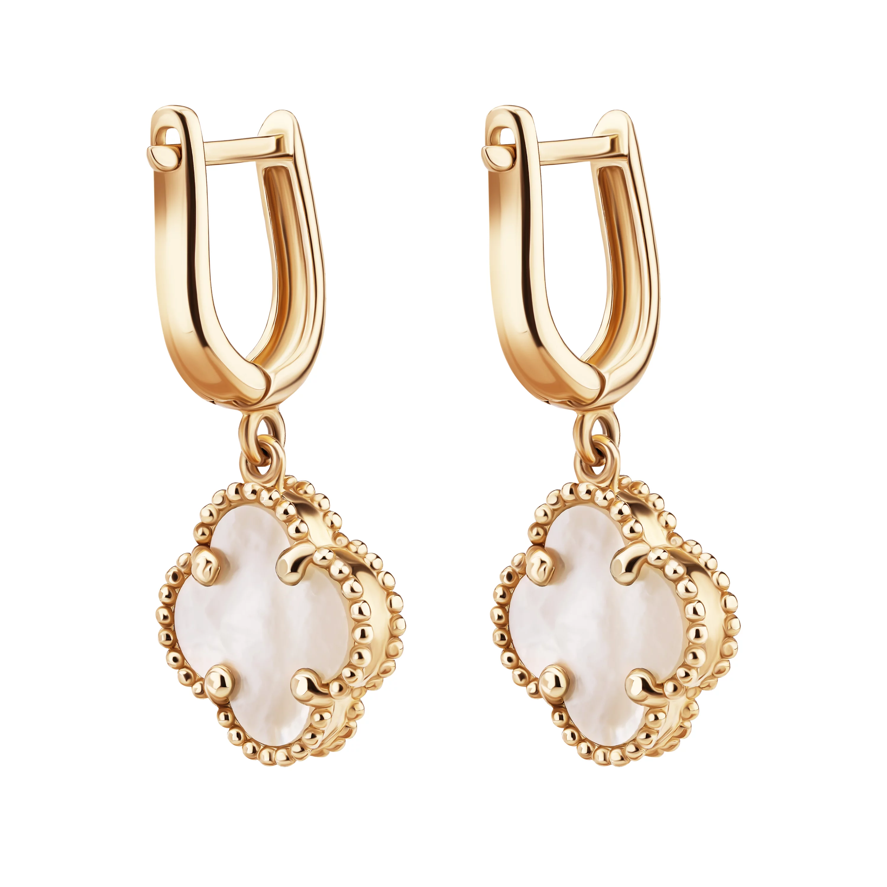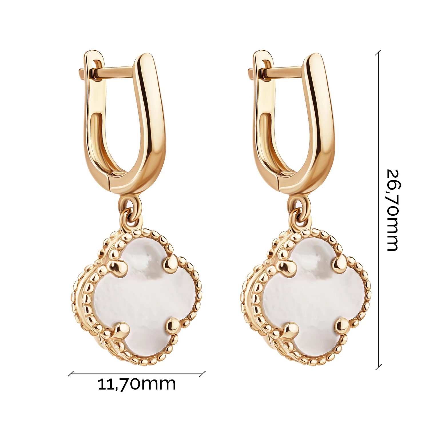 Сережки з жовтого золота з підвісами "Конюшина" з перламутром - 1866488
