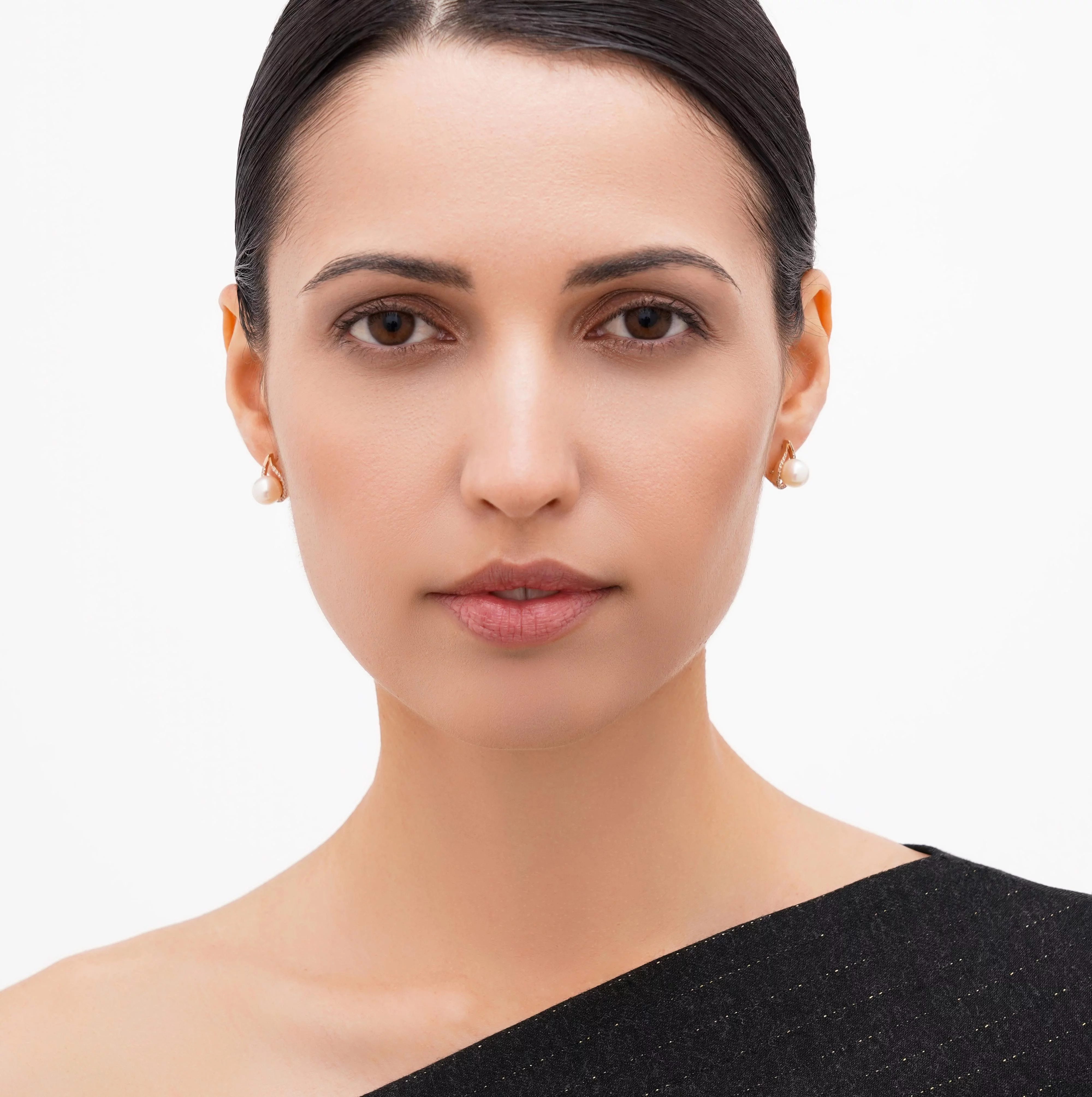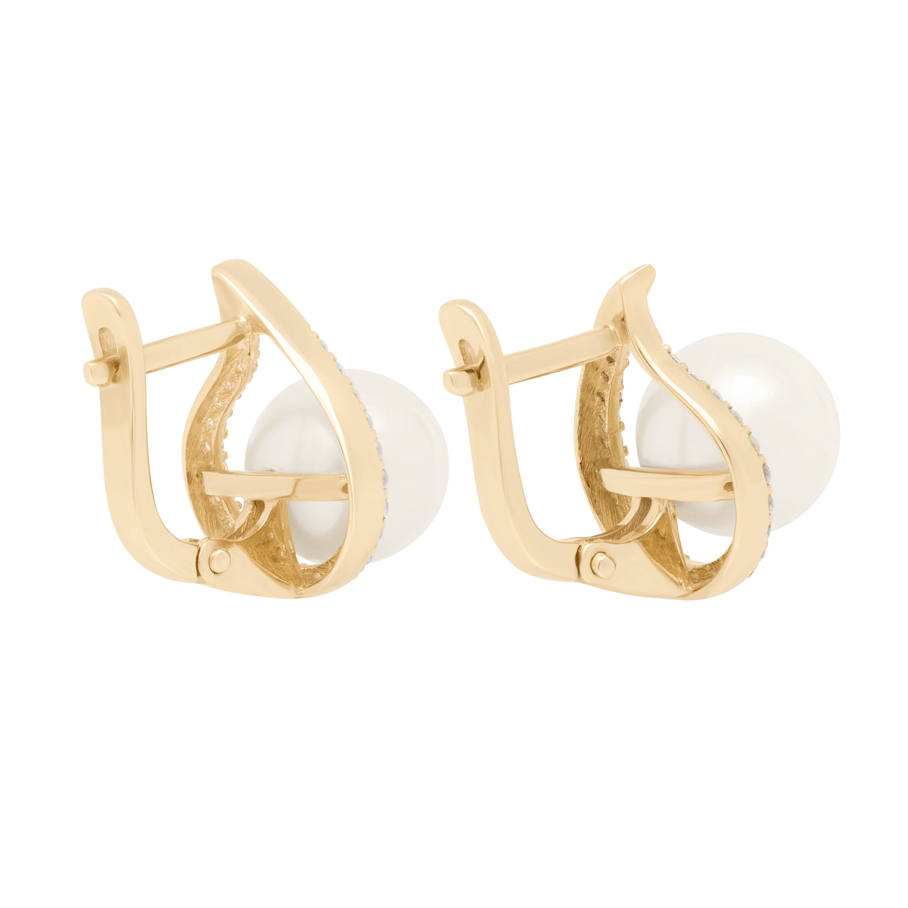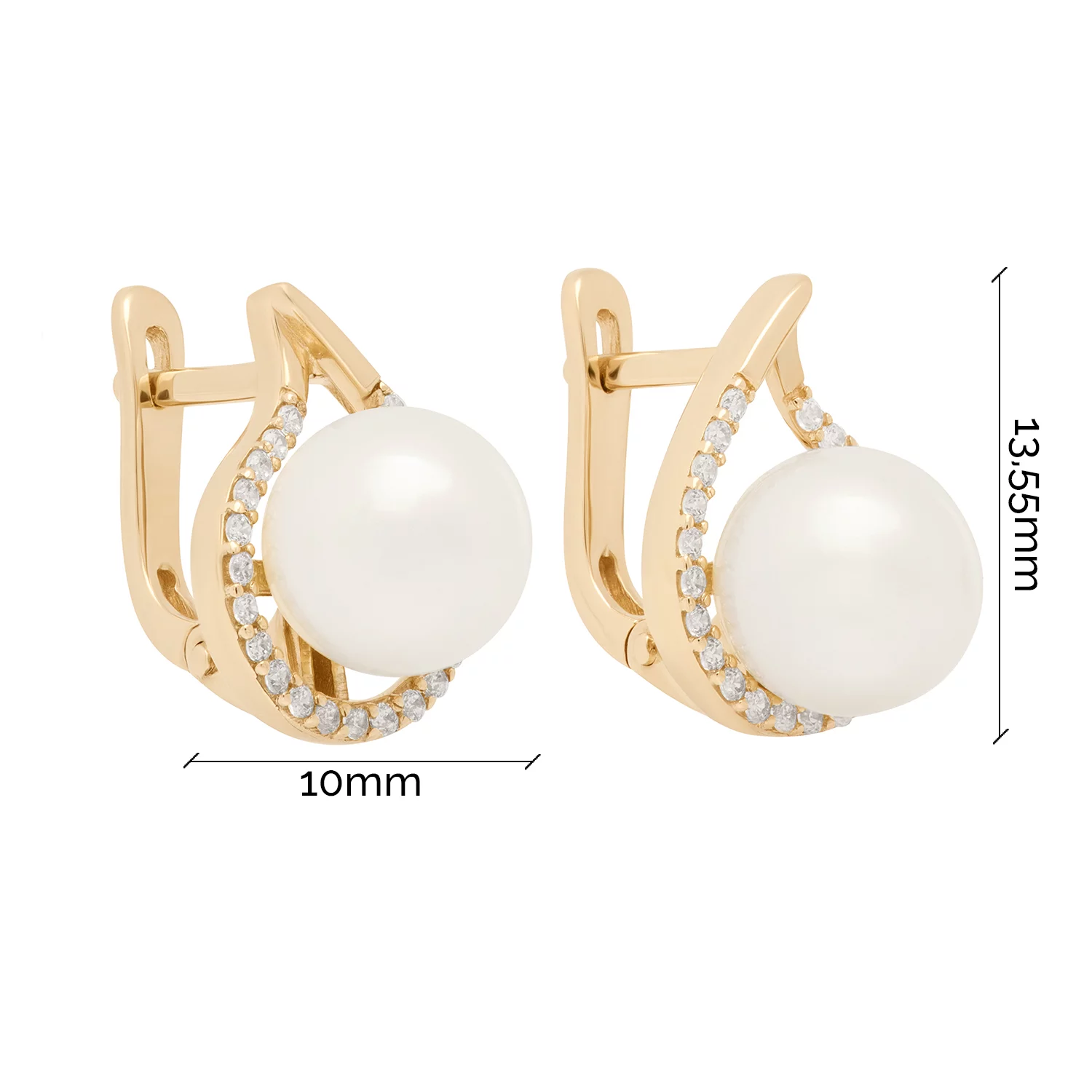 Сережки з червоного золота з підвісами з фіанітами і перлиною - 1690617