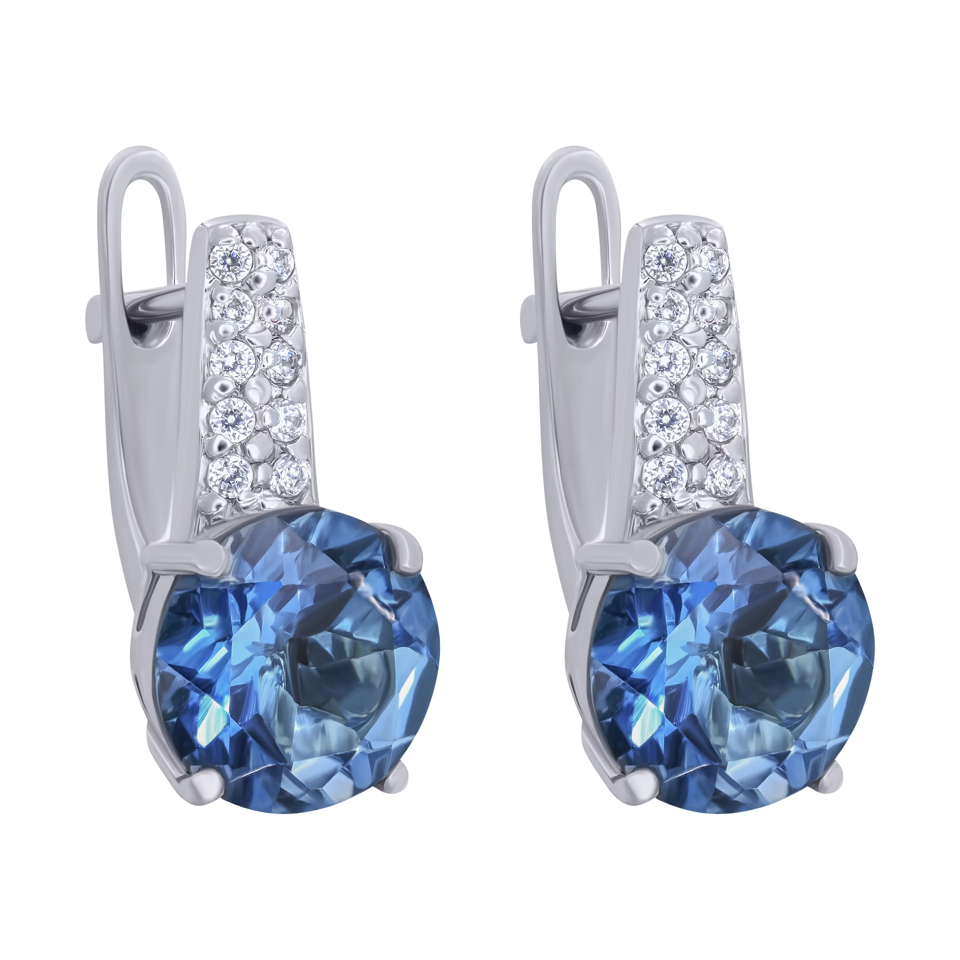 Сережки срібні з лондон топазом і фіанітом - 409469