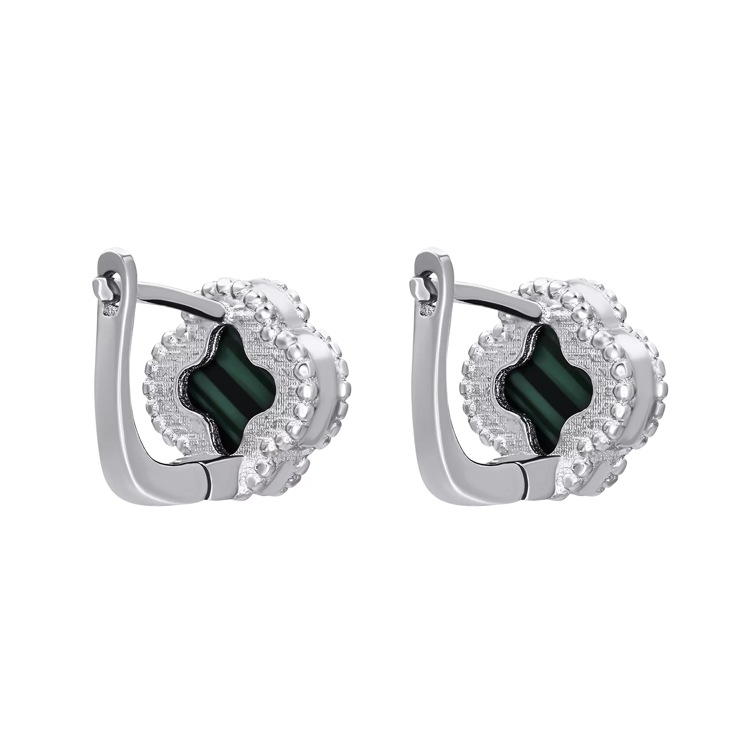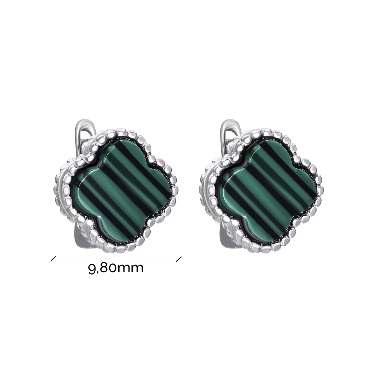 Сережки срібні з малахітом "Конюшина" - 1483519