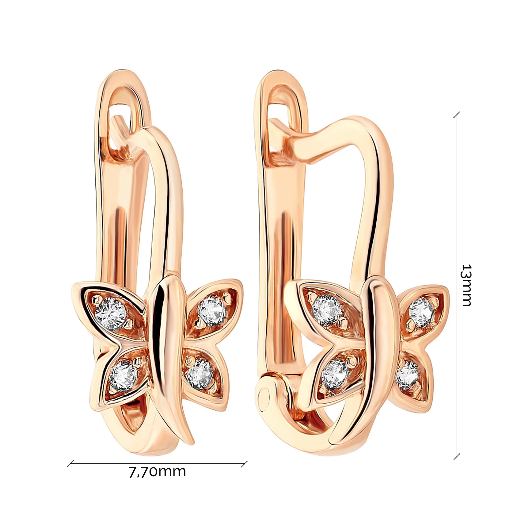 Сережки-кільця з червоного золота з підвісами "Пантера" з фіанітом - 1476753