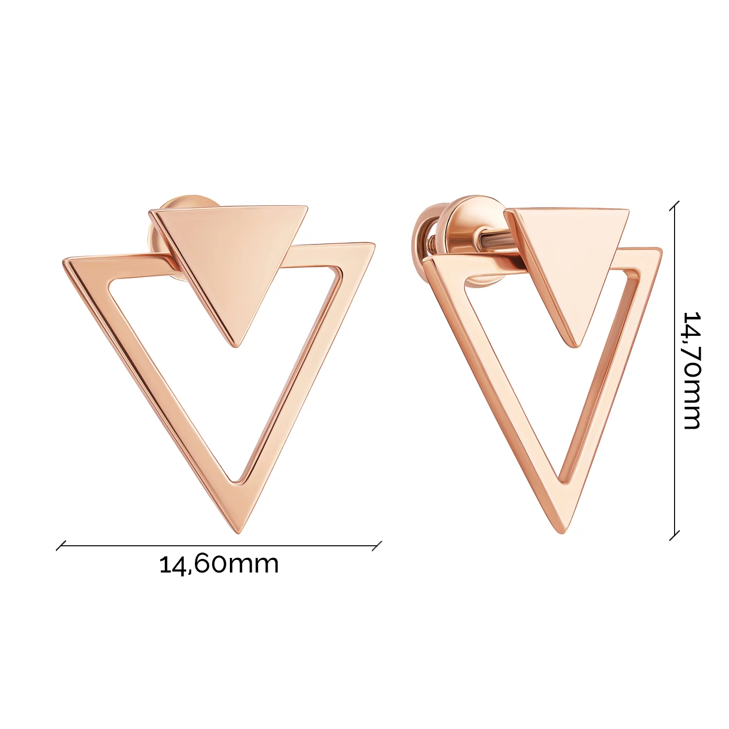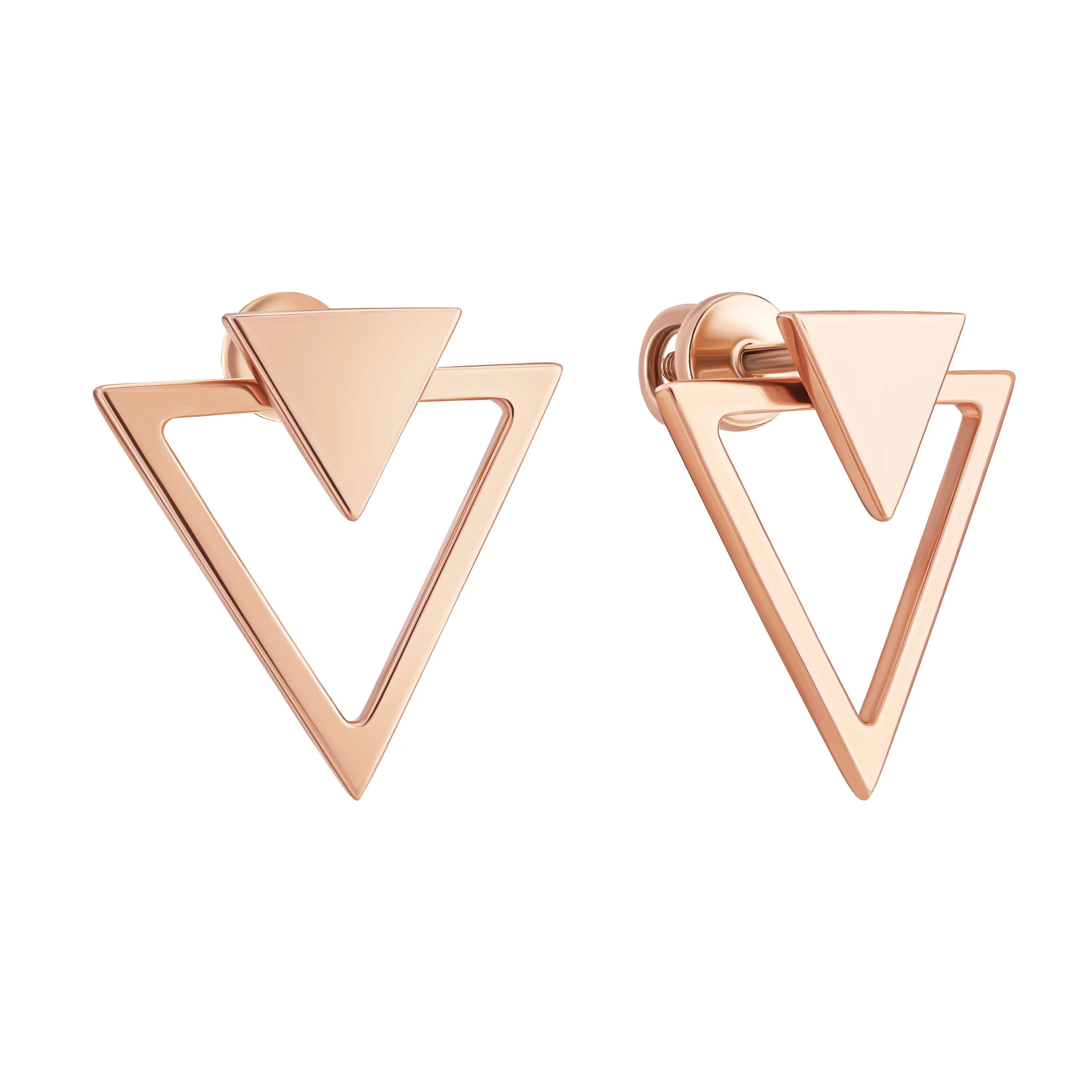 Сережки-гвоздики з червоного золота "Квадрат" зі знімною частиною - 1617432