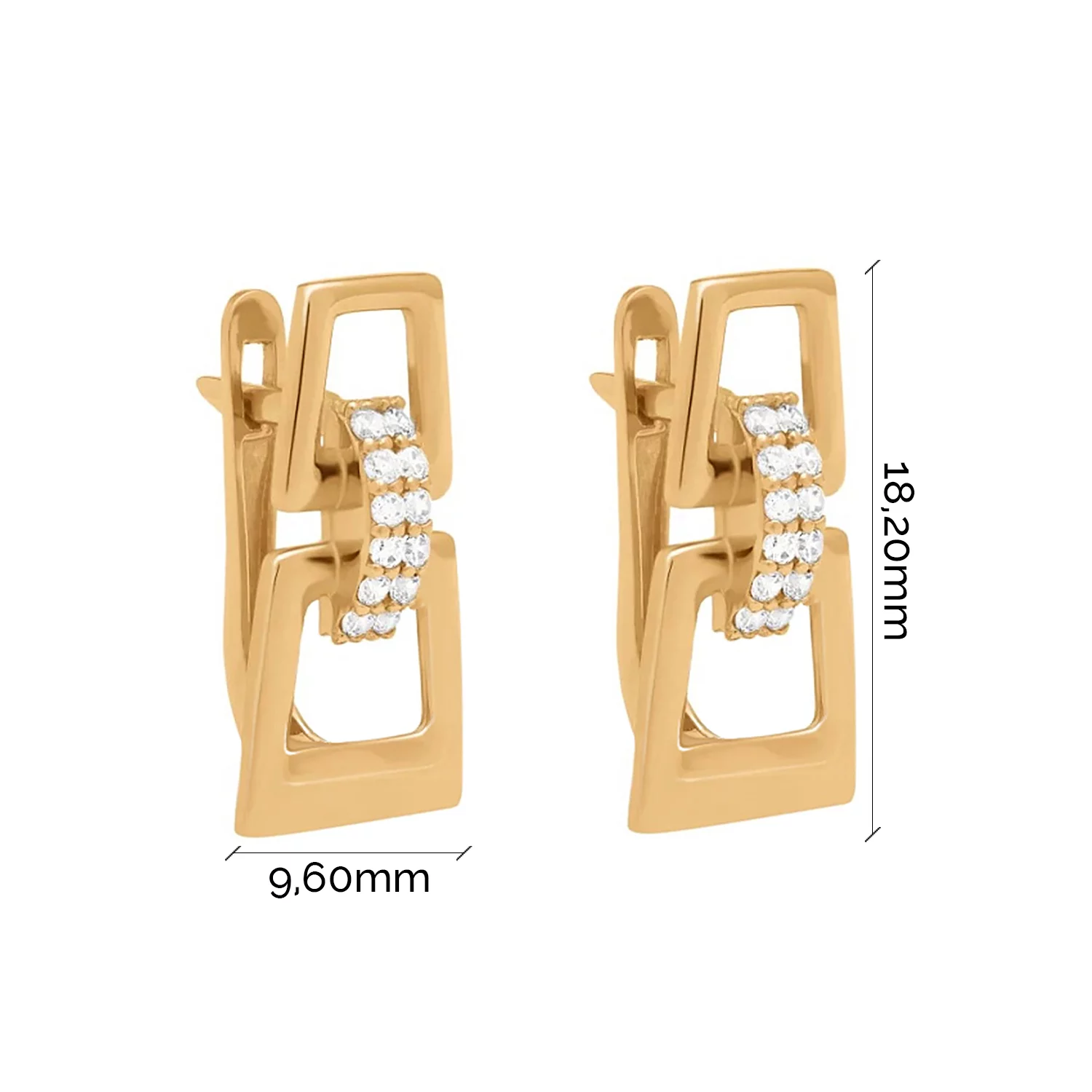 Сережки з підвісом "Конюшина" з червоного золота з фіанітами - 1851889