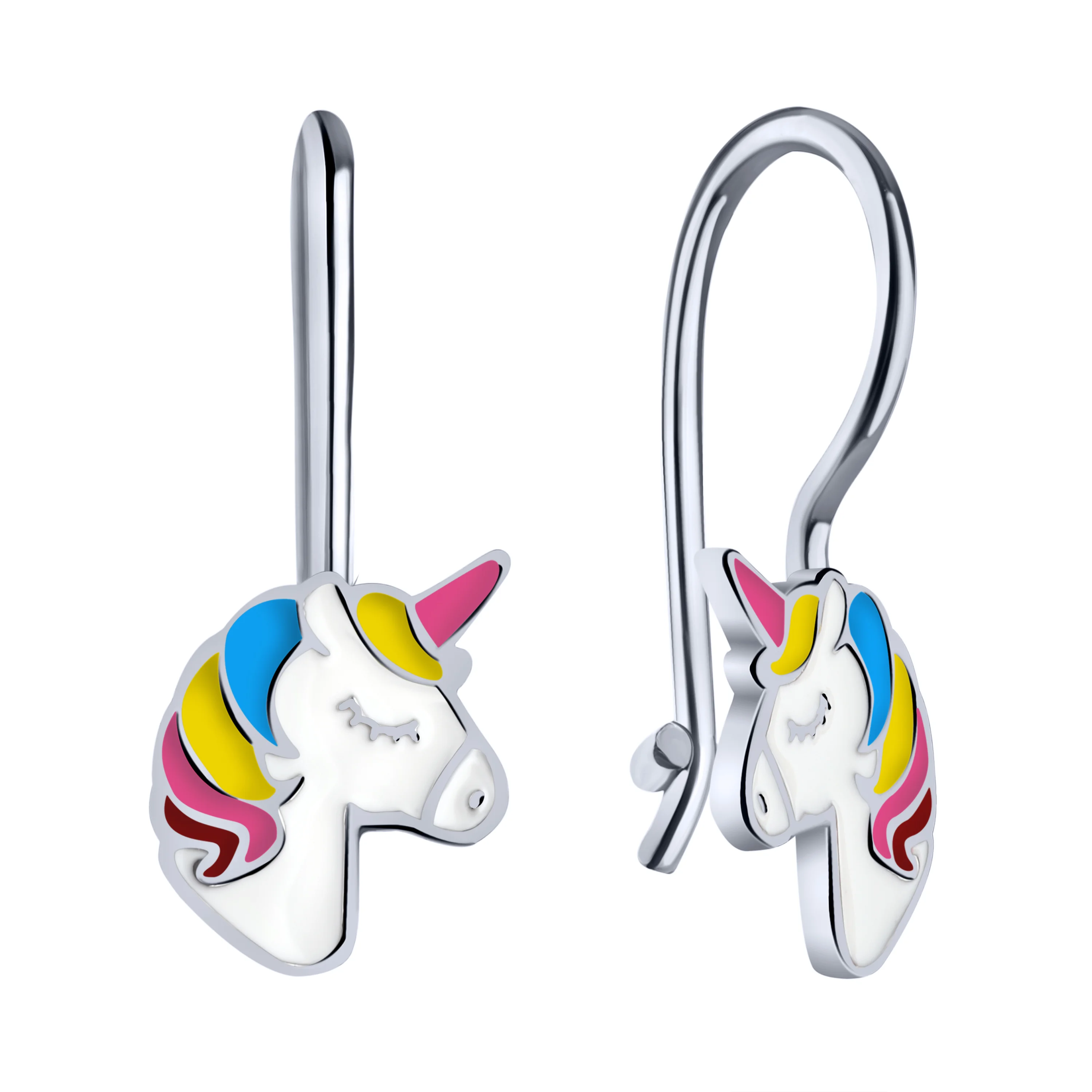 Милі дитячі сережки-петлі у формі єдинорога. Срібло найвищої якості, яскрава емальована поверхня. Відмінний подарунок дитині на початок школи, День народження або випускний.